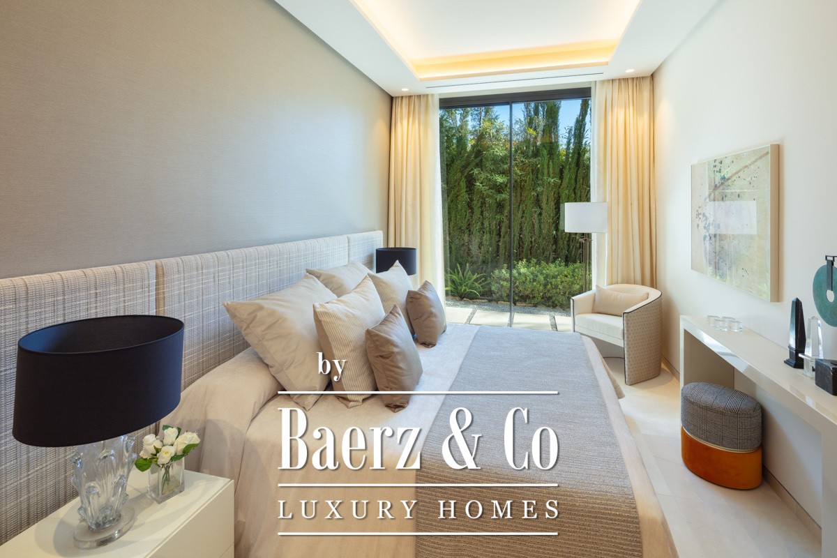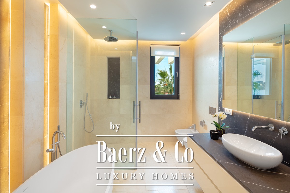 Een moderne keuken en aparte eetruimte versterken het gemeenschappelijke karakter en bieden directe toegang tot buiten, ideaal voor samenzijn of rustige contemplatie. Zes slaapkamers en zes badkamers garanderen privacy en ruimte, met enkele kamers gericht op het ochtendlicht en het golfbaanlandschap. Op de benedenverdieping nodigen een ruime entertainmentruimte en wijnkelder uit tot ontspanning en maatwerk, terwijl voorzieningen als een lift, airconditioning, vloerverwarming en een BBQ-zone comfort bieden in elk seizoen. De nabijheid van voorzieningen, het strand en het levendige centrum van Marbella maken dit tot een exclusief thuis dat zowel geborgenheid als verbinding biedt.