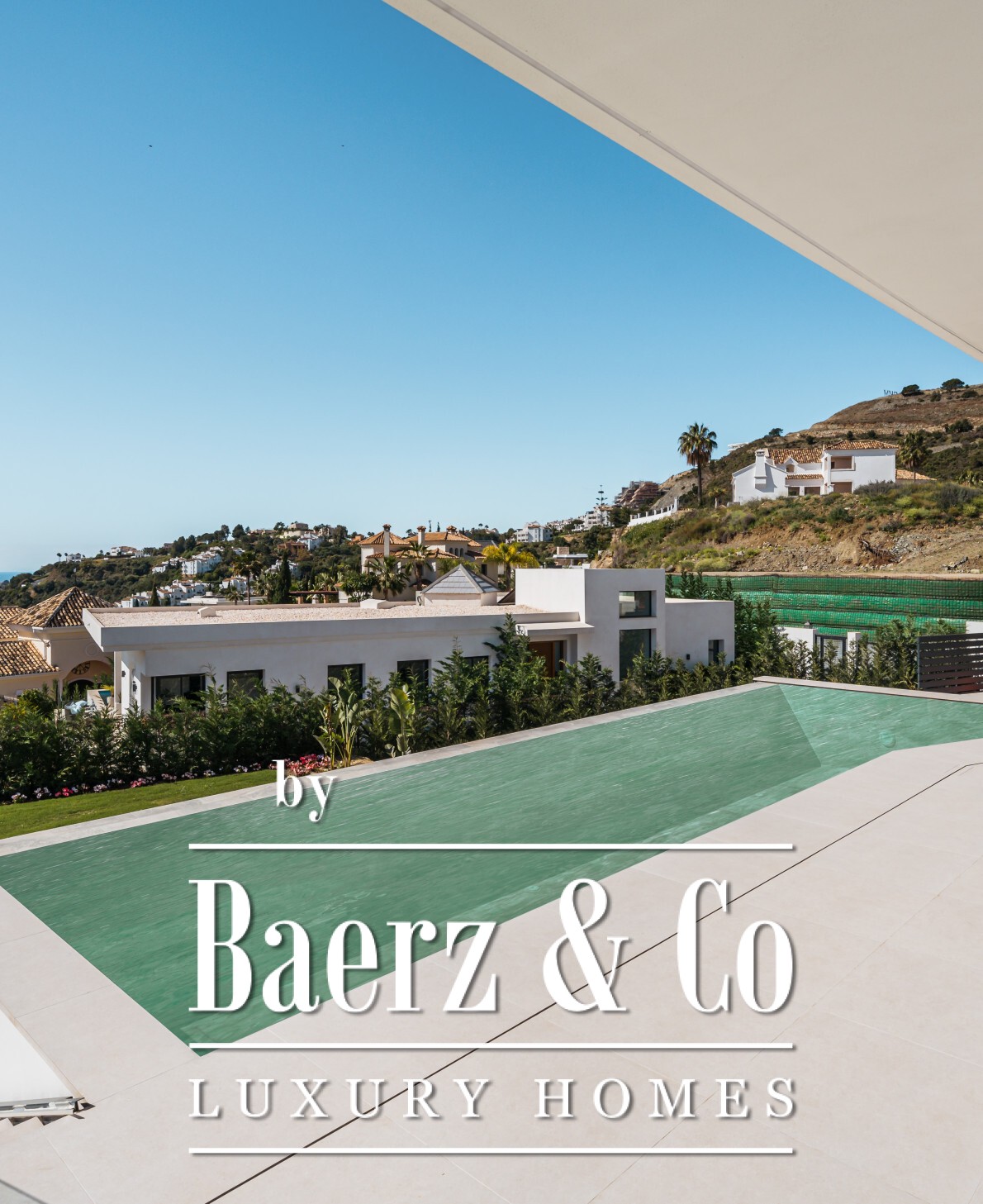 Villa Marbella met uitzicht op zee en bergen biedt verfijnd wonen in de rustige enclave Lomas de la Quinta, een exclusieve, afgesloten gemeenschap die bekend staat om haar privacy en serene sfeer. Deze villa van 764 m² met zes slaapkamers ligt op een perceel van 1.377 m² en heeft een eigentijdse architectuur waarin natuurlijke materialen, royaal licht en ruimte samenkomen. Vanaf het eerste moment bepalen het zeezicht en het uitzicht op de Sierra de las Nieves de sfeer, zowel op de 317 m² aan terrassen als in een van de twee loungegedeeltes waar grote ramen het mediterrane landschap omlijsten.