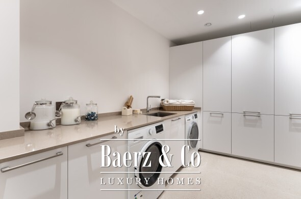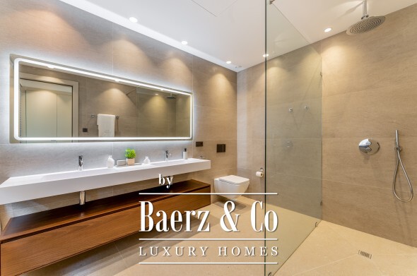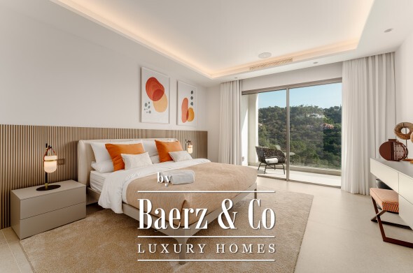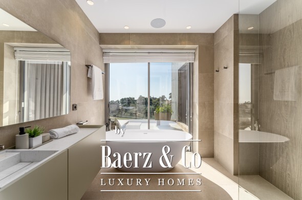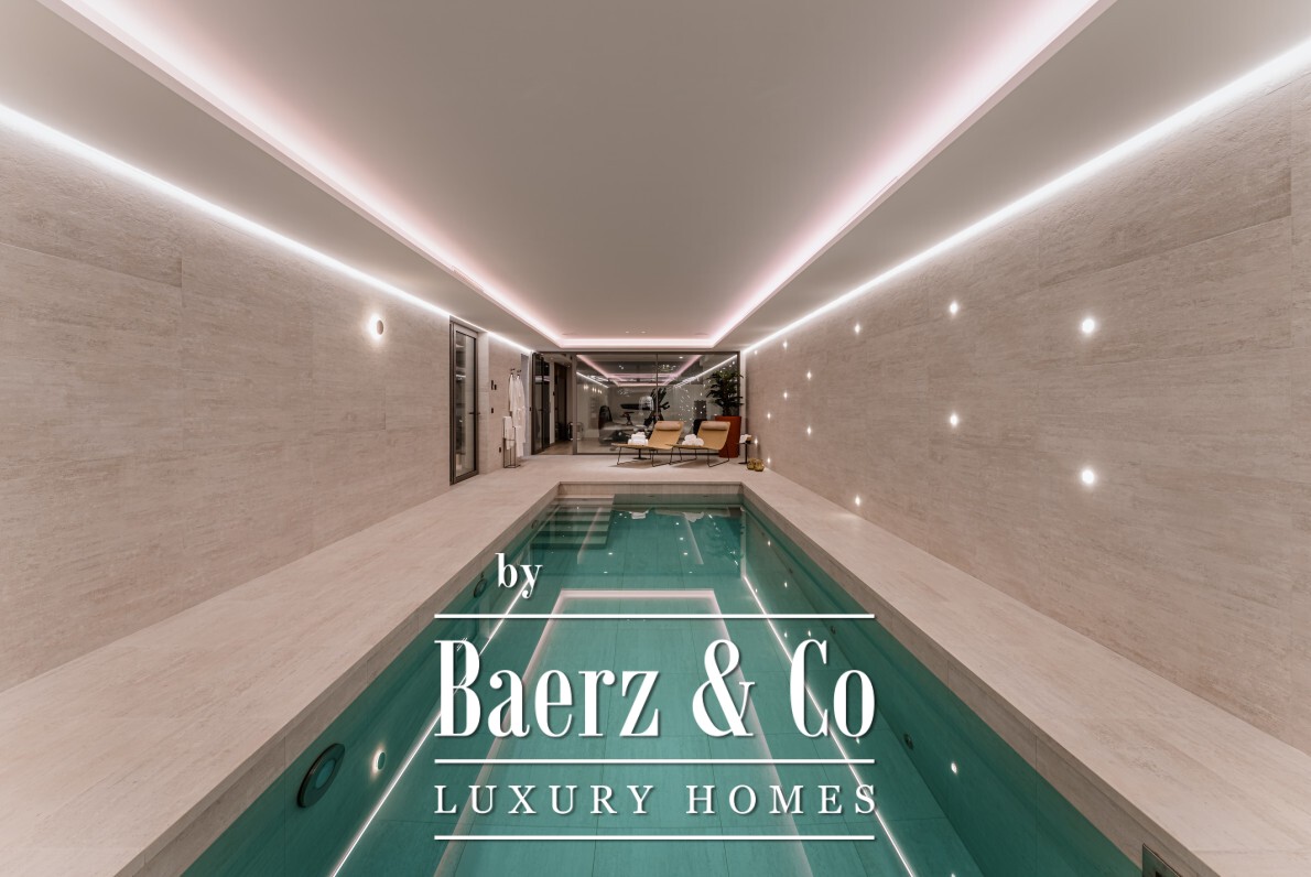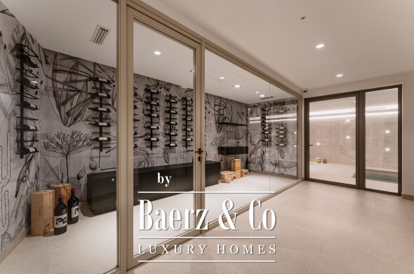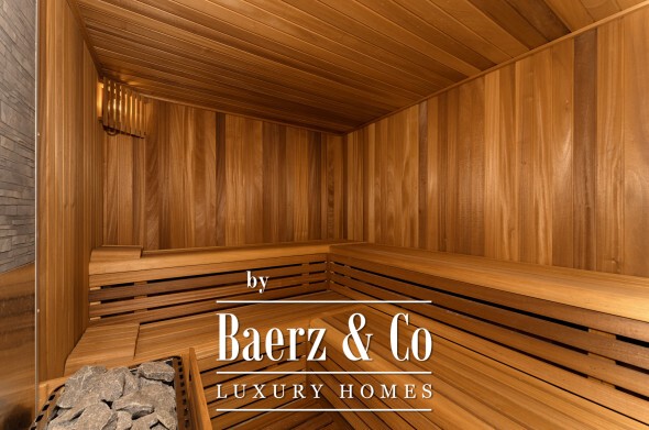 De bovenverdieping biedt privacy en perspectief. De mastersuite beschikt over twee badkamers, gescheiden kleedkamers en brede glaspartijen die het landschap omlijsten. Twee aanvullende gastensuites, waarvan één met privéterras, maken dit toevluchtsoord compleet. Op de benedenverdieping wacht een wellnessruimte met verwarmd binnenzwembad, sauna, fitness en stoombad, aangevuld met een entertainmentlounge, klimaatgereguleerde wijnkelder en een medewerkersappartement met eigen keuken. Vier auto's staan veilig in de garage; gastparkeerplaatsen zijn er voor zes voertuigen.