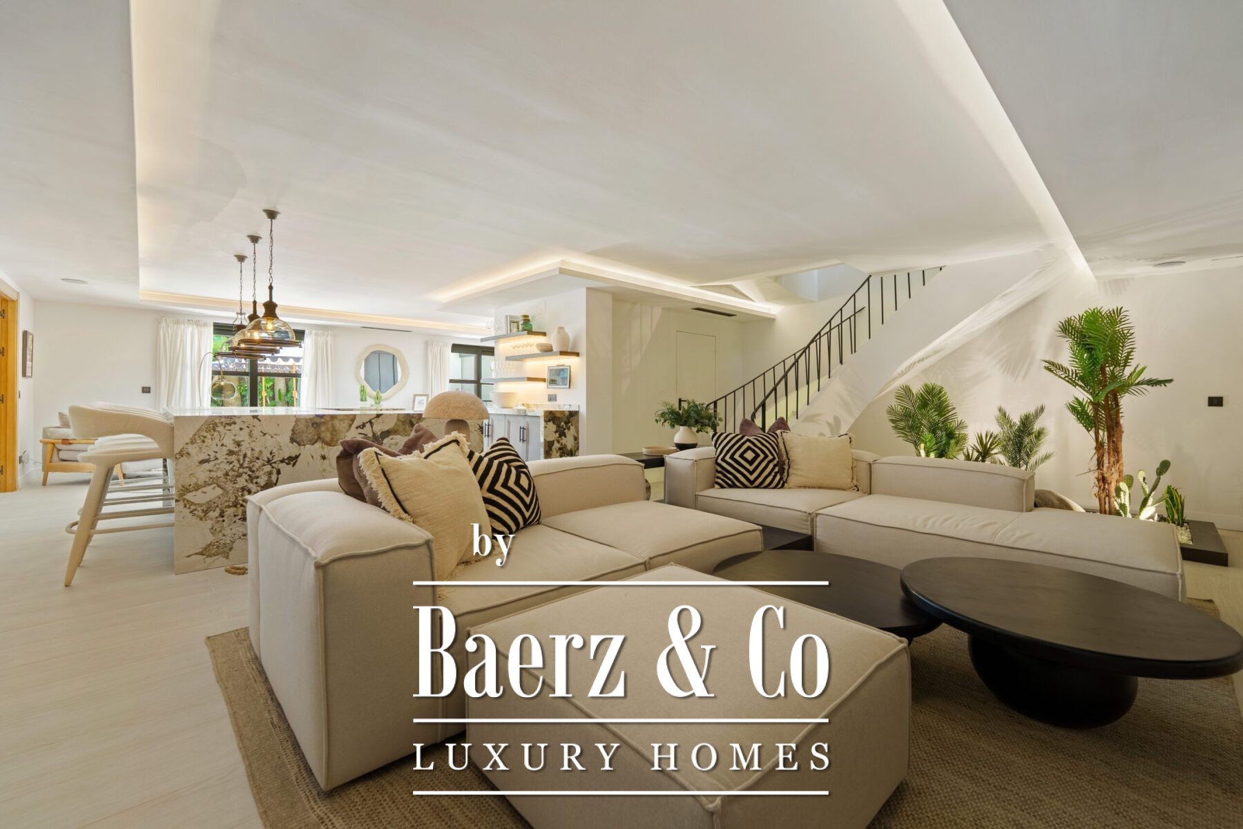 In the heart of the prestigious Nueva Andalucía, just minutes from world-class golf courses, Puerto Banús, and Marbella’s finest dining and shopping, stands this luxury villa as a masterpiece of modern Mediterranean living. This extraordinary five-level villa captures panoramic views of the Mediterranean Sea and the iconic La Concha mountain, blending timeless Andalusian charm with cutting-edge contemporary elegance.