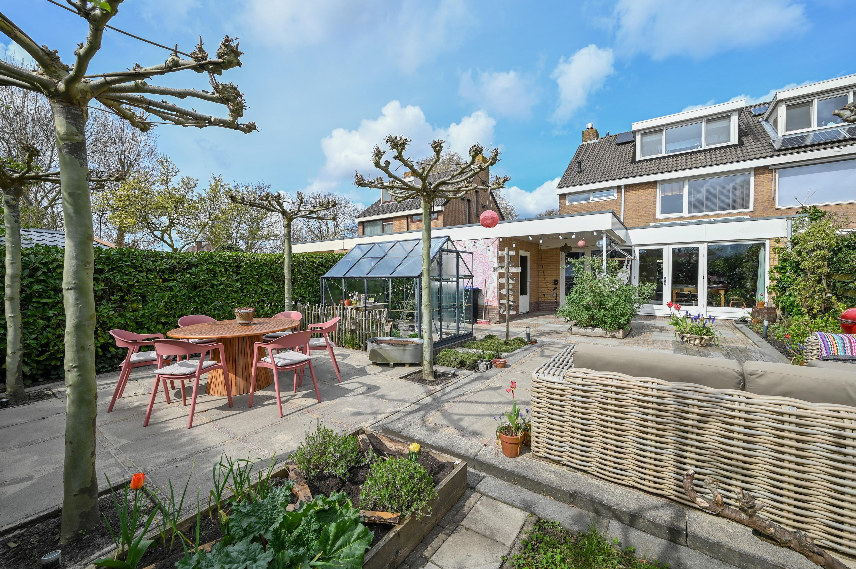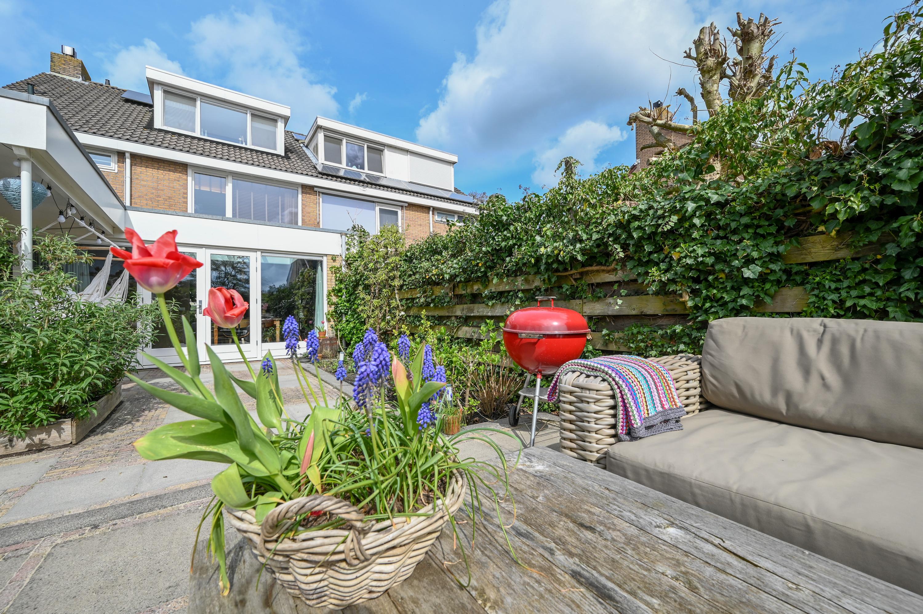 De riante woning biedt volop leefruimte, onder andere door de uitbouw aan de achterzijde, en beschikt over vier volwaardige slaapkamers. De grote raampartijen zorgen voor een prettige lichtinval en een fijne verbinding met buiten. De zonnige achtertuin op het zuiden is een heerlijke plek om te ontspannen en te genieten van de ruimte en de rust.