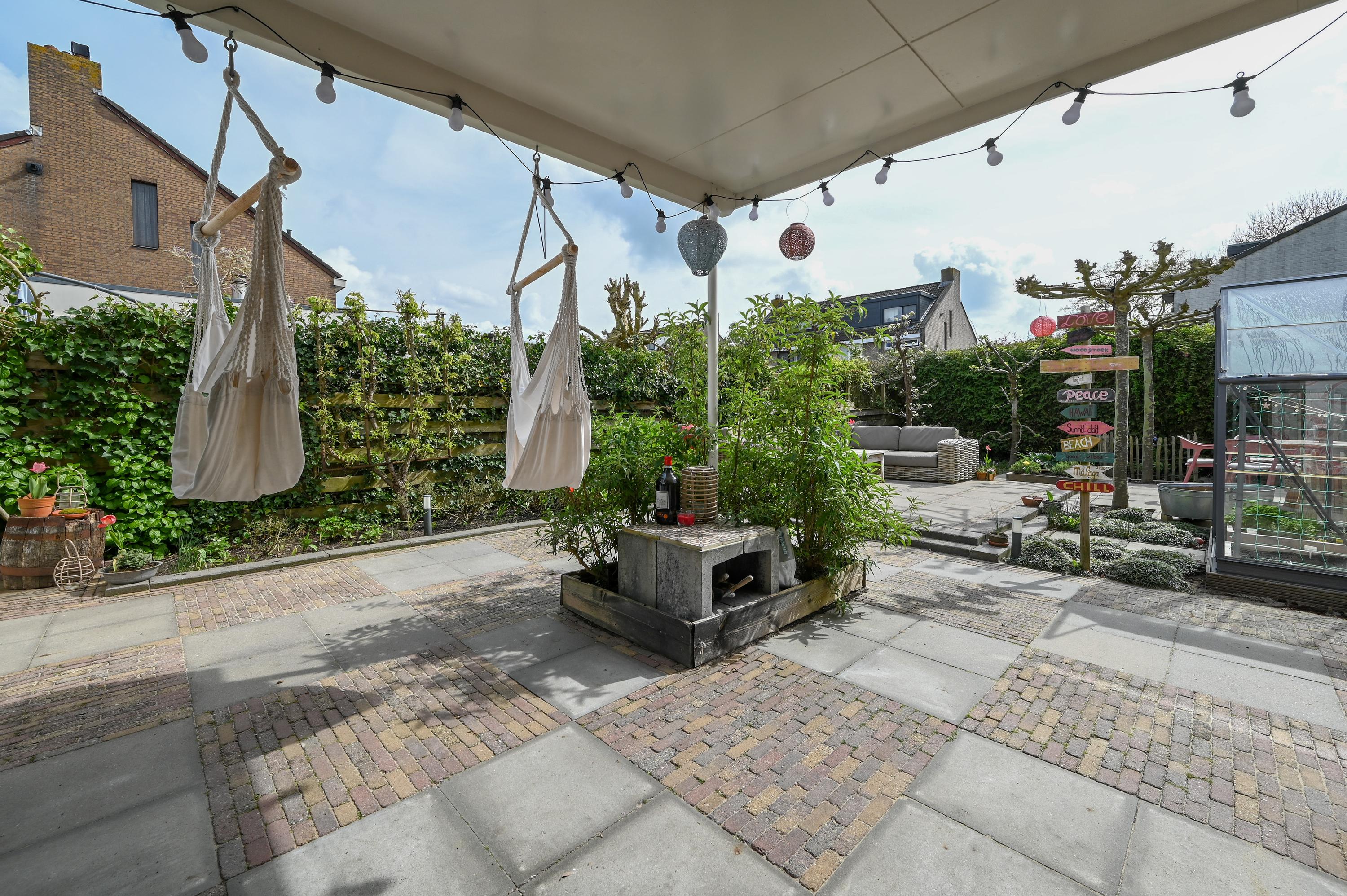 De achtertuin is gelegen op het zuiden en biedt een heerlijke combinatie van zon, privacy en groen. Direct grenzend aan de woning en de garage bevindt zich de fijne overkapping, waardoor je al vroeg in het jaar beschut buiten kunt zitten en tot laat in het seizoen kunt genieten.