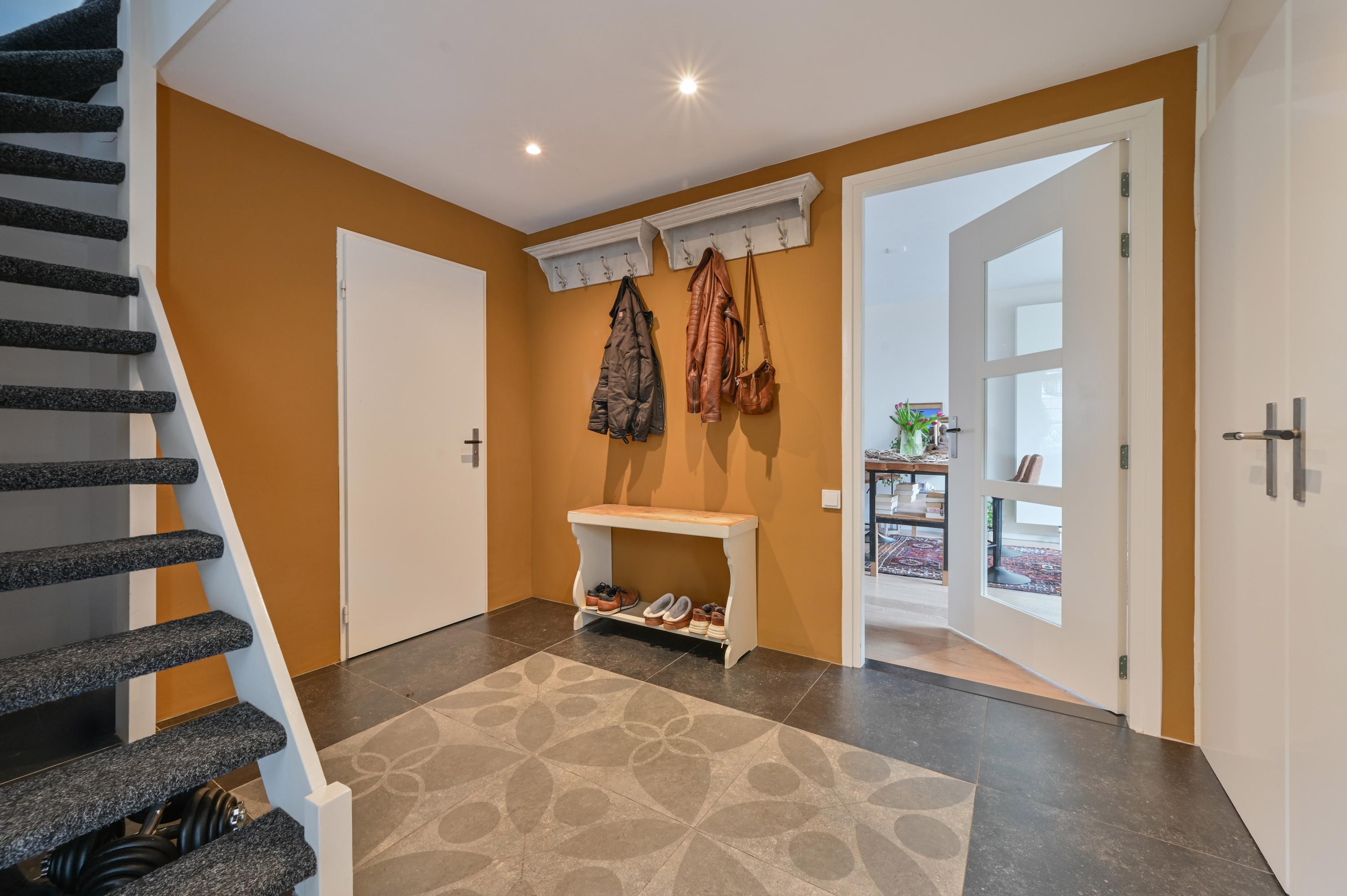 Zodra je het perceel oprijdt, valt direct de royale opzet op: een brede oprit met plaats voor maar liefst drie auto’s, wat meteen het gevoel van ruimte en comfort onderstreept. Altijd plek bij thuiskomst! Via de entree kom je binnen in de representatieve hal, waar de trapopgang zich bevindt, evenals de meterkast, een praktische bergkast, het toilet met fontein en extra bergruimte onder de trap — ideaal voor schoenen of dagelijkse spullen die je uit het zicht wilt houden.