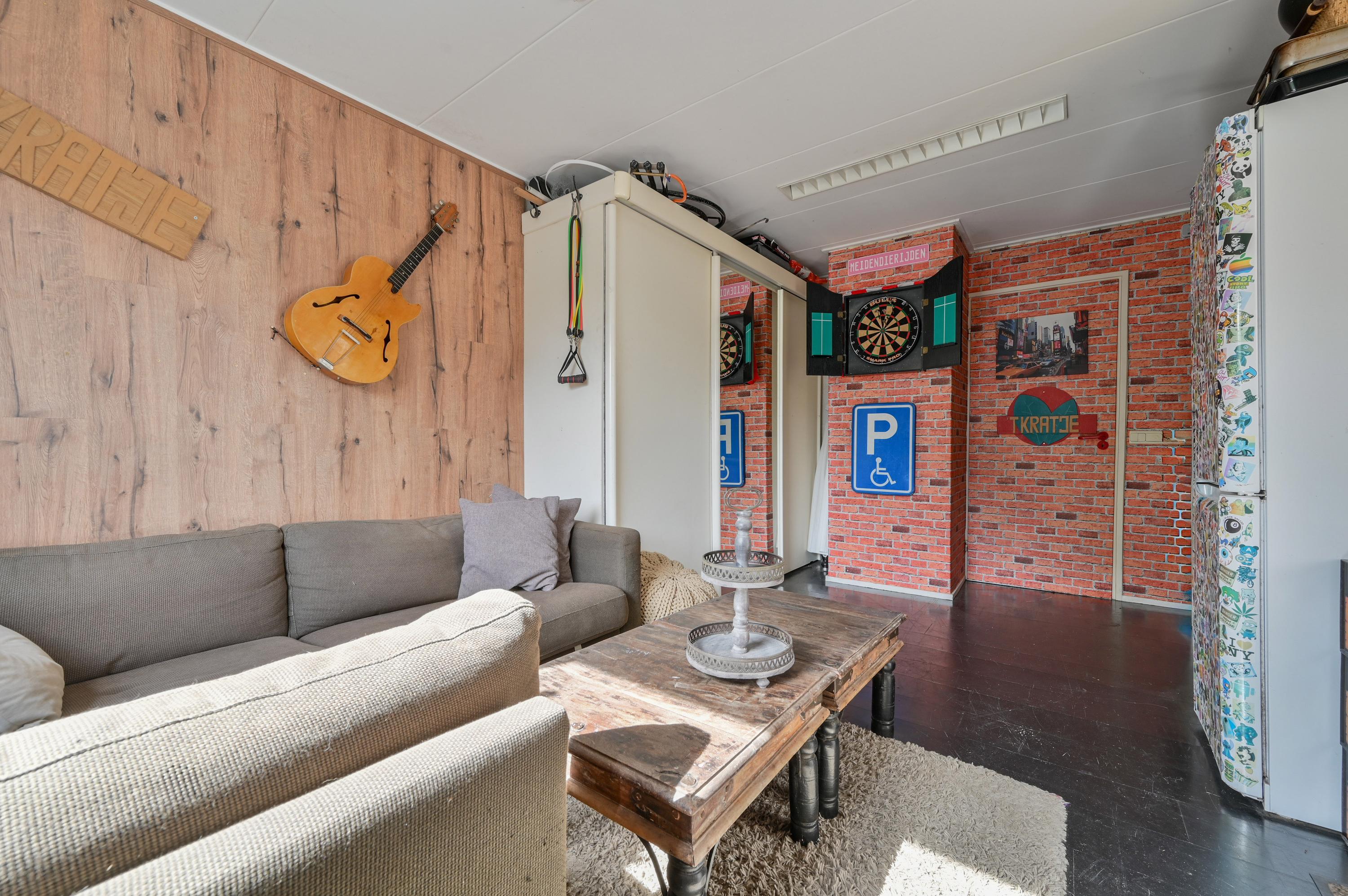 De achterzijde is momenteel in gebruik als sfeervolle loungeplek, een verlengstuk van de woning waar je heerlijk kunt ontspannen. Deze ruimte is echter flexibel in gebruik en kan eenvoudig worden omgevormd tot bijvoorbeeld kantoor, speelkamer, atelier of extra (werk)kamer. Hierdoor biedt deze ruimte volop mogelijkheden voor verschillende woonwensen. Deze ruimte is droog te bereiken vanuit de woning door de aanwezige overkapping.