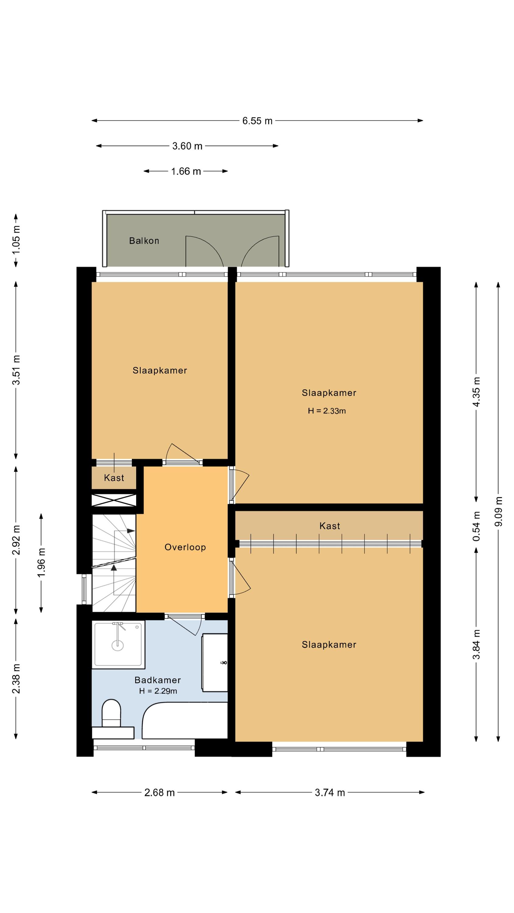 De royale overloop geeft toegang tot drie grote slaapkamers en de badkamer en voelt licht en ruim aan door de prettige indeling van de woning. Aan de achterzijde ligt een royale slaapkamer met een vaste kastenwand over de volle lengte. De extra geïsoleerde wand richting de naastgelegen kamer zorgt hier voor rust en privacy, waardoor dit een comfortabele en stille hoofdslaapkamer is.