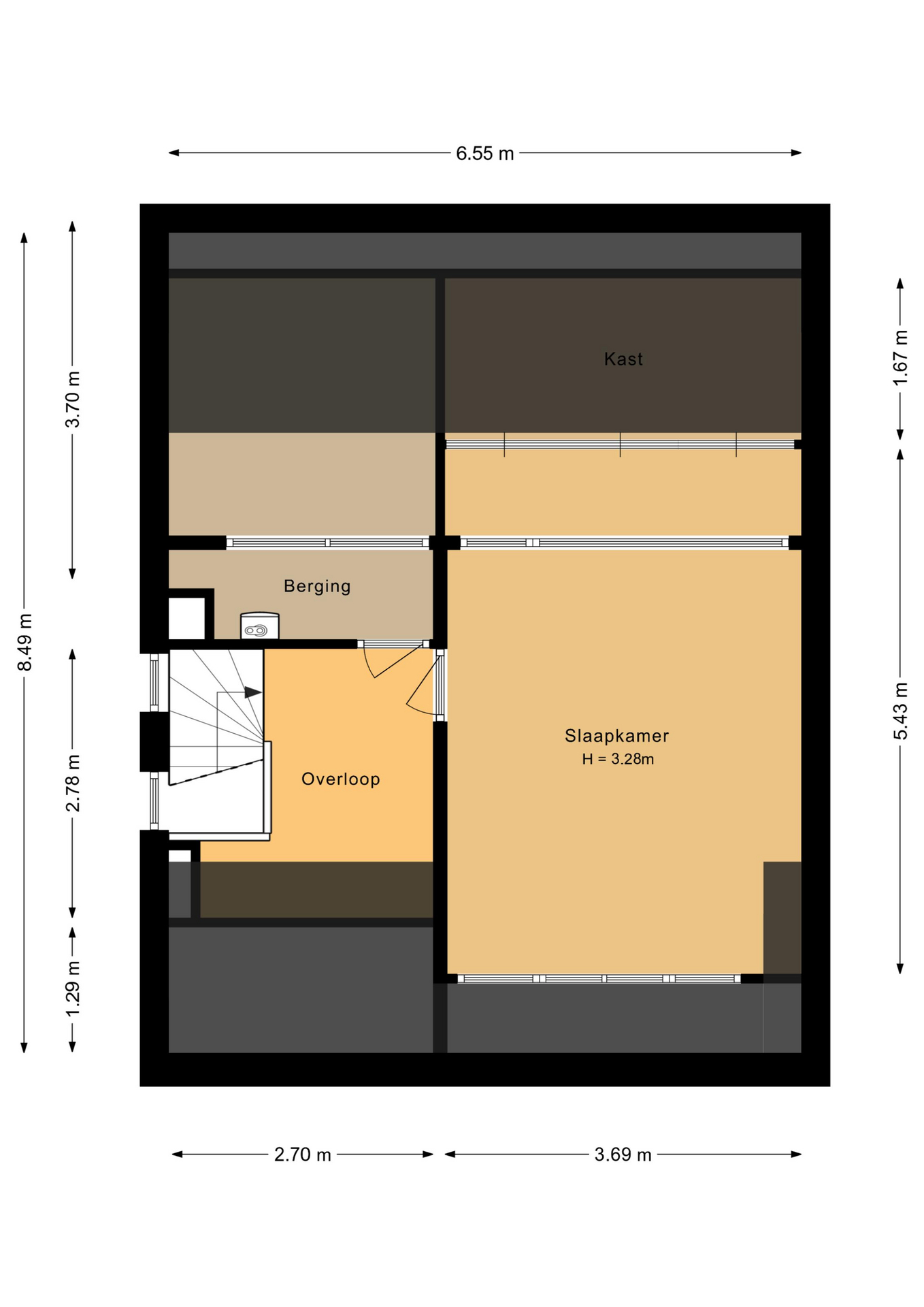 Vanaf de overloop is ook de aparte bergruimte met de c.v.-ketel bereikbaar. Deze ruimte biedt bovendien interessante mogelijkheden voor het realiseren van een tweede badkamer, indien gewenst.