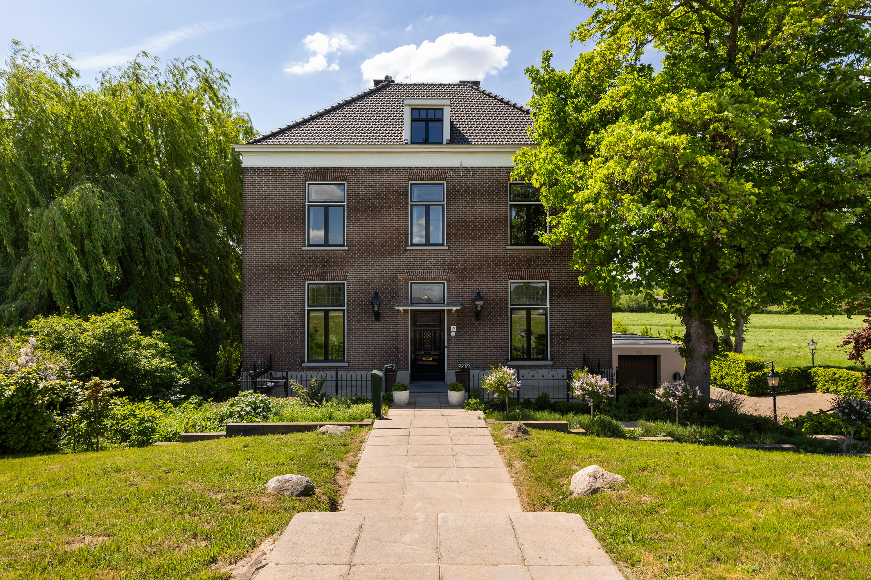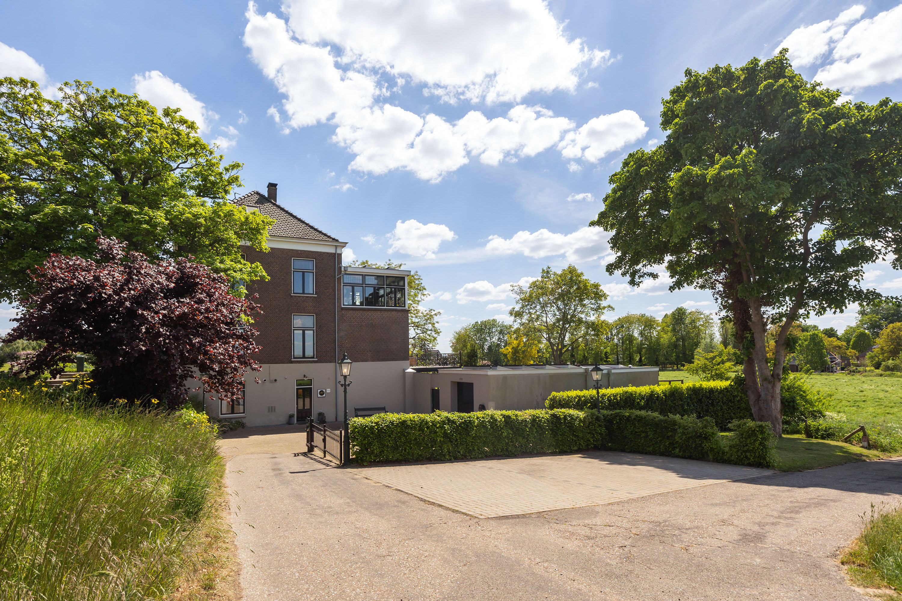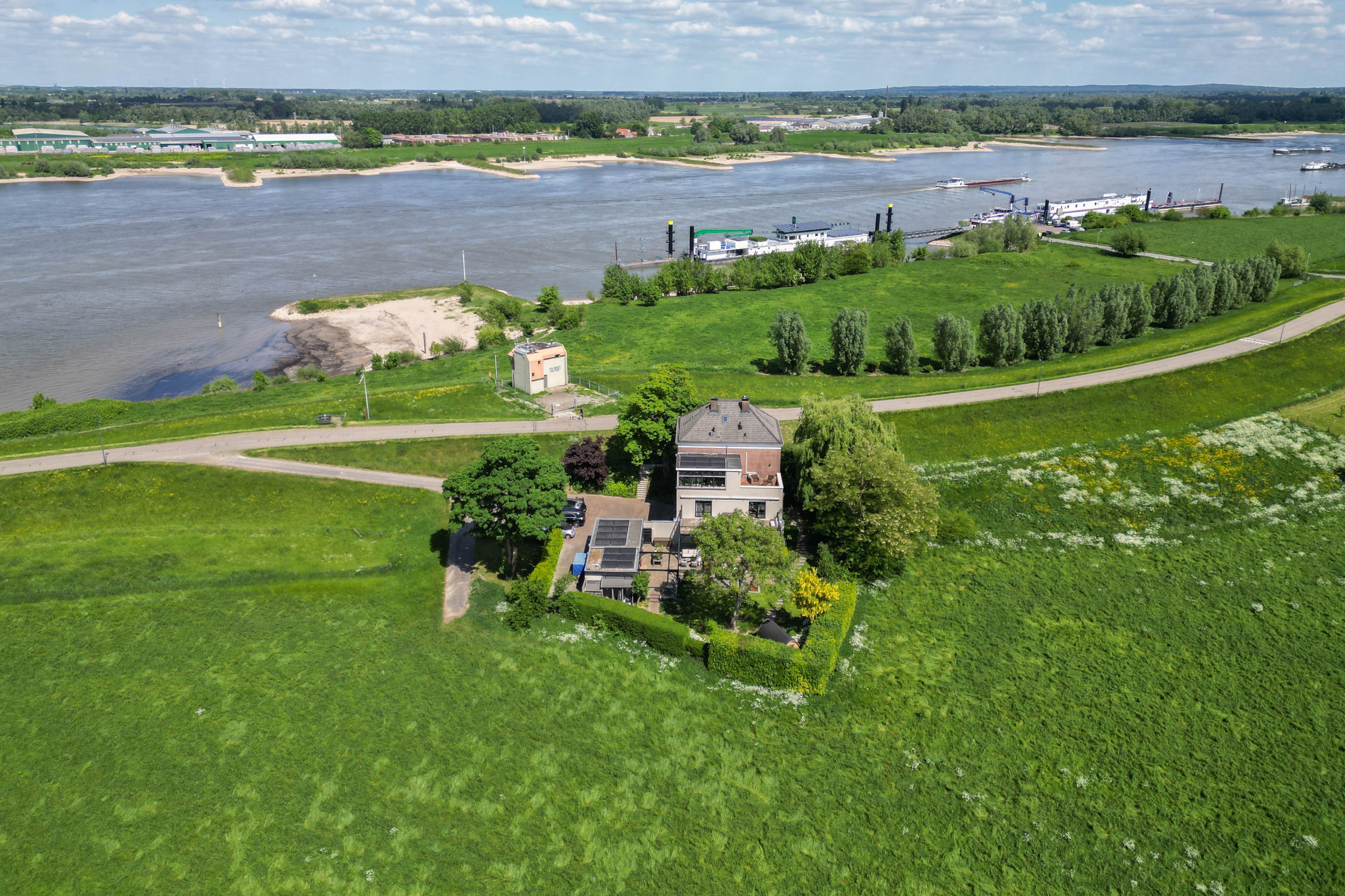 Op een markante plek waar water, natuur en historie samenkomen, bevindt zich deze karaktervolle villa met een uitzonderlijke uitstraling. Hoog gelegen aan de Rijndijk en uitkijkend over de samenvloeiing van Rijn en Waal, biedt deze voormalige rentmeesterswoning een zeldzame combinatie van privacy, ruimte en panoramisch uitzicht. Het geheel is gelegen op een volledig omsloten perceel, omgeven door een zorgvuldig aangelegde tuin die naadloos aansluit op de kwaliteit van de woning.