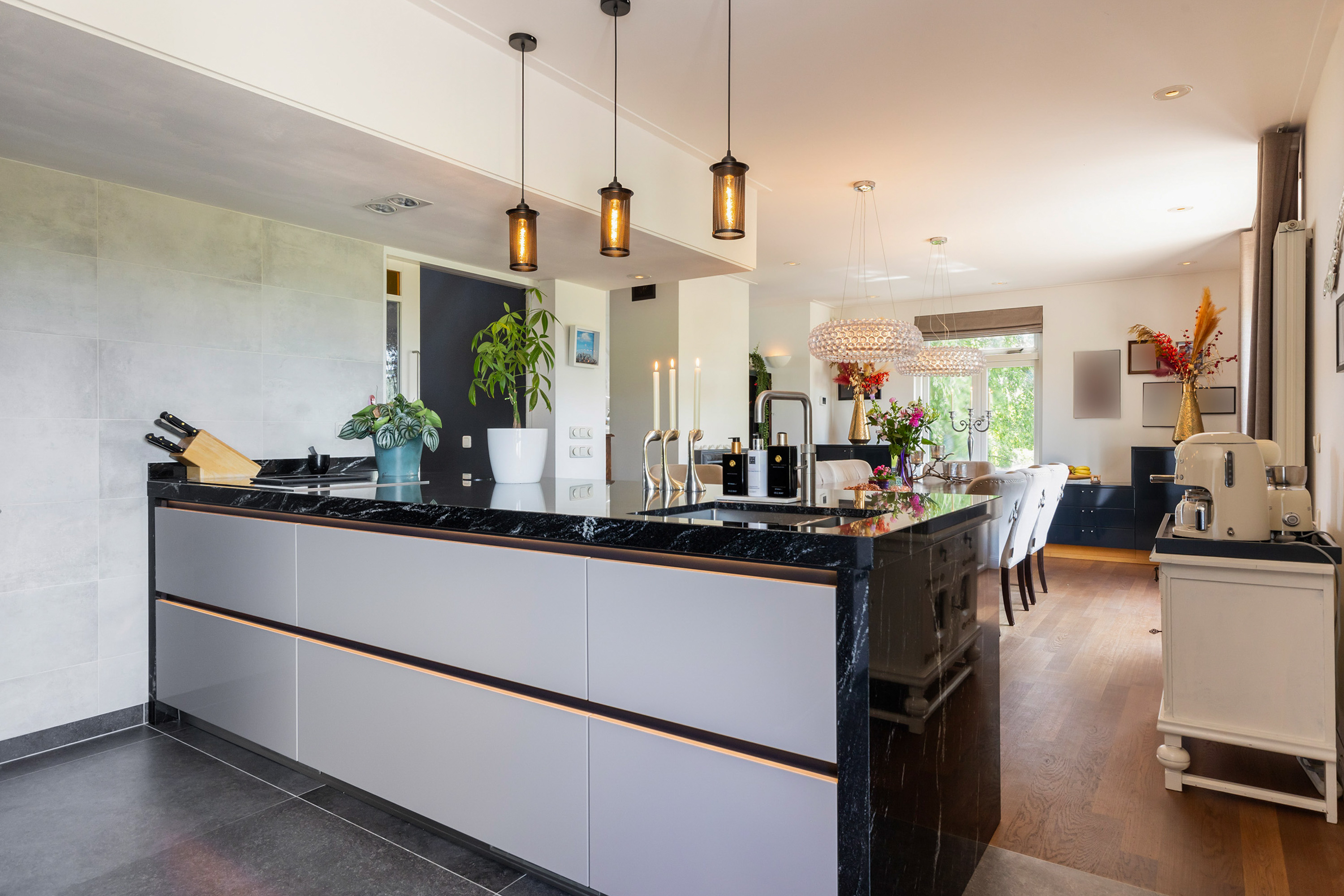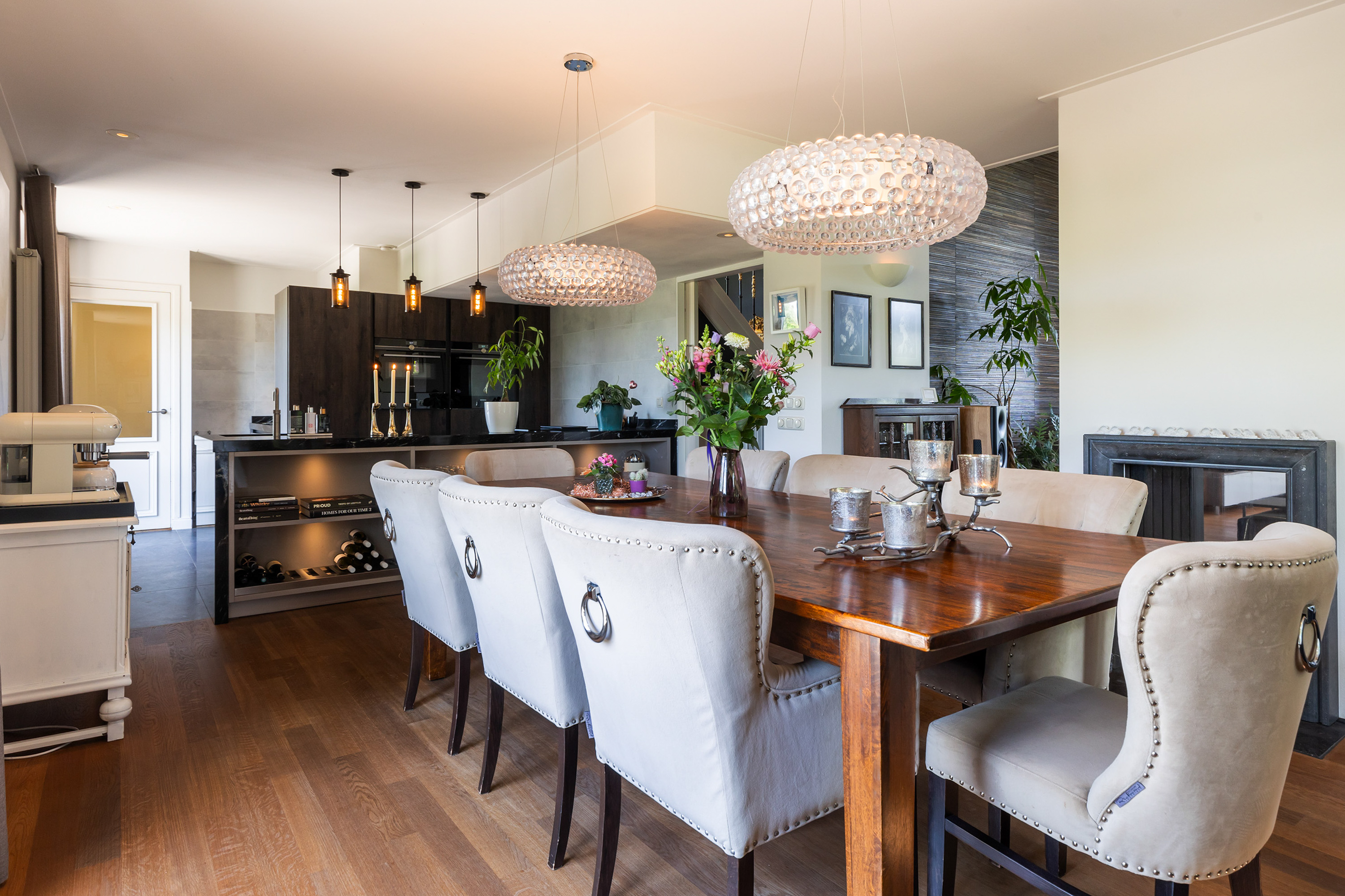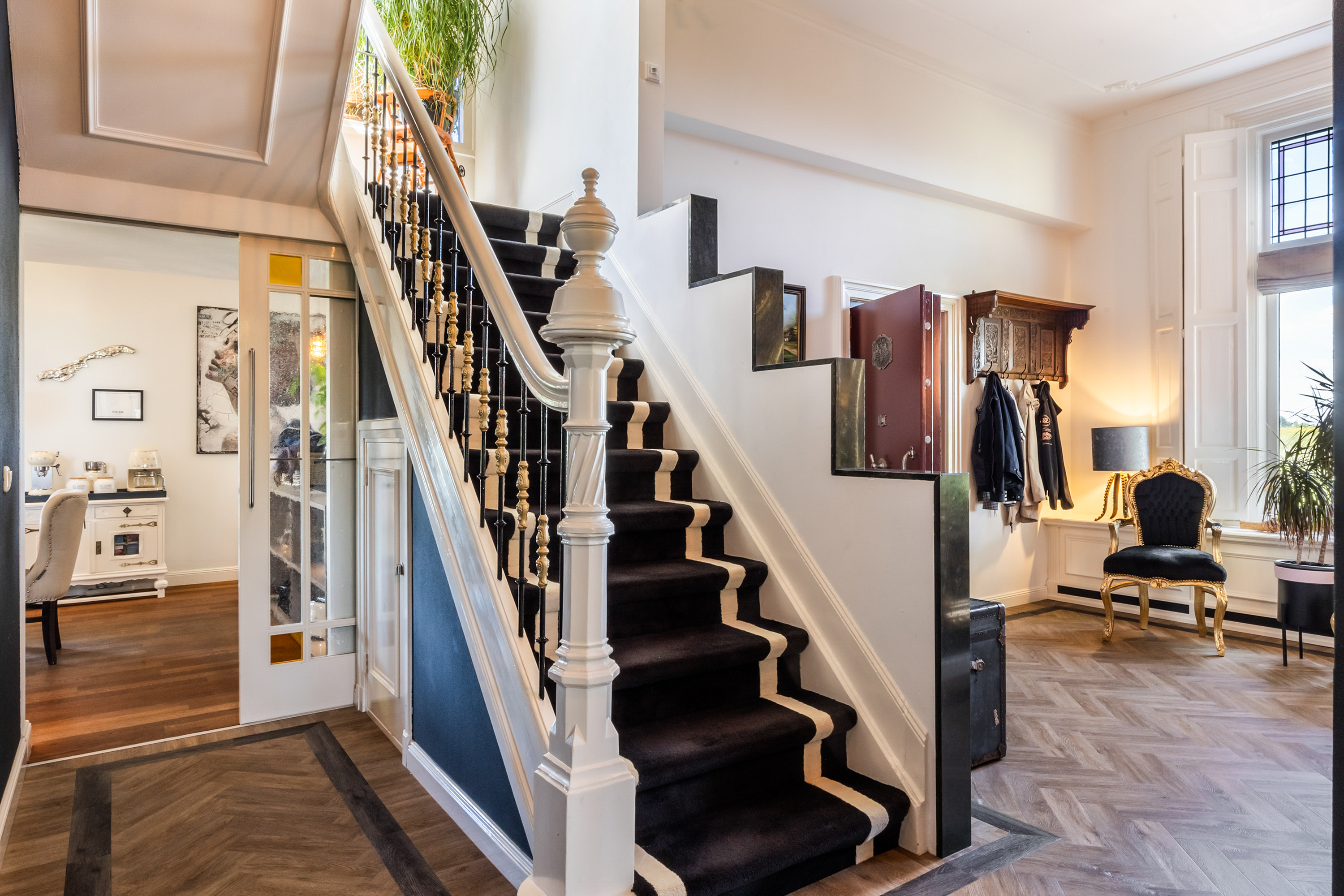 De villa onderscheidt zich niet alleen door haar ligging, maar ook door haar veelzijdigheid. Met vier volwaardige woonlagen is er een natuurlijke scheiding ontstaan tussen wonen, werken en ontvangen. Op dijkniveau bevindt zich het hart van de woning: een elegante leefverdieping waar verschillende woonfuncties op harmonieuze wijze samenkomen. Vanuit de vestibule bereikt u een royale werkkamer met haardpartij en uitzicht over de rivier. De aansluitende woon- en eetkamer, evenals de open keuken, vormen één ruimtelijk geheel, verbonden door een sfeervolle doorkijkhaard. Grote raampartijen en openslaande deuren zorgen voor een directe verbinding met het balkon, waar het uitzicht over water en landerijen telkens opnieuw indruk maakt.