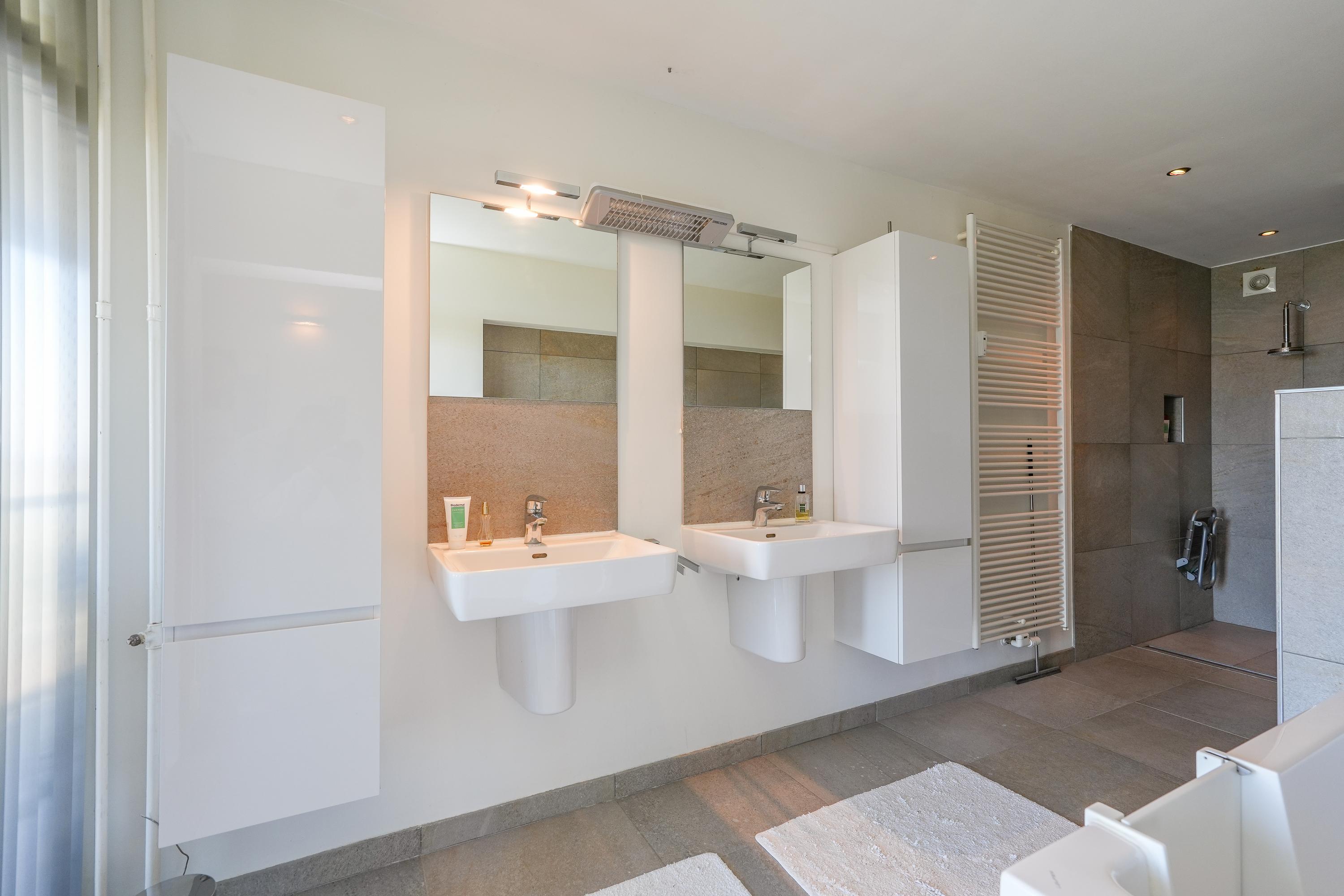 De overige twee slaapkamers zijn eveneens ruim en genieten, net als de rest van de woning, van veel daglicht en een vrij uitzicht. Één van deze kamers beschikt bovendien over een eigen balkon op het westen, perfect om te genieten van de middag- en avondzon. De tweede badkamer is voorzien van een douche en wastafel.
