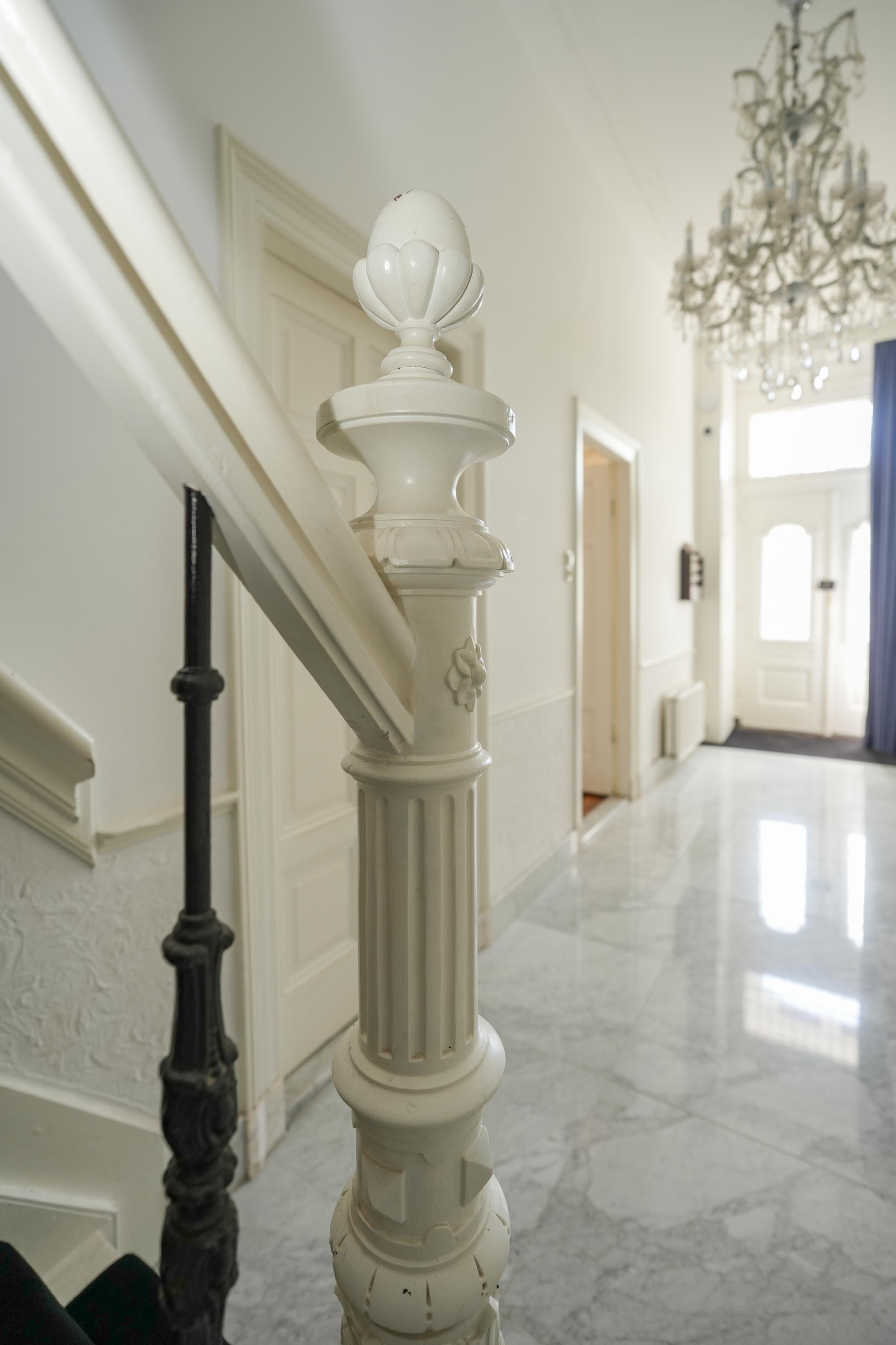 Statige hal/entree met meterkast en prachtig authentiek trappenhuis met marmeren vloeren, woonkamer en suite en eetkamer met schuifpui. In de kamer aan de voorzijde zijn de originele vensterbanken nog aanwezig, hier kan je lekker van de ochtendzon genieten. Via een tussenhal zijn het toilet, keuken en slaapkamer met badkamer bereikbaar. De sfeervolle binnentuin is toegankelijk zowel vanuit de eetkamer als de slaapkamer. De ruime keuken heeft een U-opstelling met inbouwapparatuur en een barretje.