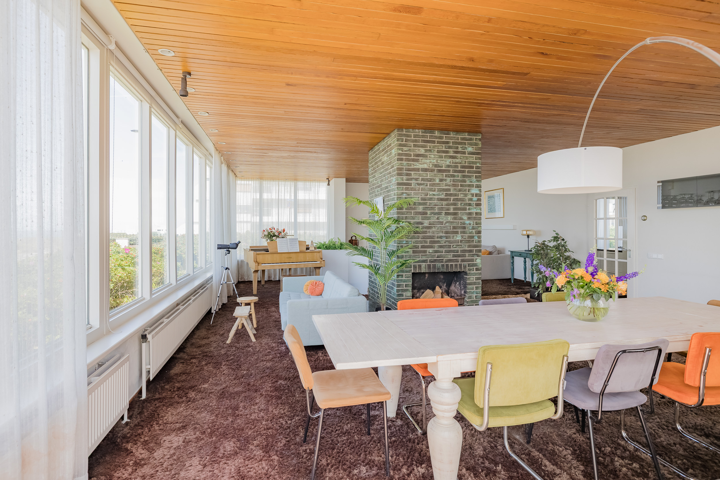 De keuken, voorzien van inbouwapparatuur, is praktisch ingericht met veel kastruimte. Verder vind je op de begane grond een lichte 2e woonkamer met een gashaard, ideaal voor ontspanning of als ruime werkkamer. Daarnaast beschikt de begane grond over een comfortabele slaapkamer met inbouwkast. Het ruime zonnige terras op het zuiden is bereikbaar via de beide woonkamers. De badkamer in de hal is ideaal om na een dagje strand het zand direct van je af te spoelen.