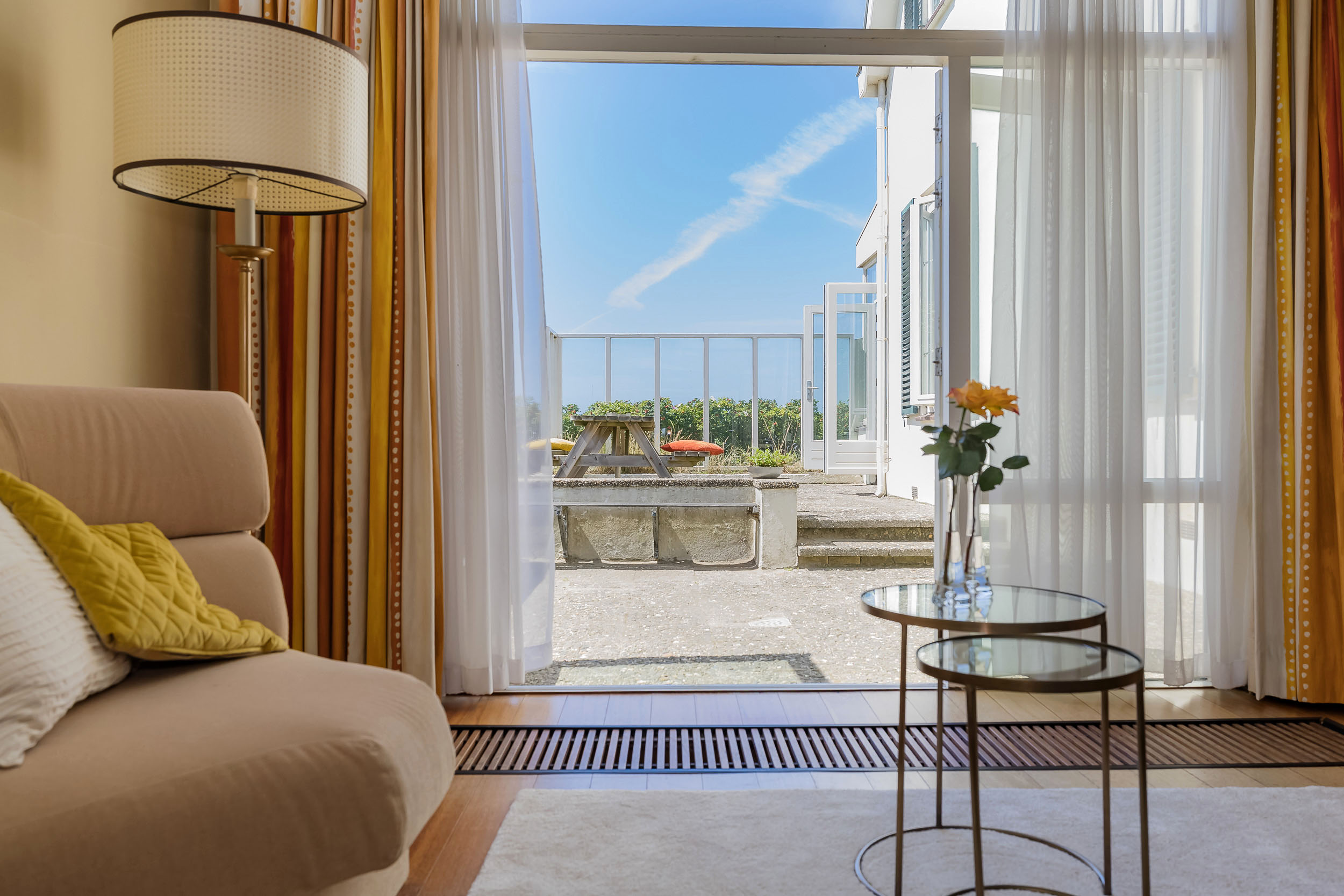 Door de grote raampartij in de living geniet je hier elke dag van het fenomenale uitzicht en geeft de open haard extra warmte en sfeer op koudere dagen.