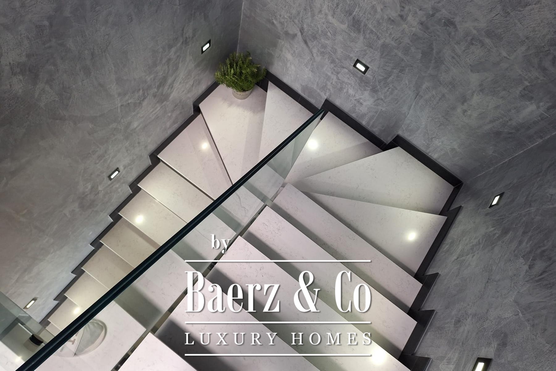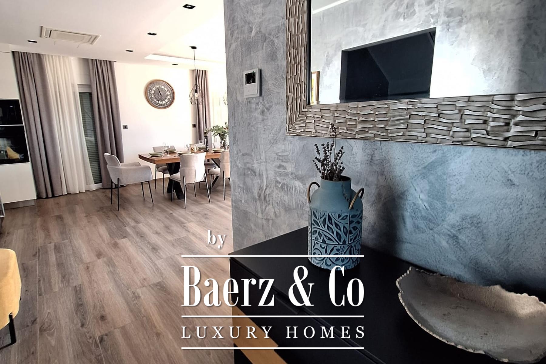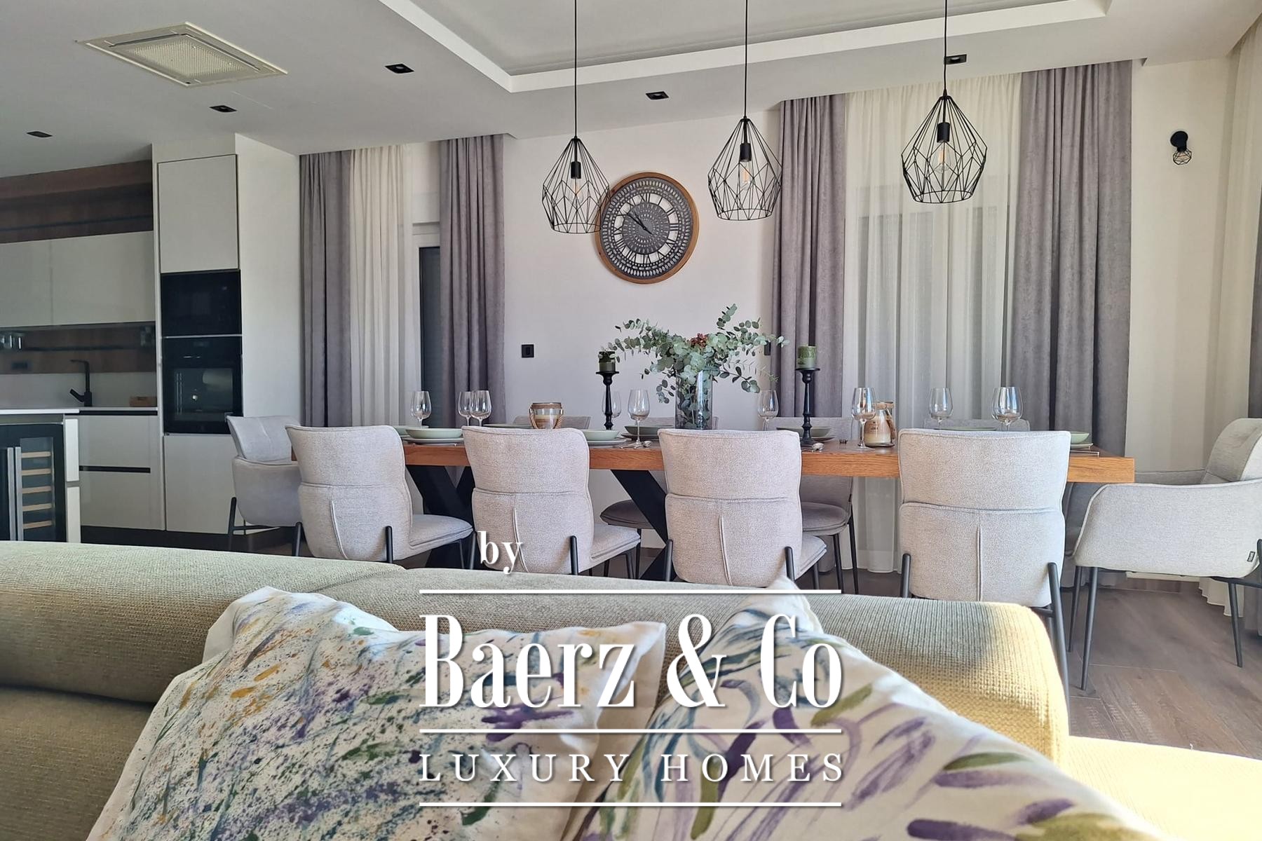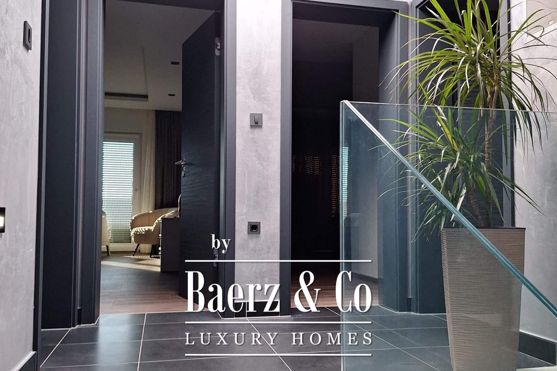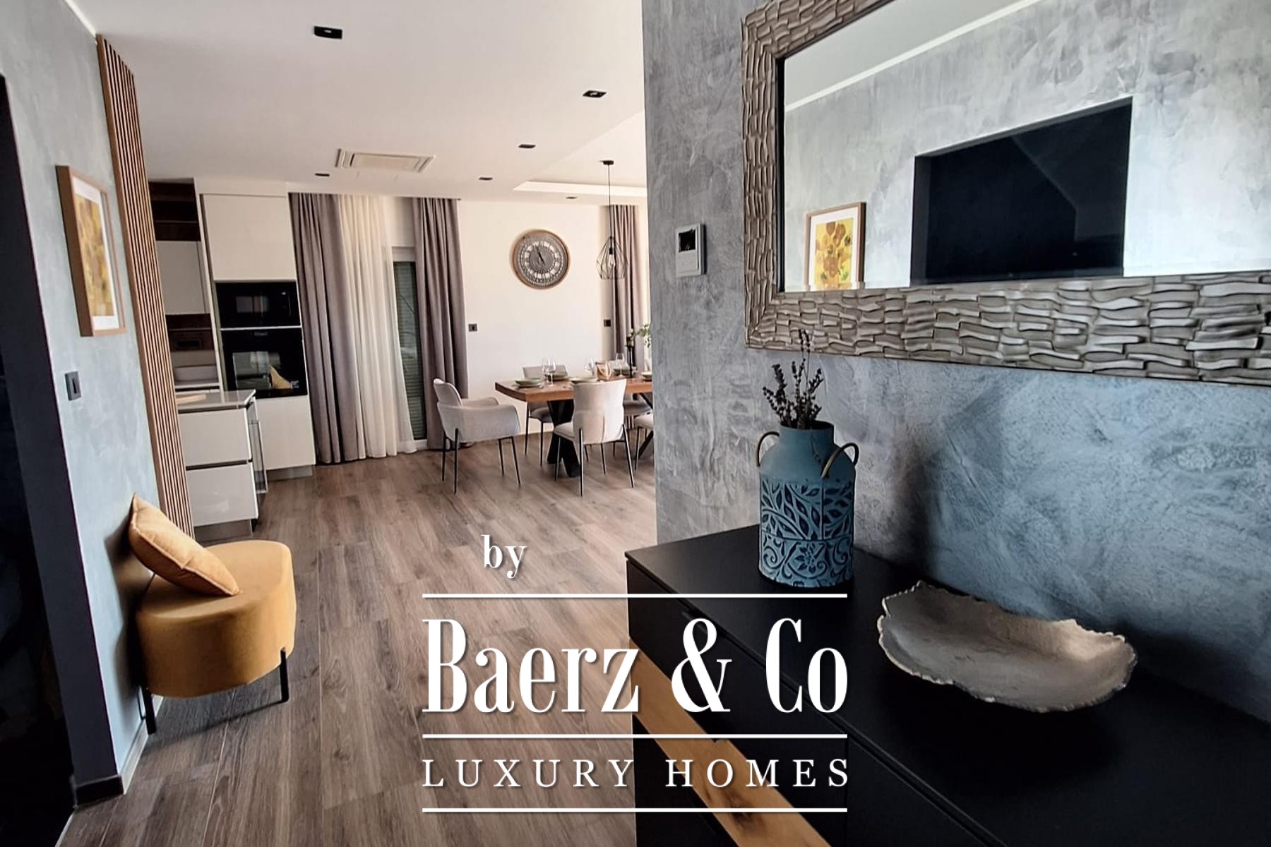 Boven bevinden zich vier slaapkamers, elk met een eigen domein en privé en suite badkamers, wat autonomie harmonieus combineert met het gezinsleven. Buiten omlijst een ruim terras het zwembad en verlengt het woongedeelte richting zee, uitnodigend tot lange middagen in rust of gezellig samenzijn. Deze villa, een luxe woning te koop in Novi Vinodolski, verenigt een transparant ontwerp met een benijdenswaardige kustlocatie.