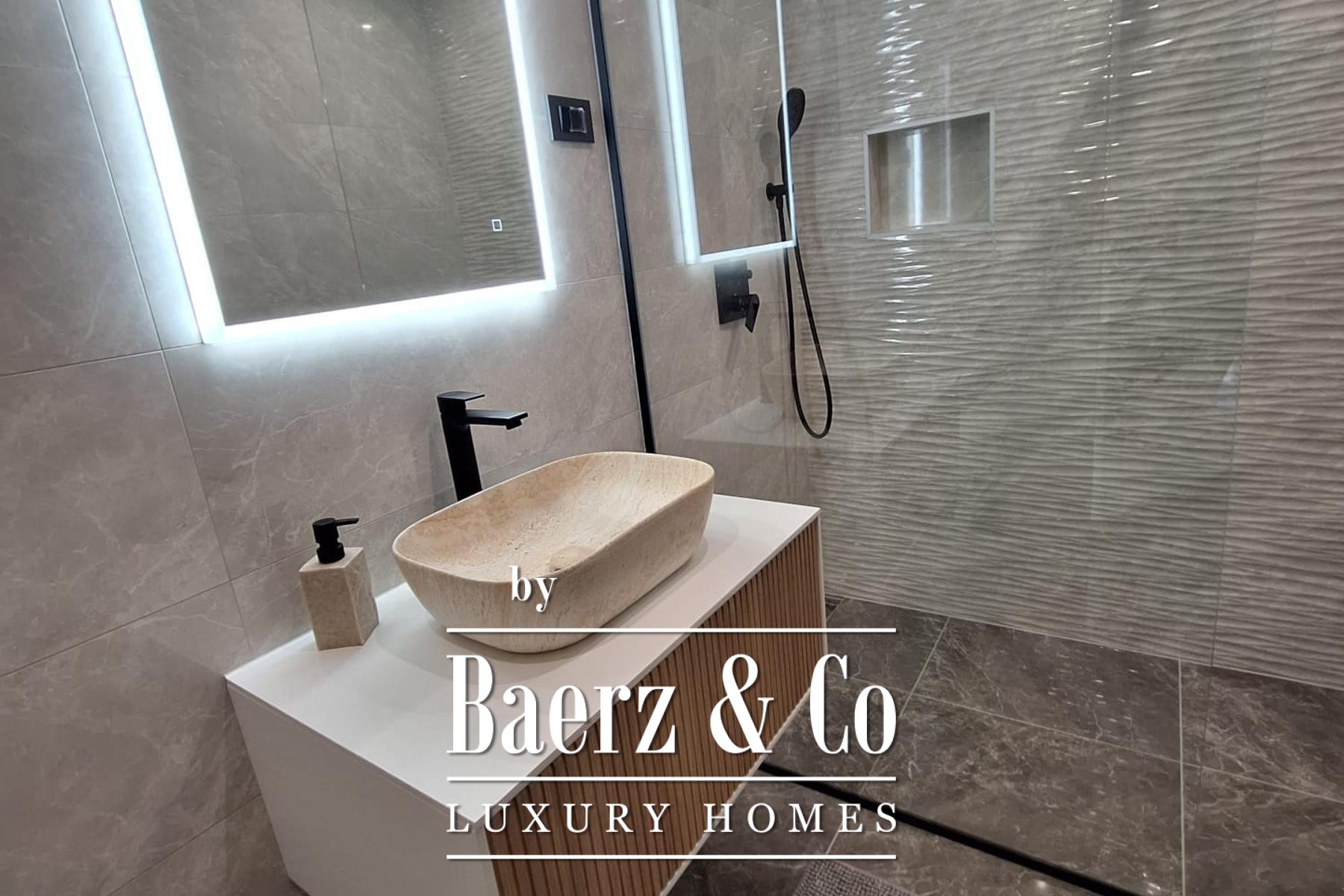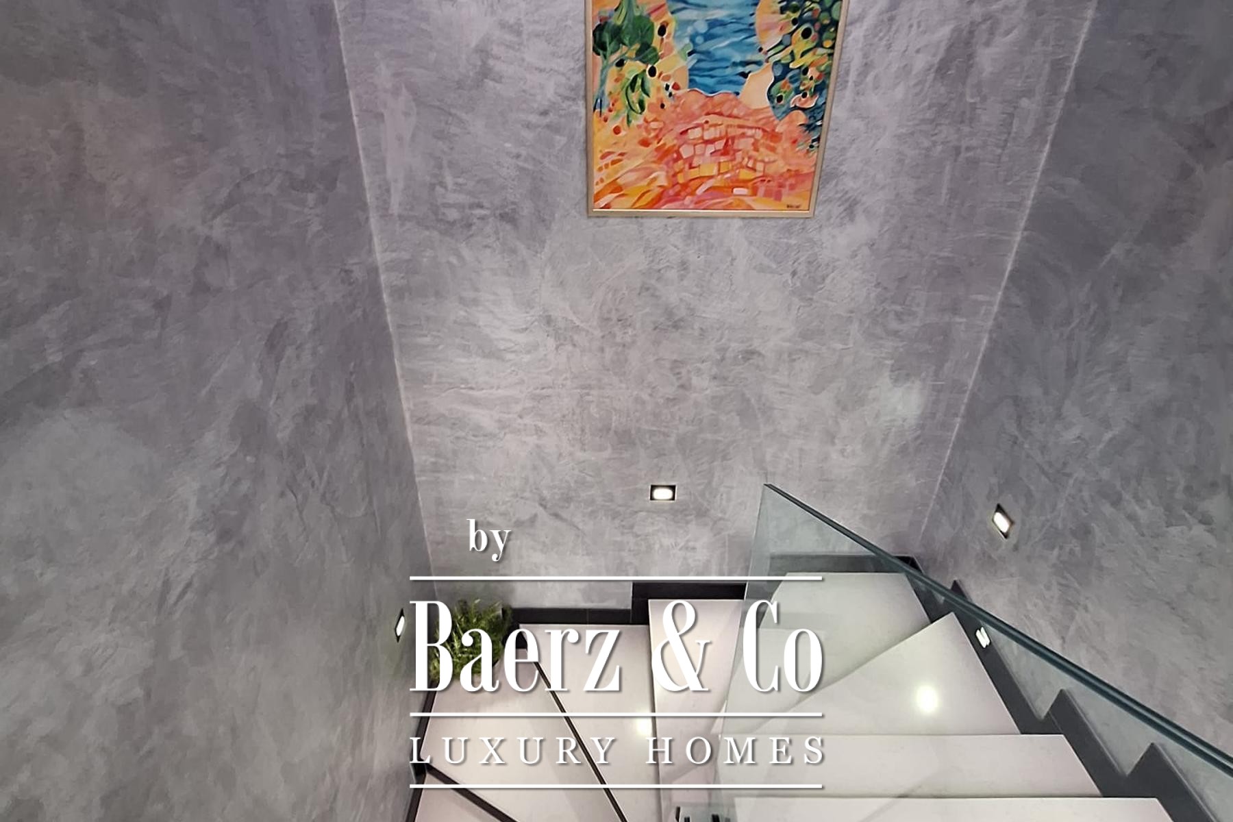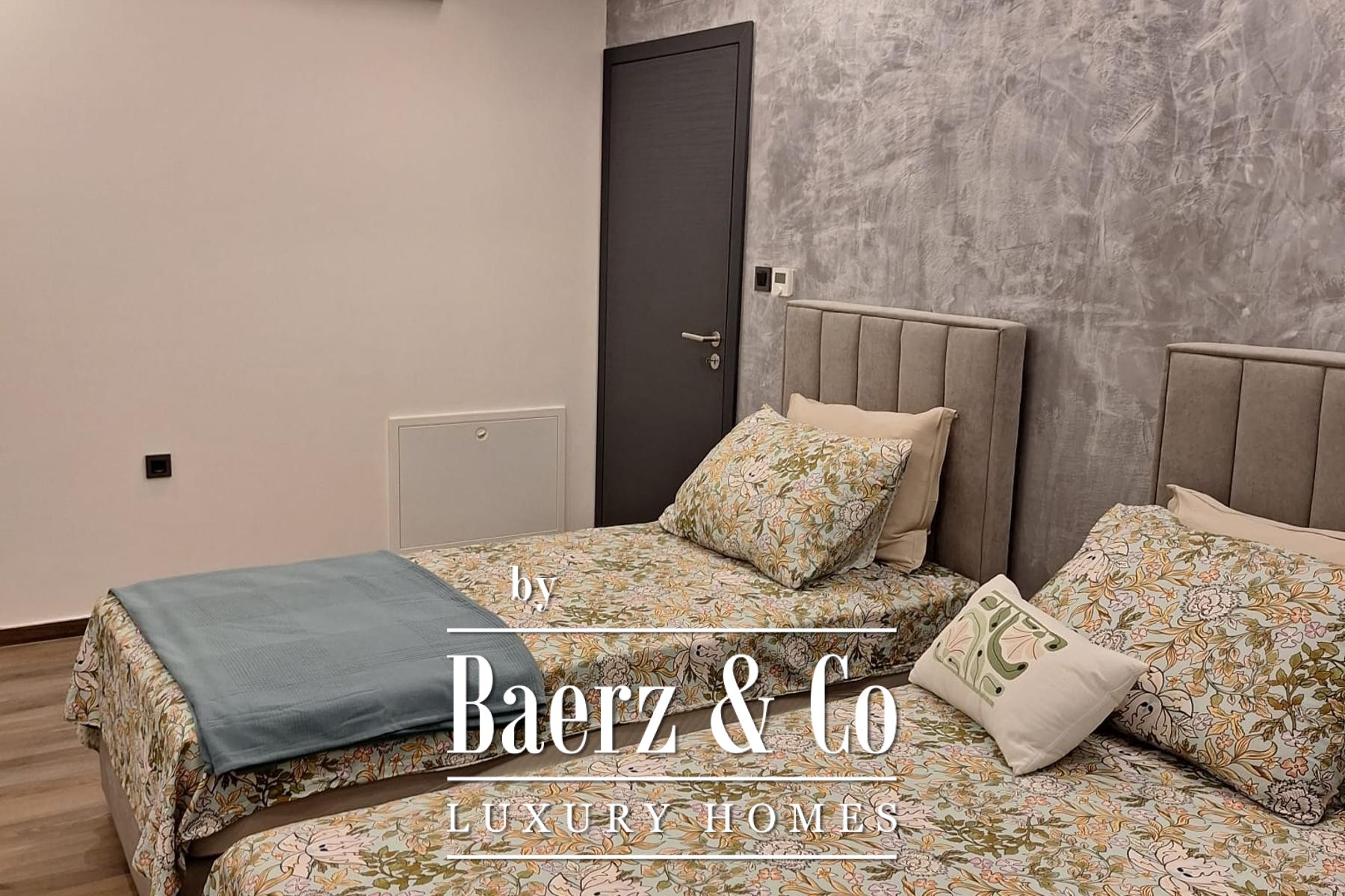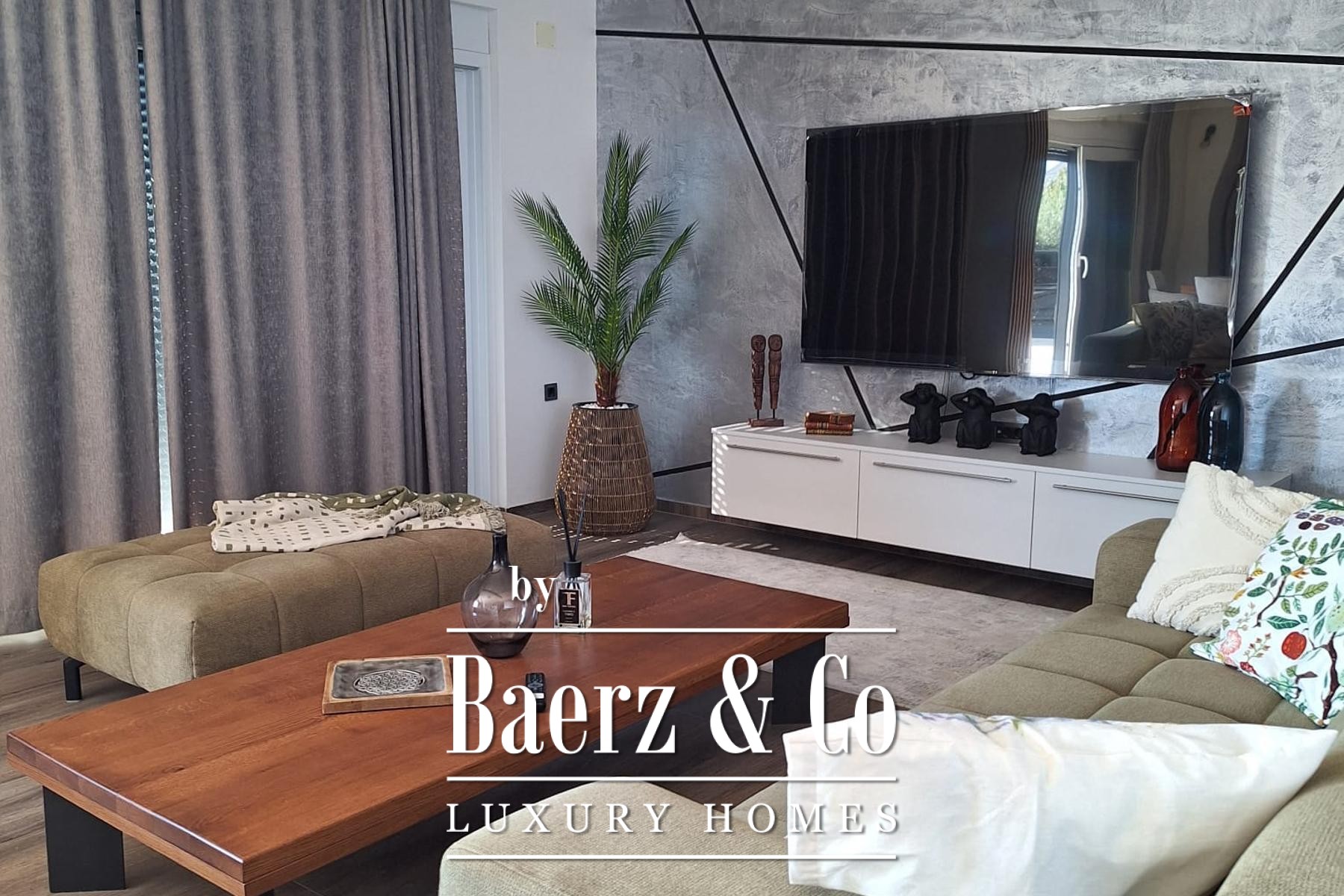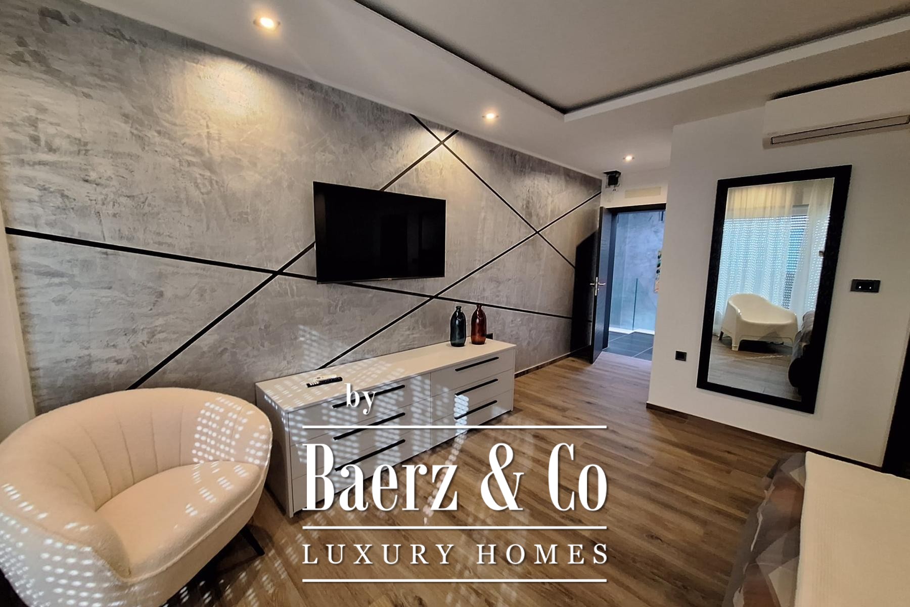 Boven bevinden zich vier slaapkamers, elk met een eigen domein en privé en suite badkamers, wat autonomie harmonieus combineert met het gezinsleven. Buiten omlijst een ruim terras het zwembad en verlengt het woongedeelte richting zee, uitnodigend tot lange middagen in rust of gezellig samenzijn. Deze villa, een luxe woning te koop in Novi Vinodolski, verenigt een transparant ontwerp met een benijdenswaardige kustlocatie.