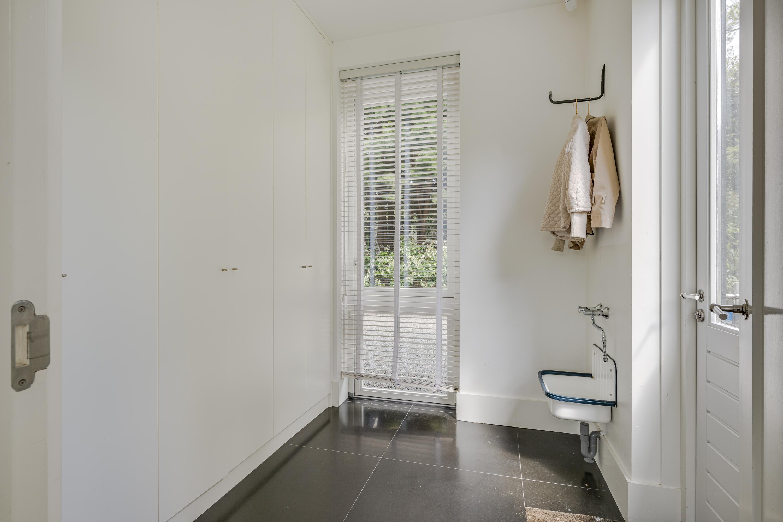 Het bordes met dubbele entreedeur geeft toegang tot de ruime hal waarin centraal het trappenhuis en vide zijn gesitueerd. In de hal vindt u tevens de wc voor de gasten, een ruime garderobe en de meterkast. Ook bevindt zich hier de trap die leidt naar de kelder en de bordestrap naar de bovengelegen verdieping. De dubbele glazen deuren bieden een doorkijk naar de moderne woonkamer.