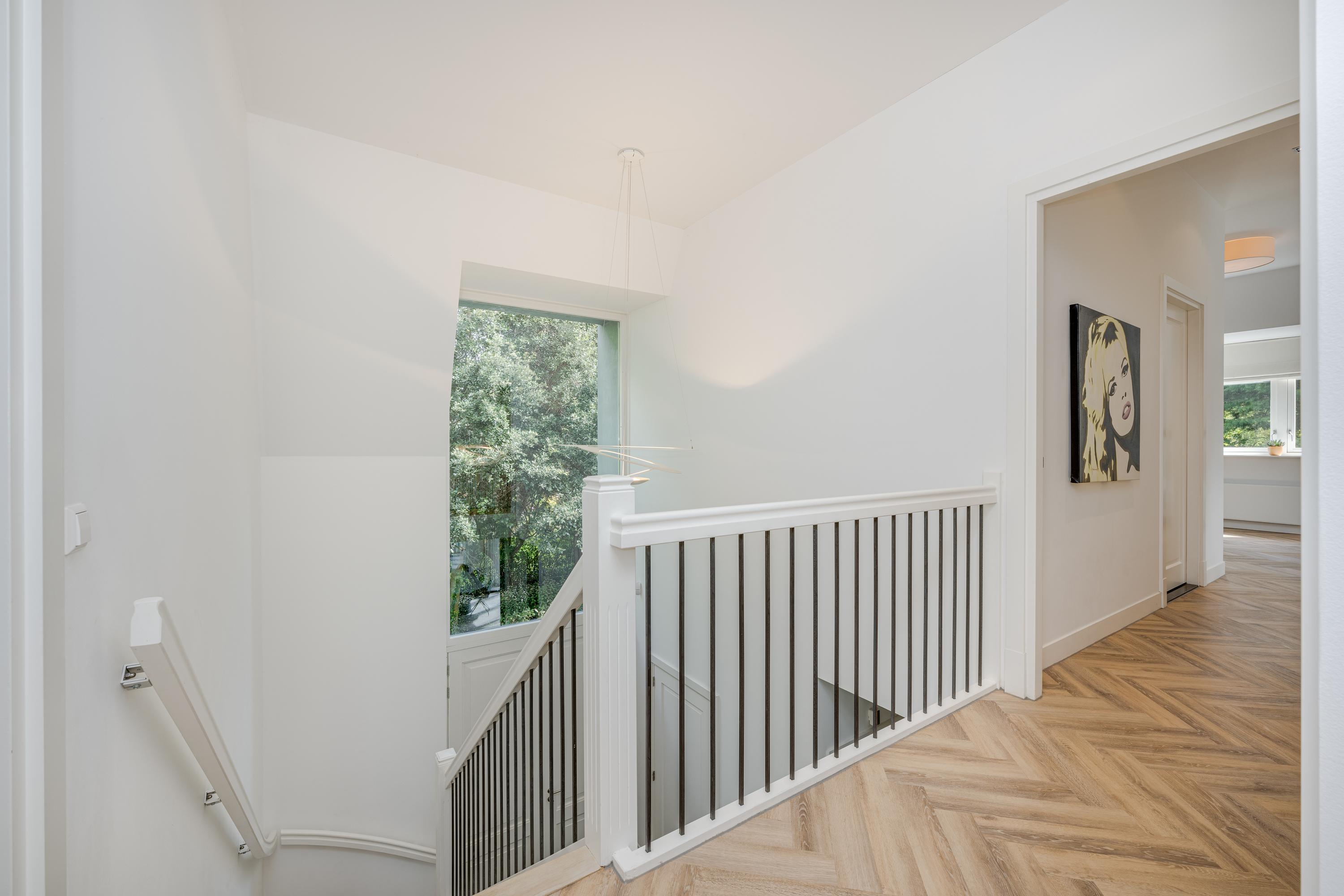 Via de fraaie trap bereikt u de overloop met prachtig hoge deuren die toegang geven tot de diverse vertrekken. Achter deze deuren bevinden zich in totaal vier grote slaapkamers, twee badkamers, de technische ruimte en een ruimte voor de was- en droogopstelling. Van de vier slaapkamers zijn er drie in gebruik als kinderkamer met een gedeelde badkamer voorzien van een dubbele wastafel en een inloopdouche met regen- en handdouche. Tevens bevindt zich op de overloop een separaat toilet.