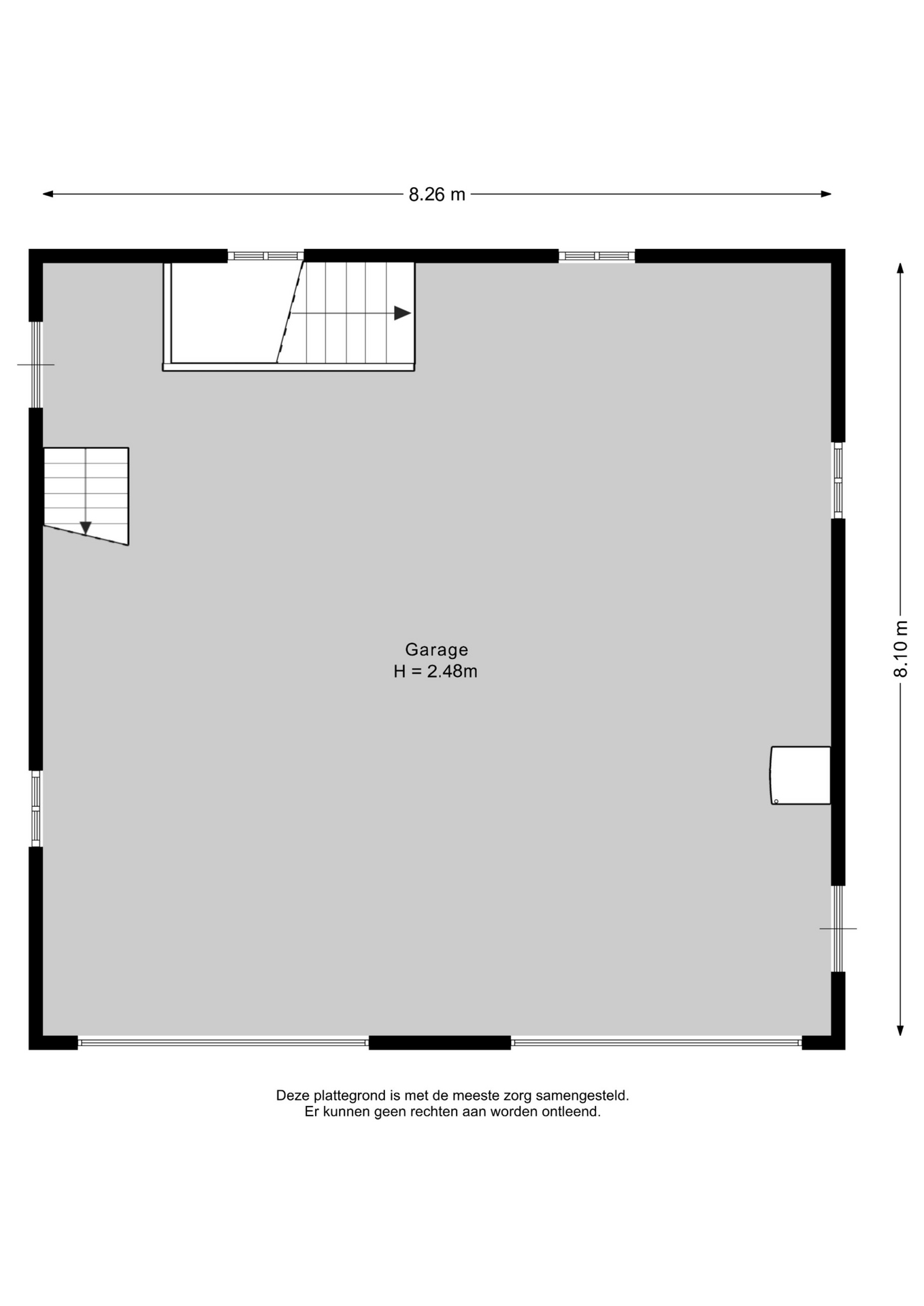 De begane grond is voorzien van een betonnen vloer en uitgerust met praktische voorzieningen zoals een gootsteen en twee laadpalen voor elektrische auto’s. In de kelder bevinden zich de beregeningsinstallatie, de meterkast, krachtstroomaansluiting, de omvormer voor de zonnepanelen én een voertuigen/goederenlift. Op de zolder bevindt zich de CV-ketel (Nefit Smartline HR). Bovenop de garage zijn zonnepanelen geïnstalleerd, wat bijdraagt aan duurzaamheid en energiebesparing. Deze garage biedt niet alleen veel ruimte en functionaliteit, maar ook moderne gemakken.