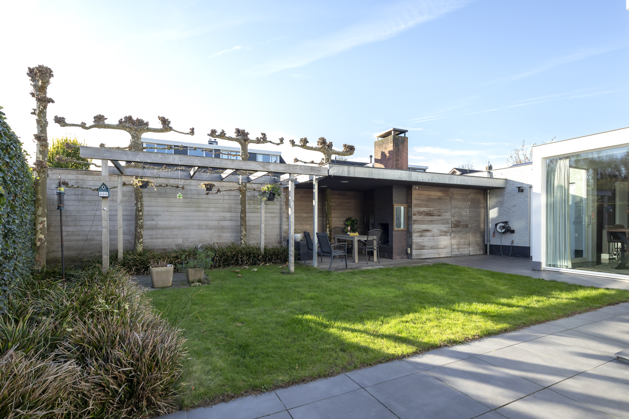 Een heerlijke tuin, gelegen op het zonnige zuidwesten. U kunt hier het hele jaar door genieten van het zonnetje, zowel onder het royale overdekte terras als in de fijne tuin. Het overdekte terras is in feite een extra tuinkamer, voorzien van 8 elektrisch bedienbare Velux vlakglaskoepels, ingebouwde geluidsspeakers en elektrisch bedienbare screens waardoor u helemaal windvrij, beschut zit. De overkapping grenzend aan het huis is ca. 25 m2 groot.