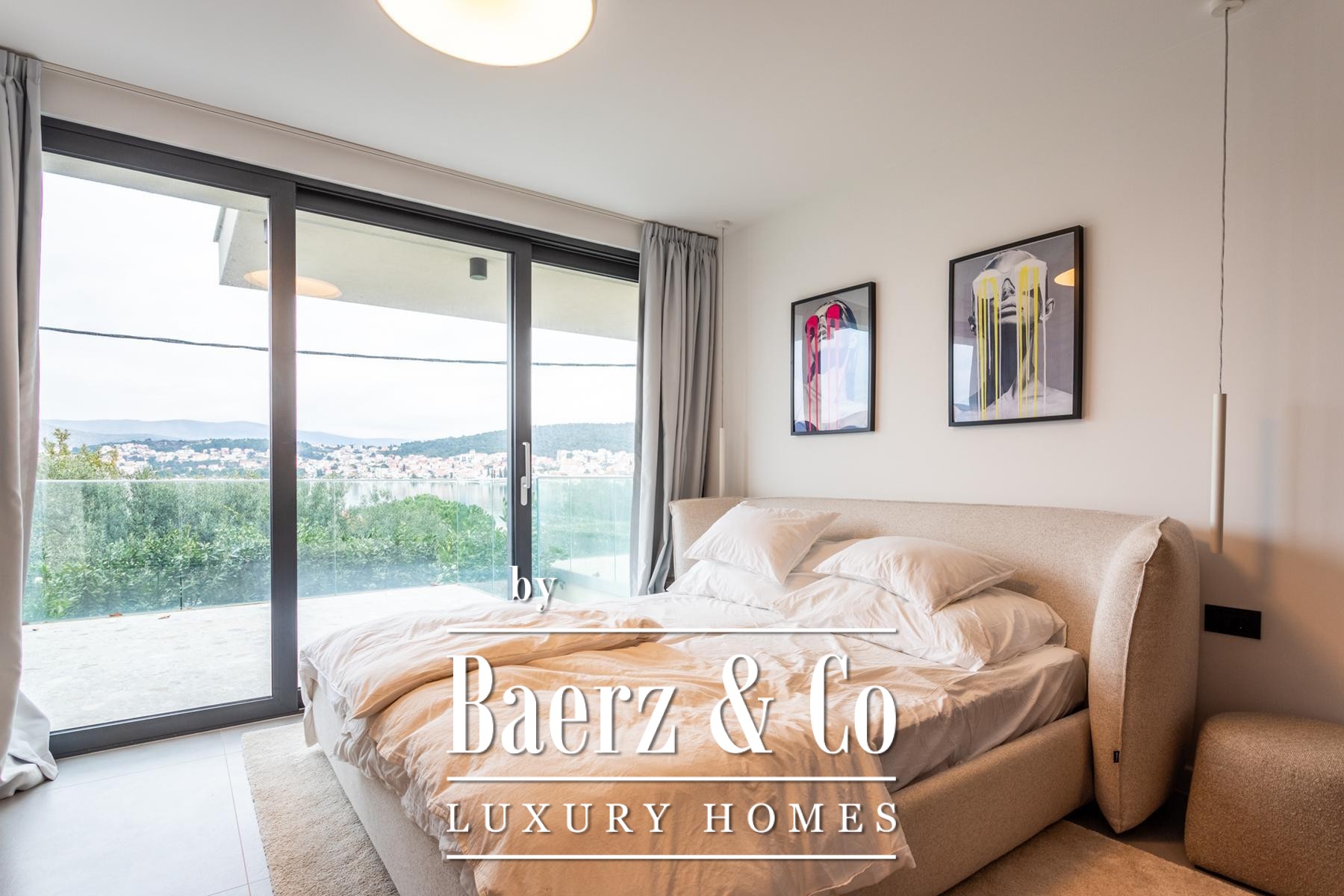 Drie eigen parkeerplaatsen buiten en een mediterrane tuinaanleg onderstrepen de moeiteloze elegantie van de villa. Volledige airconditioning en vloerverwarming verhogen het comfort verder. De ligging dicht bij het centrum van Okrug en het strand zorgt voor gemakkelijke bereikbaarheid en behoudt privacy. Villa Okrug met panoramisch uitzicht nodigt uit tot verfijnd wonen, op een steenworp afstand van de Adriatische kust.