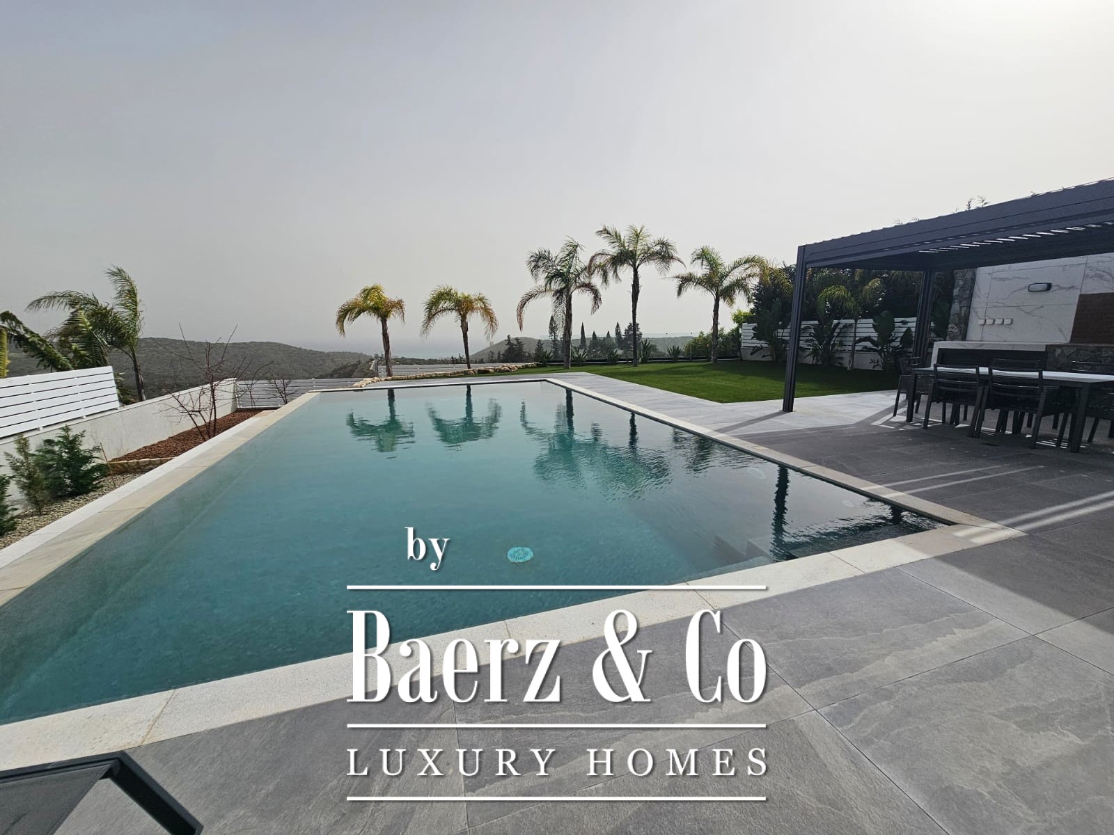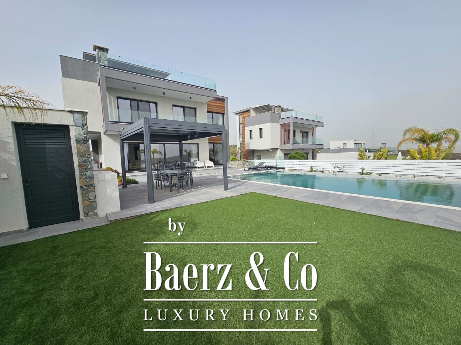 Gebouwd op een fraai aangelegd perceel van 888 m² biedt de villa bewoners de mogelijkheid om in alle rust te genieten langs het privézwembad, samen te komen in de zonnige BBQ-ruimte of te ontspannen in de bijzondere leefruimten. De indeling omvat vier slaapkamers, drie badkamers en twee aparte gastentoiletten, met een extra servicekamer voor extra gemak. De interieurs zijn afgewerkt tot in detail, met grootformaat tegels, aluminium ramen met dubbel glas voor thermische en akoestische isolatie, en een volledig geïntegreerde vloerverwarming en airconditioning.