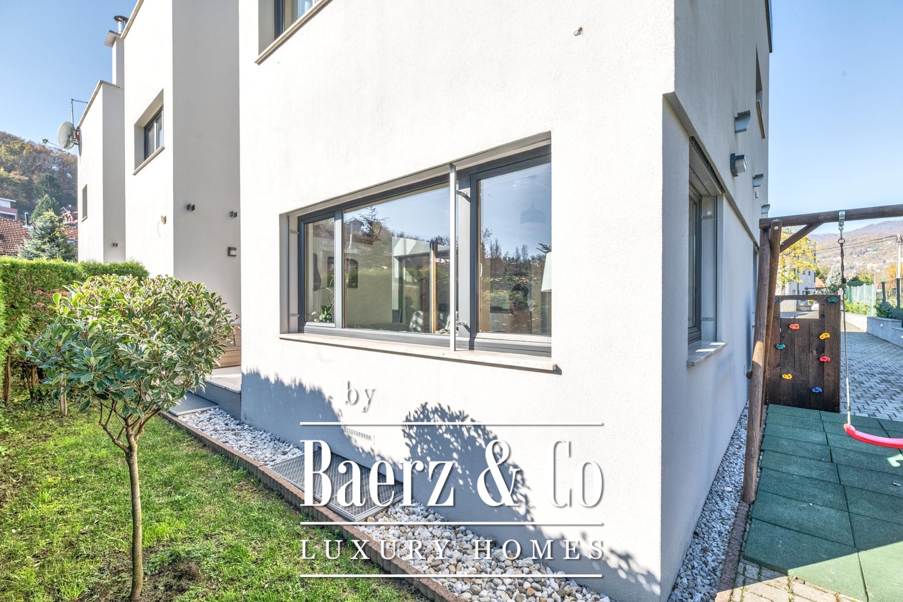 De begane grond start met een entreehal die vloeiend overgaat in een lichte woonkamer, naadloos verbonden met een open terras van 14 m² en een privé-tuin van 58 m². De keuken en eetruimte vormen een subtiel sociaal centrum, terwijl de bovenverdieping drie slaapkamers biedt—waarvan één geschikt als werkkamer—en stijlvolle badkamers. In het souterrain bevindt zich een discrete bergruimte, een extra badkamer en twee verdere slaapkamers, wat optimale privacy biedt voor gasten of familieleden.