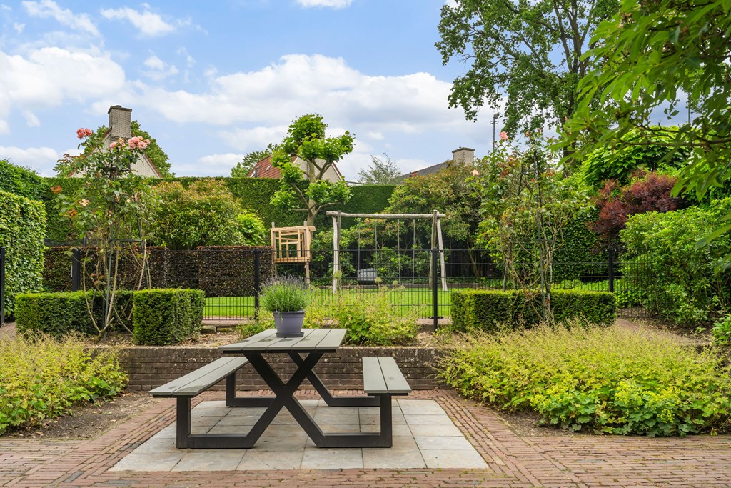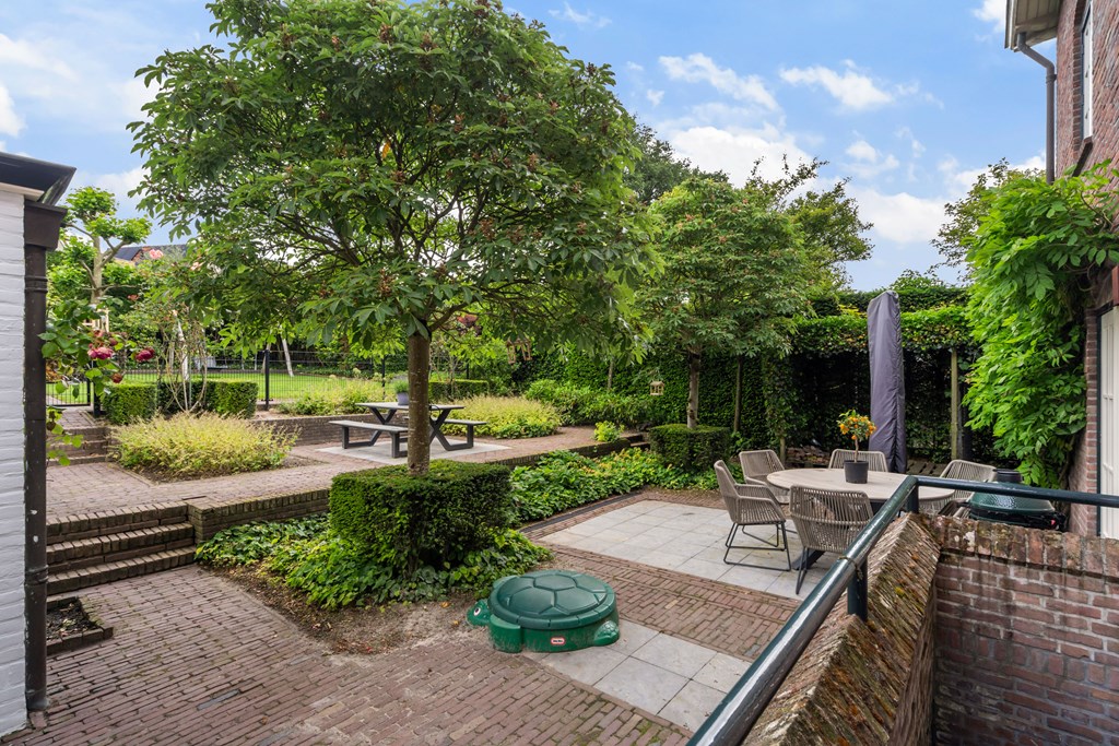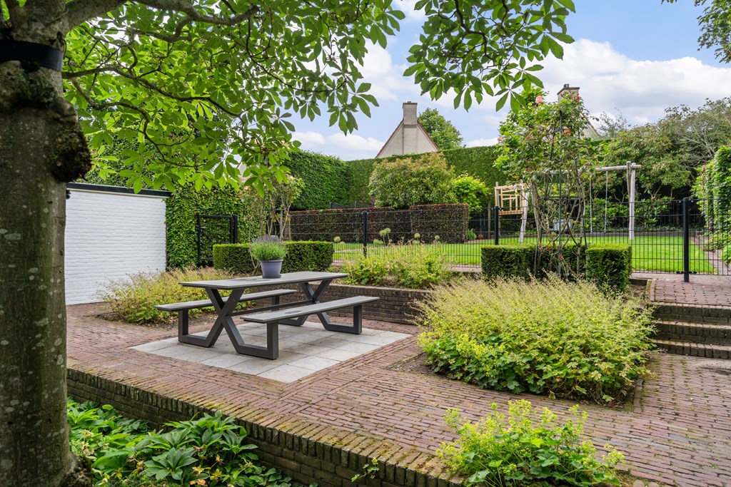 Buiten de villa vindt u een grote tuin met talloze mogelijkheden voor recreatie en ontspanning. Deze prachtige tuin biedt voldoende ruimte voor kinderen om te spelen, voor het aanleggen van een moestuin of voor het creëren van verschillende zithoekjes waar u kunt ontspannen. Of u nu wilt genieten van een zomerse barbecue, tuinieren, of gewoon in alle rust wilt relaxen, deze tuin biedt het allemaal. De tuin is een perfecte verlenging van de leefruimte binnen en biedt volop mogelijkheden voor buitenleven. De tuin is ook prachtig traditioneel met rozenstruiken en rijke borders.