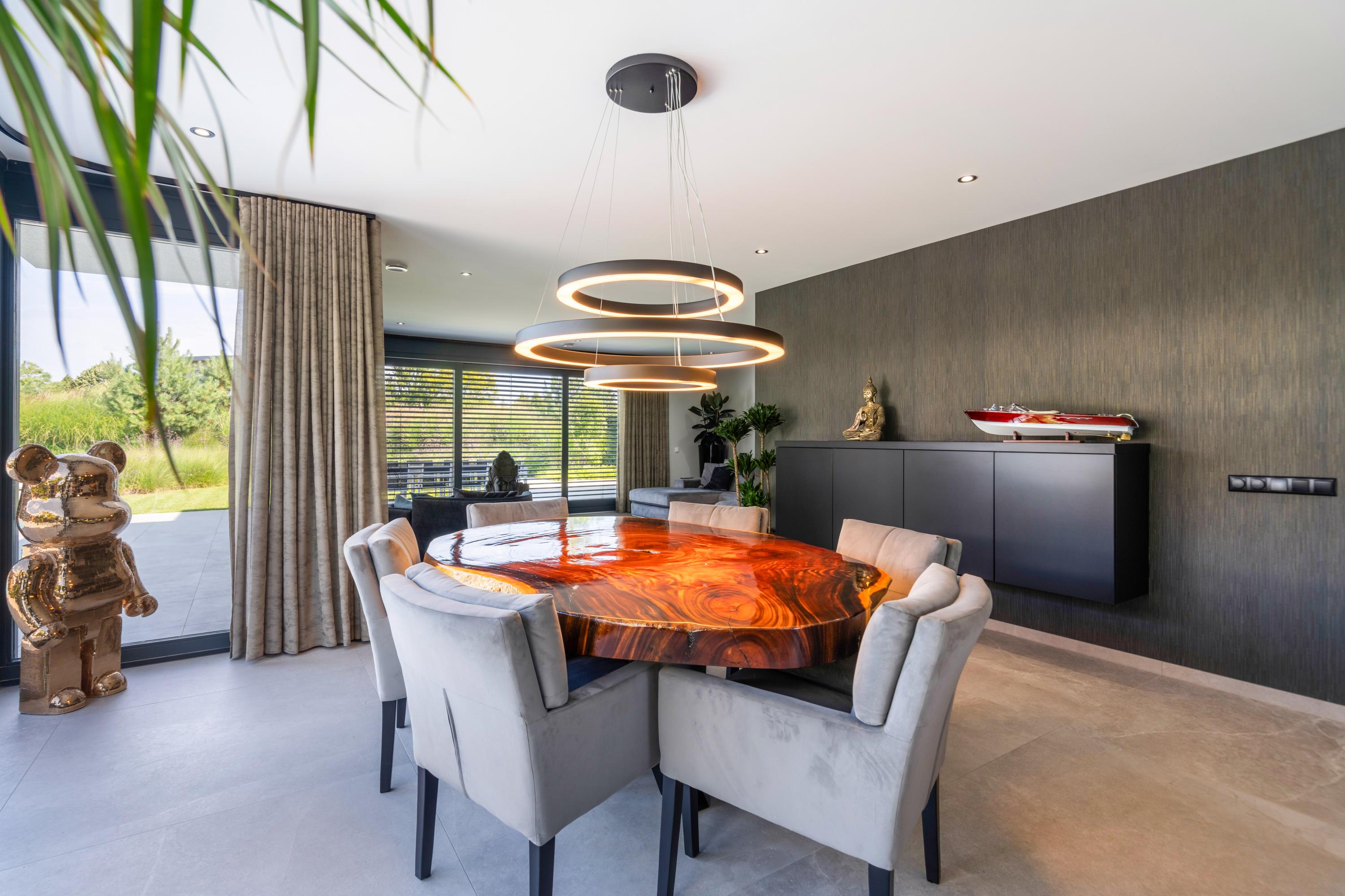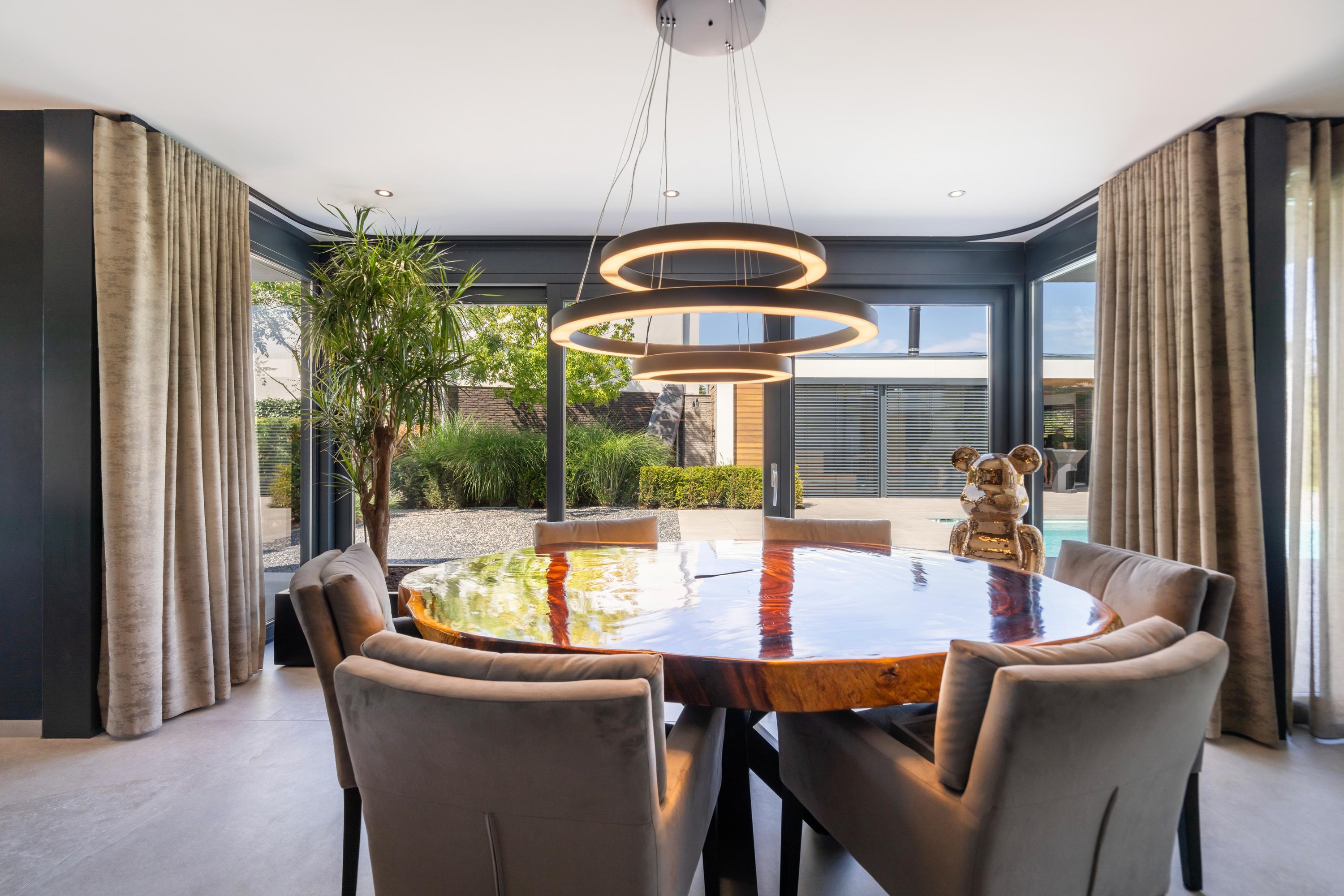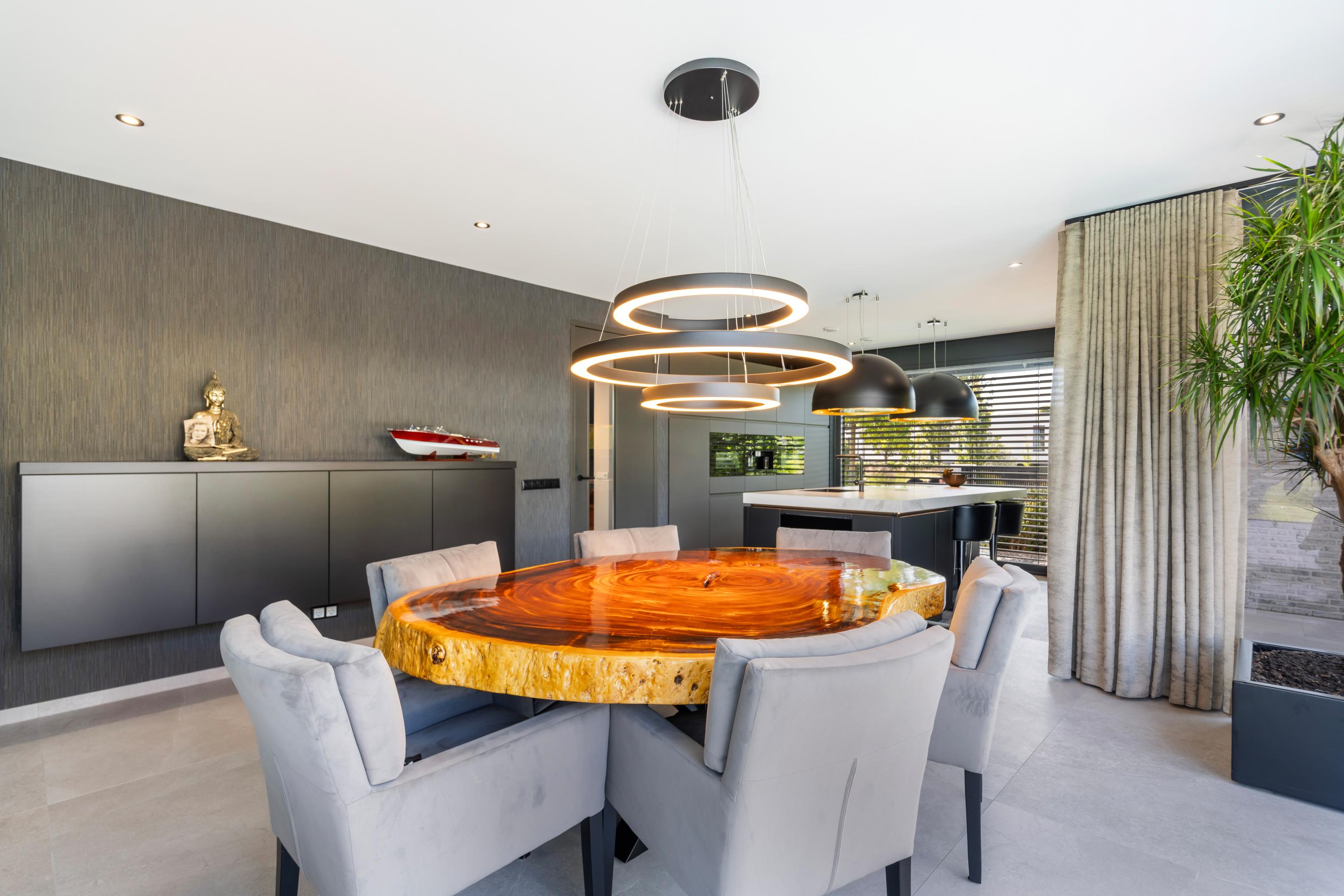 Er is een naadloze overgang tussen de luxe keuken met kookeiland, de eetkamer en de zitkamer. Perfect voor het ontvangen van gasten en het creëren van een gezellige sfeer. De begane grond is echt een fantastische plek om quality-time door te brengen met je gezin en vrienden. Vanuit elke hoek heb je een prachtig zicht op de tuin. En als het mooi weer is, zet je de schuifpui open en ontstaat er een mooie verbinding tussen binnen en buiten.