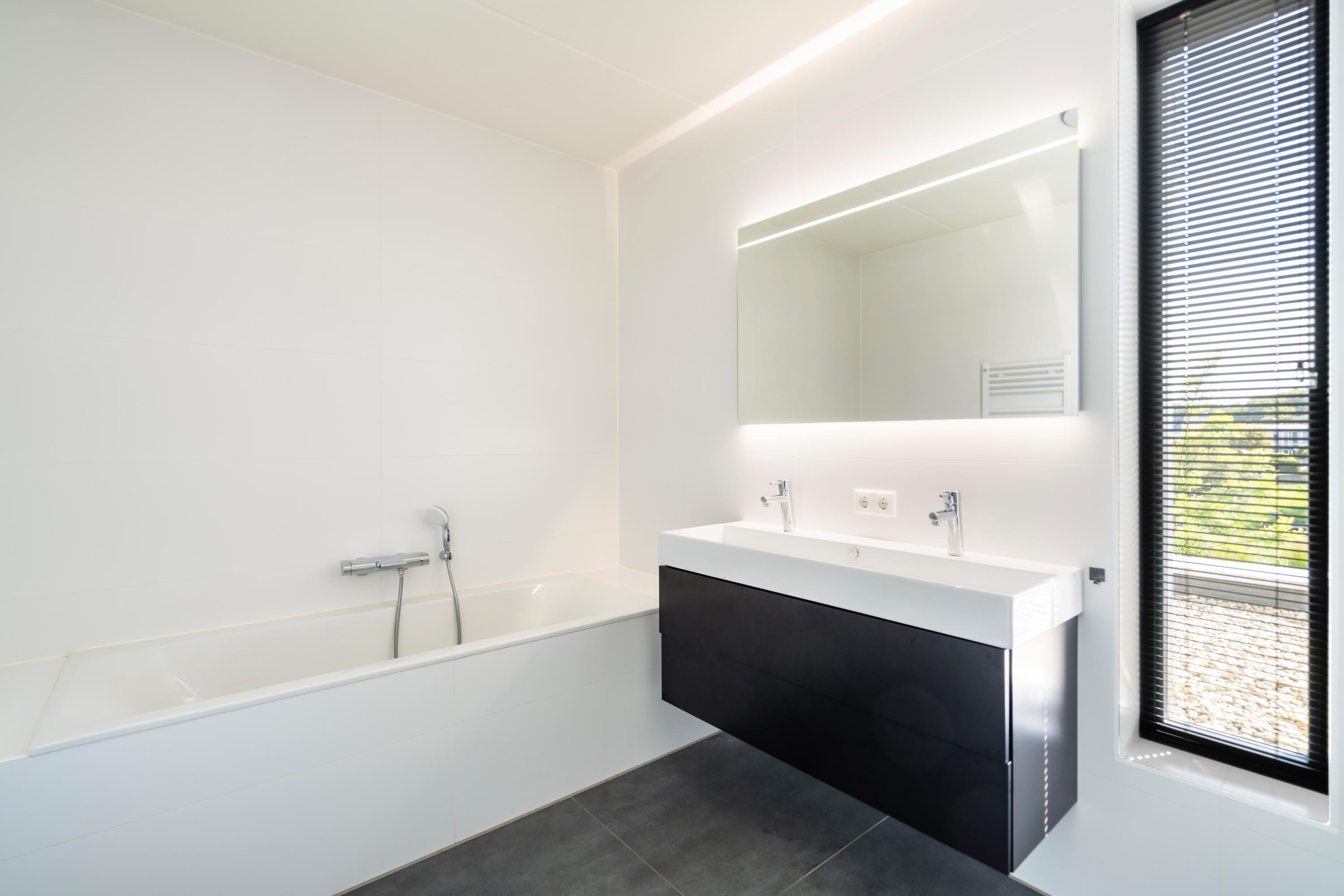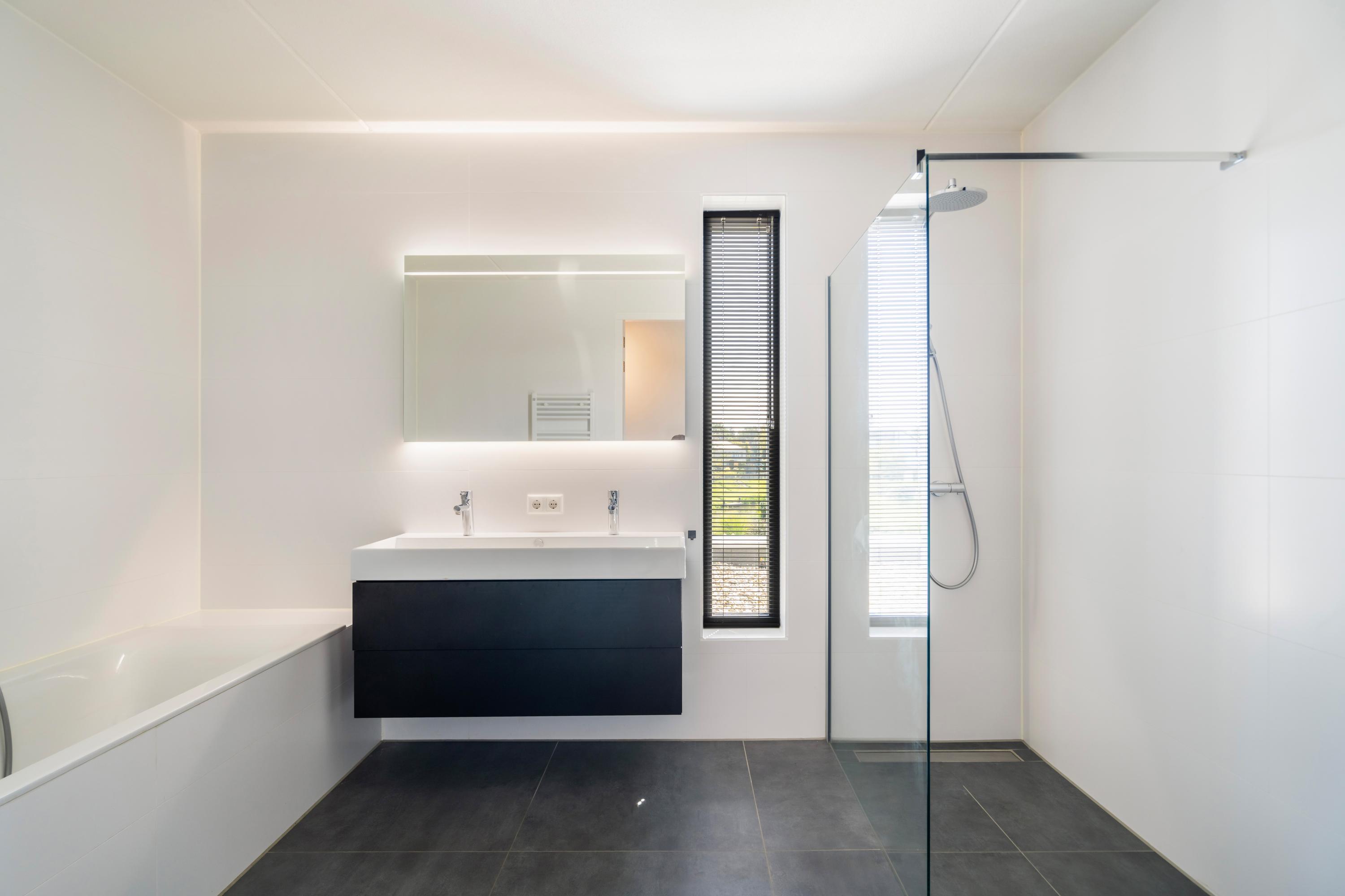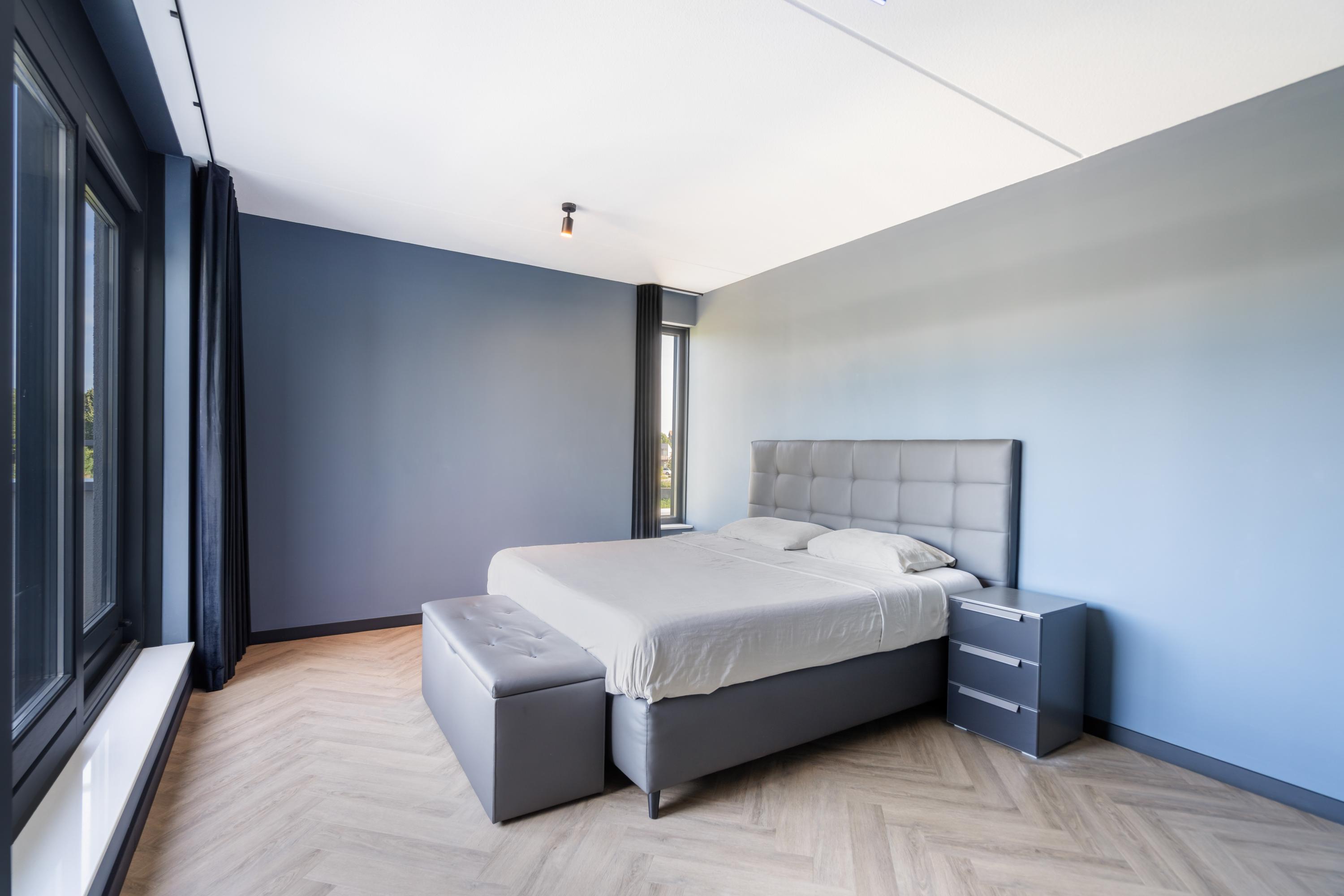 De eerste verdieping biedt drie ruime slaapkamers, een luxe badkamer en een separaat toilet. De slaapkamers en overloop zijn alles voorzien van eenzelfde, dorpelvrije en moderne PVC visgraatvloer. Ook op de verdieping zijn de vloeren voorzien van vloerverwarming en -koeling. Een van de slaapkamers is voorzien van een maatwerk kastenwand. De twee grootste slaapkamers bieden toegang tot een ruim dakterras met een schitterend uitzicht over het water. Een plek waar het heerlijk vertoeven is. De badkamer is voorzien van een ruime inloopdouche, ligbad, dubbele wastafel met meubel en een praktische opbergwand. Tevens is er een praktische berging met installaties aanwezig.
