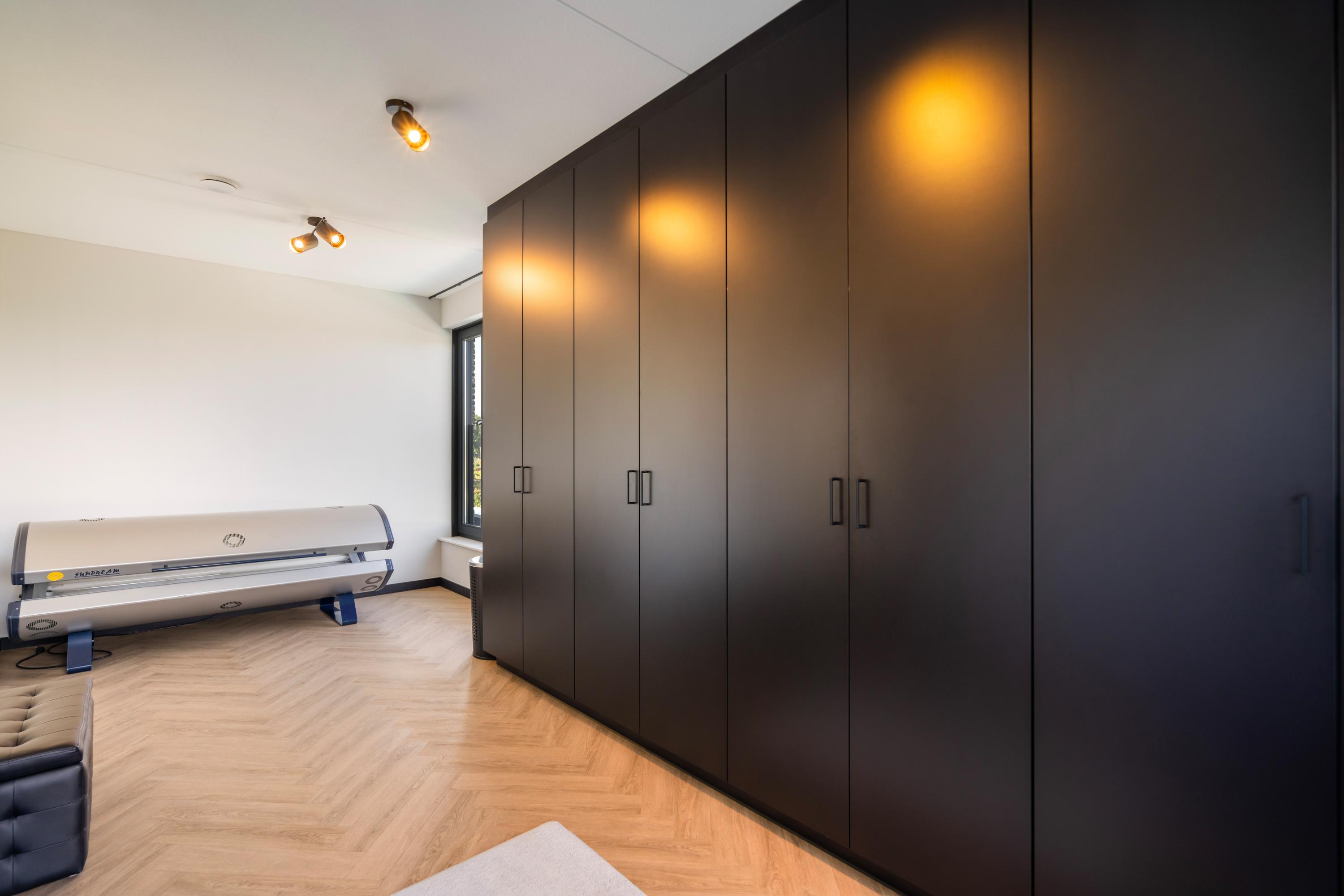De royale zijtuin en achtertuin zijn met dezelfde kwaliteit aangelegd. Een absoluut hoogtepunt is het luxe afgewerkte poolhouse in combinatie met een eigen sauna en een zwembad. De zorgvuldig uitgekozen houten, Finse afwerking in het interieur van deze poolhouse, zorgt voor een ultiem wellness gevoel. Bij binnenkomst valt meteen de verdraaibare houtkachel op die in de ruimte aanwezig is, een échte eye-catcher. Dit exclusieve buitenverblijf (inclusief overkapping circa 55 m2) maakt het mogelijk om het hele jaar door te genieten van ontspanning en comfort in eigen tuin. Of het nu gaat om een verfrissende duik op een zomerse dag in het zwembad of een sfeervolle avond met familie en vrienden — deze buitenruimte biedt het ultieme vakantiegevoel aan huis. De poolhouse is tevens voorzien van een keukenblok met spoelbak, wijnklimaatkast, koelkast, inductiekookplaat met Bora-afzuiging en diverse opbergkasten. Ook is er een muziekinstallatie met inbouwspots aanwezig. Aan de buitenzijde is er een buitendouche met themostaatkraan aanwezig. Er is een aparte ruimte waar alle installaties opgesteld zijn.