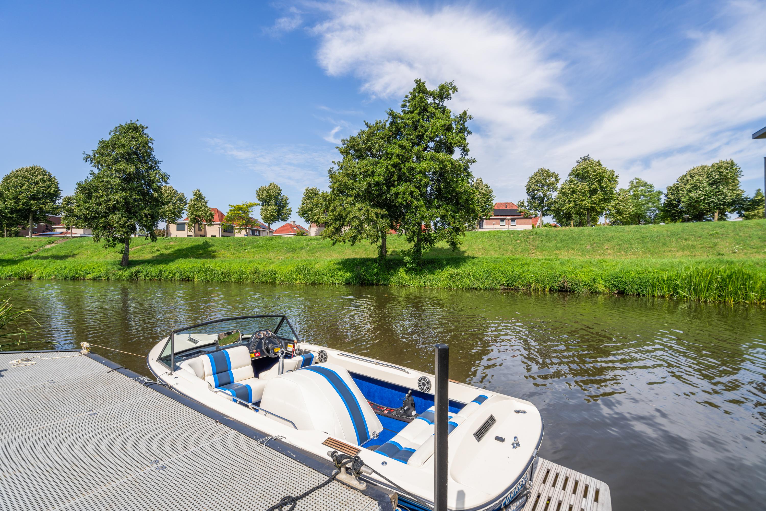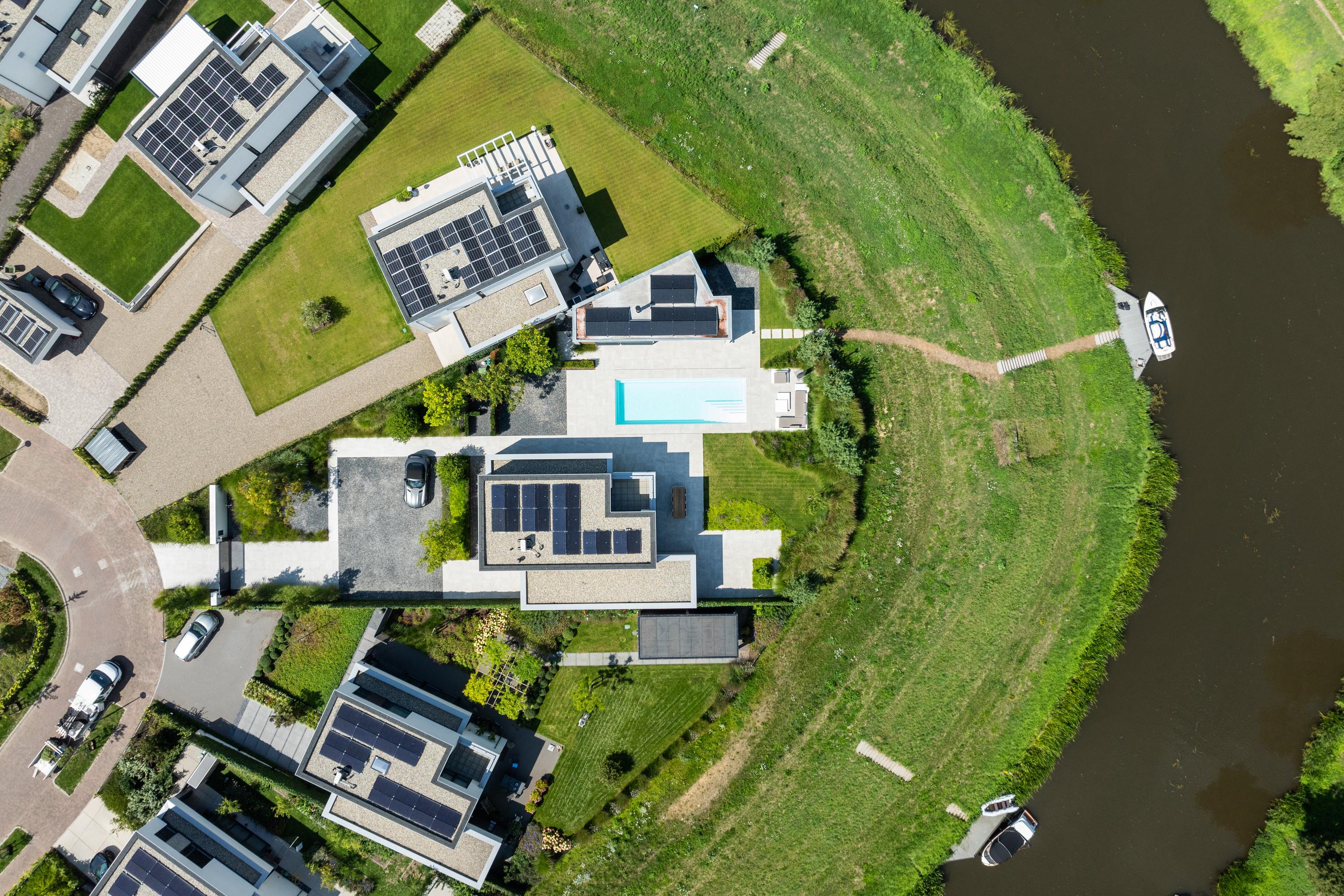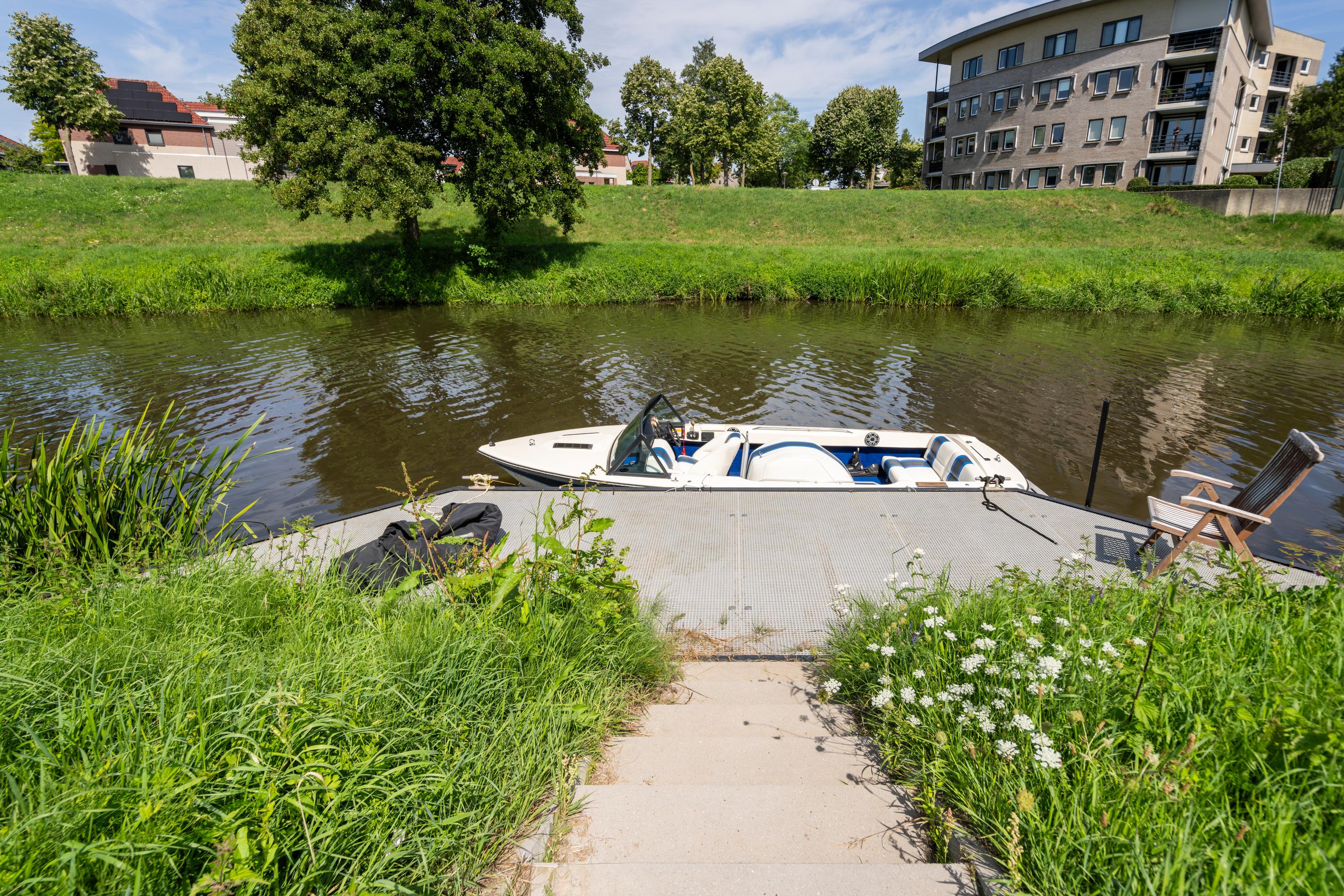 Meerdere terrassen in de tuin nodigen uit tot lange diners, gezellige borrels of rustige momenten in de zon. De tuin is verder aangelegd met onder andere gazon, split en diverse beplantingen. Hier is een perfecte balans tussen groen en het moderne karakter van het huis. Vanuit je tuin loop je de trap omlaag naar je eigen aanlegsteiger, zodat je vanuit hier zo je boot in kunt stappen. In enkele minuten vaar je naar de Maas en de Maasplassen zodat je kan genieten van een dagje op het water.