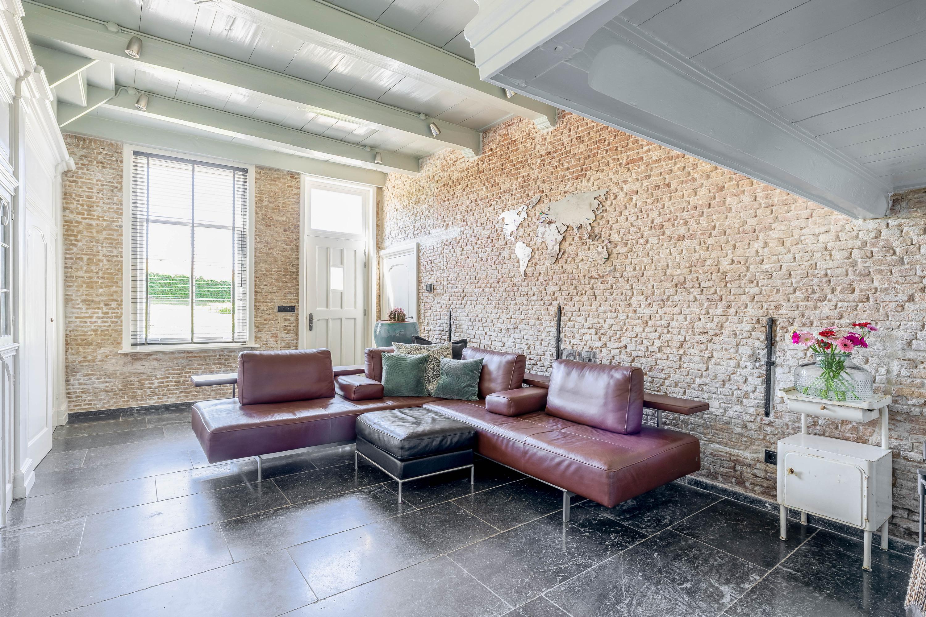 Het hele pand ademt karakter: van de ontvangsthal met antieke schouw, hardstenen vloer en verborgen doorgangen, de sfeervolle woonkamer met authentieke houten vloerdelen en houtkachel, tot en met de opkamer, nu in gebruik als werkkamer en de wijnkelder onder de opkamer.
