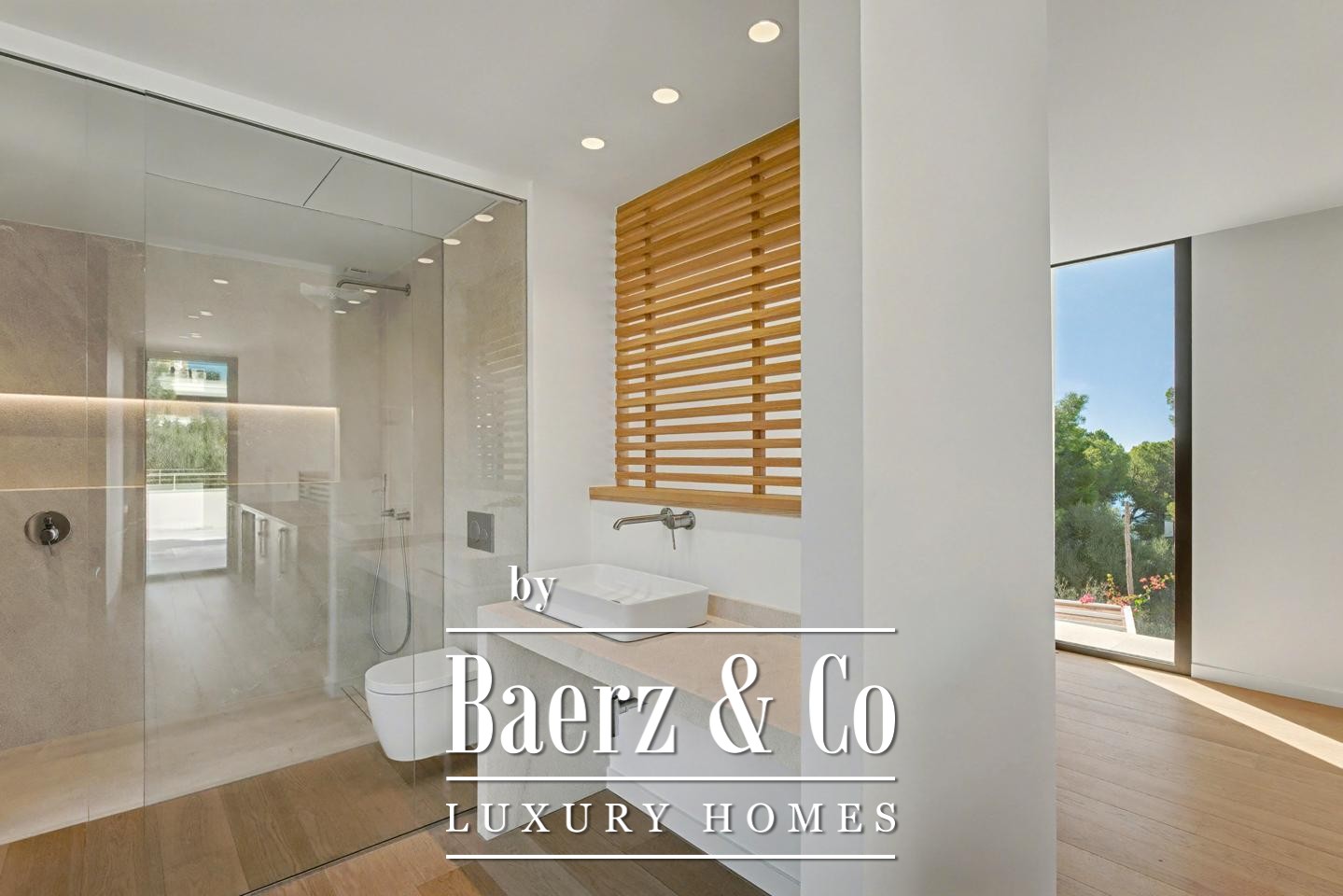 Door de gehele villa onderstrepen geïntegreerde verwarming, slimme verlichting en schuivende teakhouten luiken het streven naar comfort en verfijnd wonen. De villa beschikt tevens over een garage voor twee auto's, een technische ruimte en een berging op de benedenverdieping. Het dakterras vormt de kroon op het huis en biedt een exclusief uitkijkpunt voor zonsondergangen, het mediterrane panorama en de kalmerende zeebries — een ideaal toevluchtsoord voor wie een luxe villa zoekt in Sant Elm.