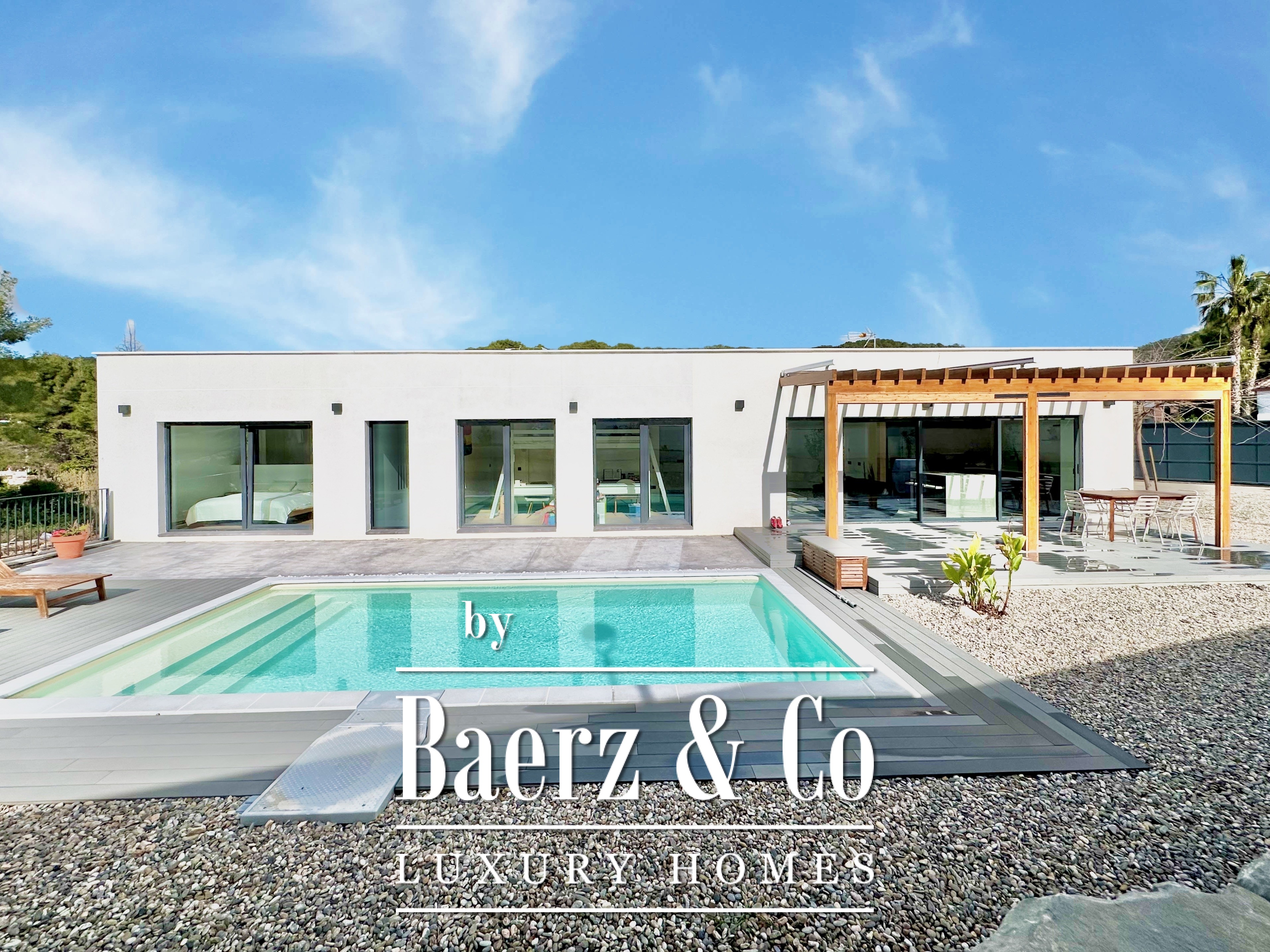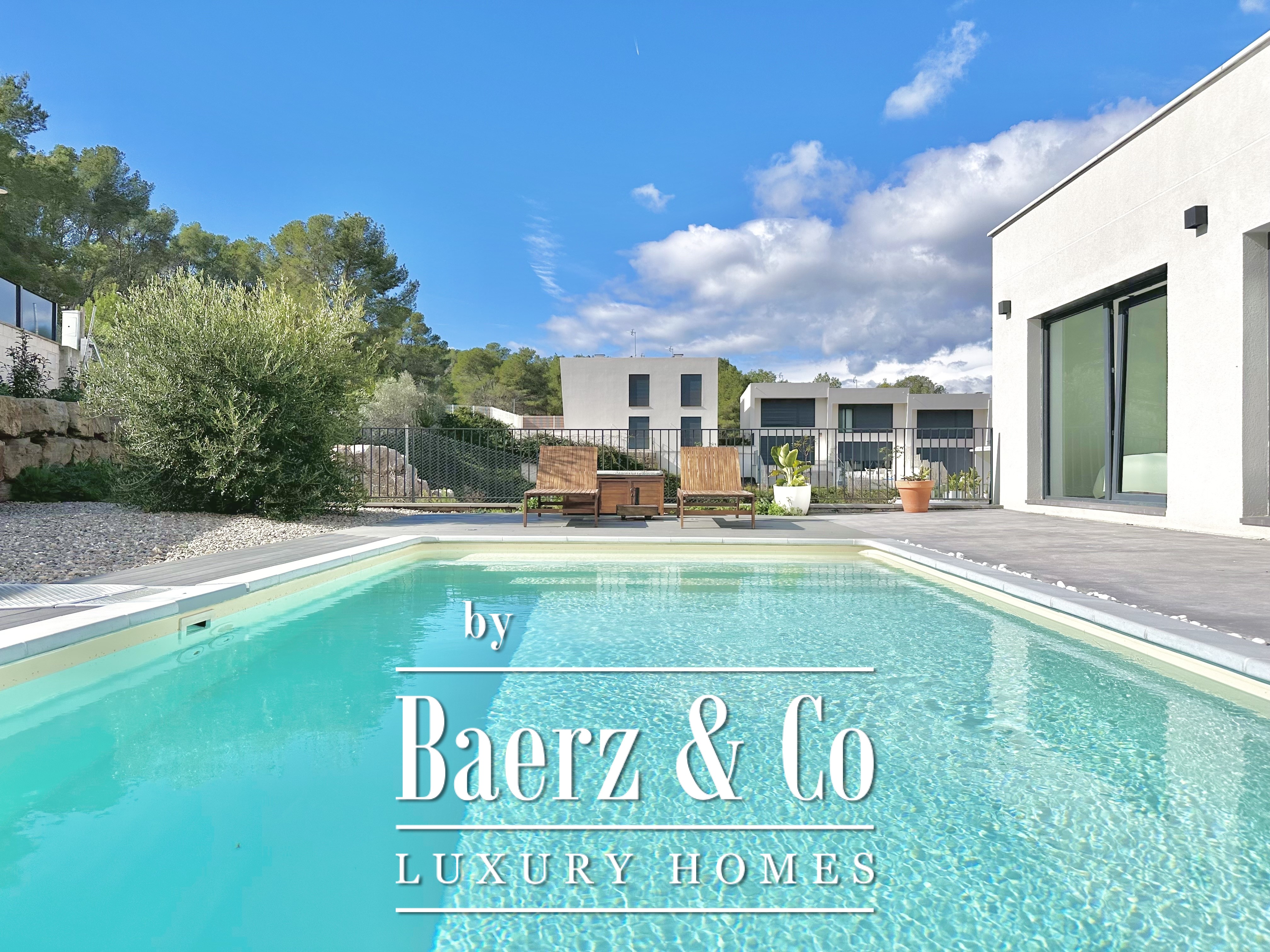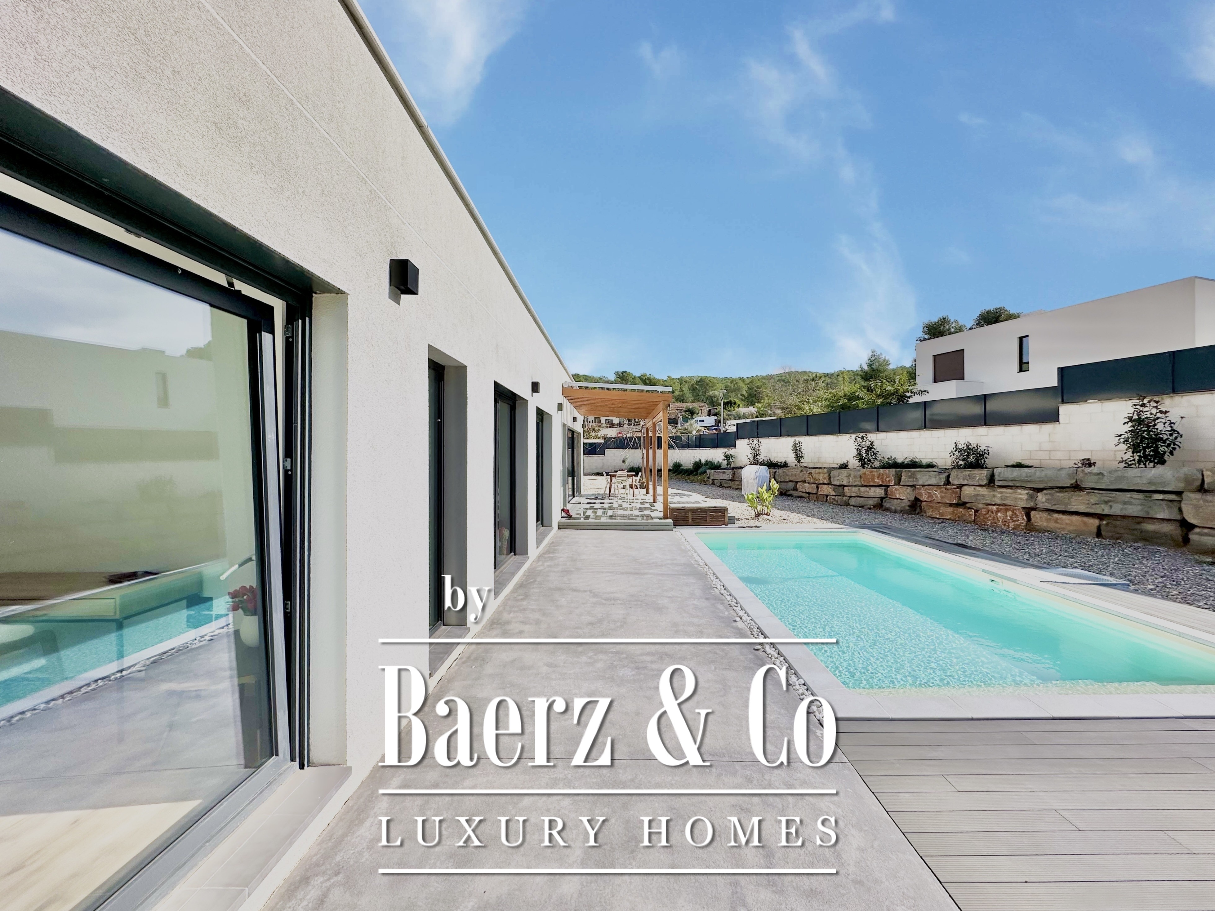 Deze moderne villa in Sitges is een recent gerealiseerde, energiezuinige woning waar duurzaamheid en eigentijdse minimalistische architectuur centraal staan. Gelegen in het rustige Mas Alba, beslaat het perceel 860 m² (dubbele kavel) met 296 m² woonoppervlakte, aangevuld door een privézwembad van 32 m² en uitzicht op de bergen.