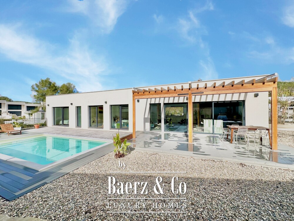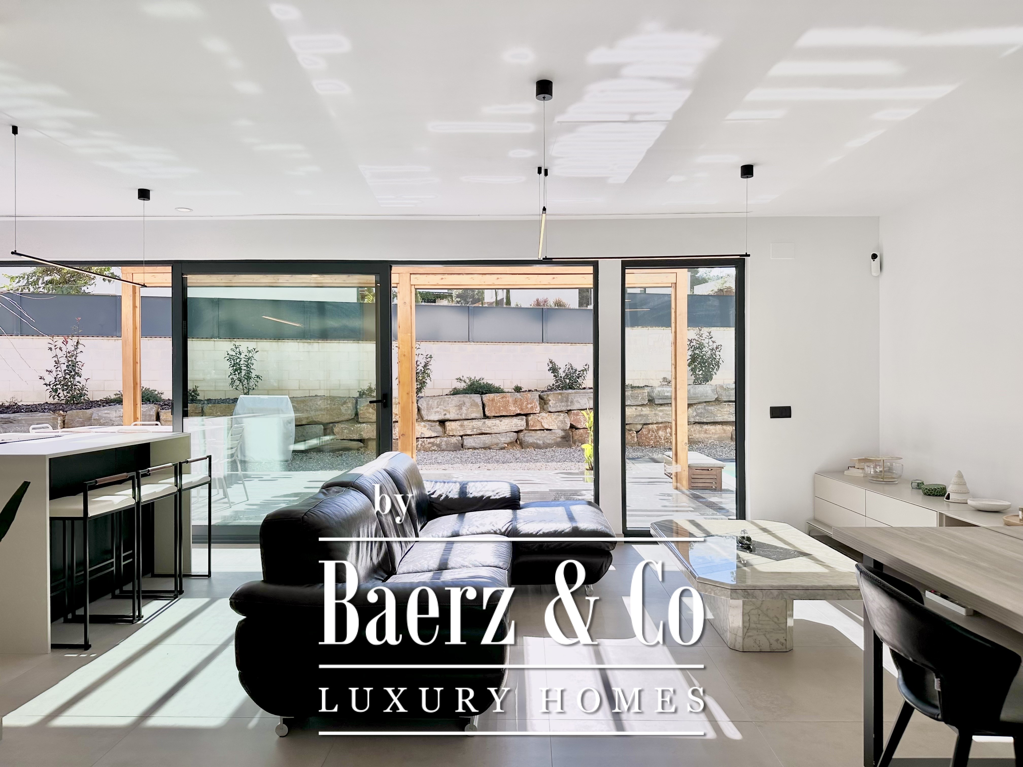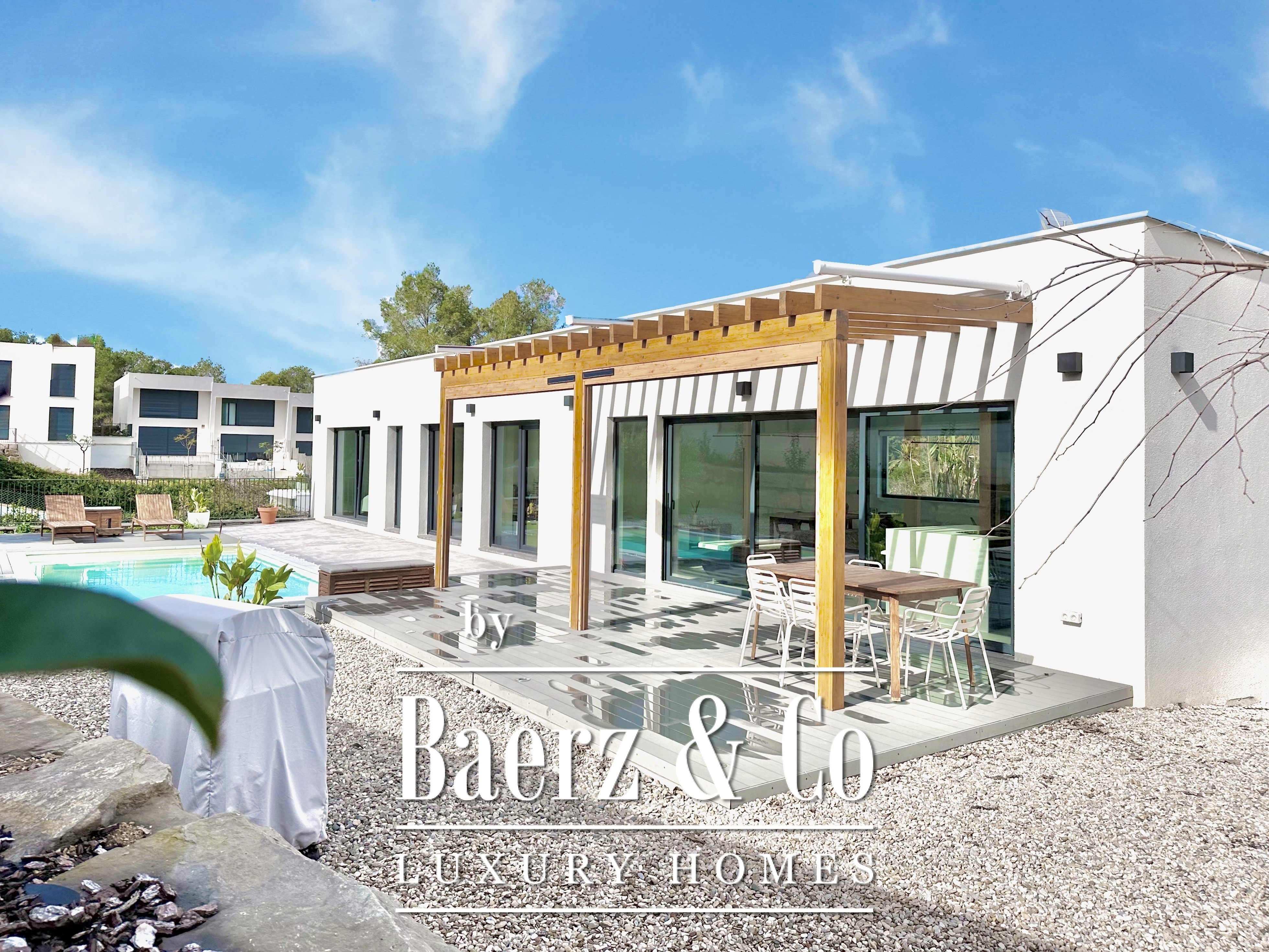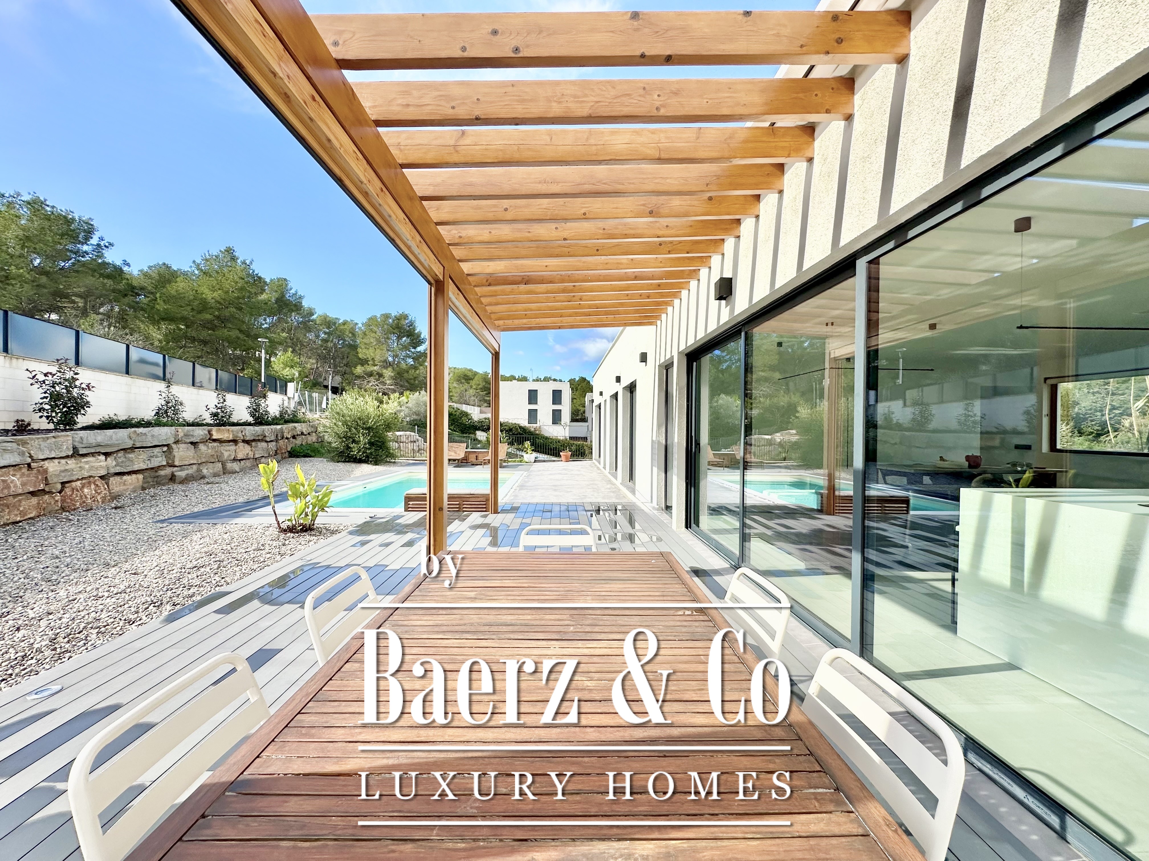 Deze moderne villa in Sitges is een recent gerealiseerde, energiezuinige woning waar duurzaamheid en eigentijdse minimalistische architectuur centraal staan. Gelegen in het rustige Mas Alba, beslaat het perceel 860 m² (dubbele kavel) met 296 m² woonoppervlakte, aangevuld door een privézwembad van 32 m² en uitzicht op de bergen.
