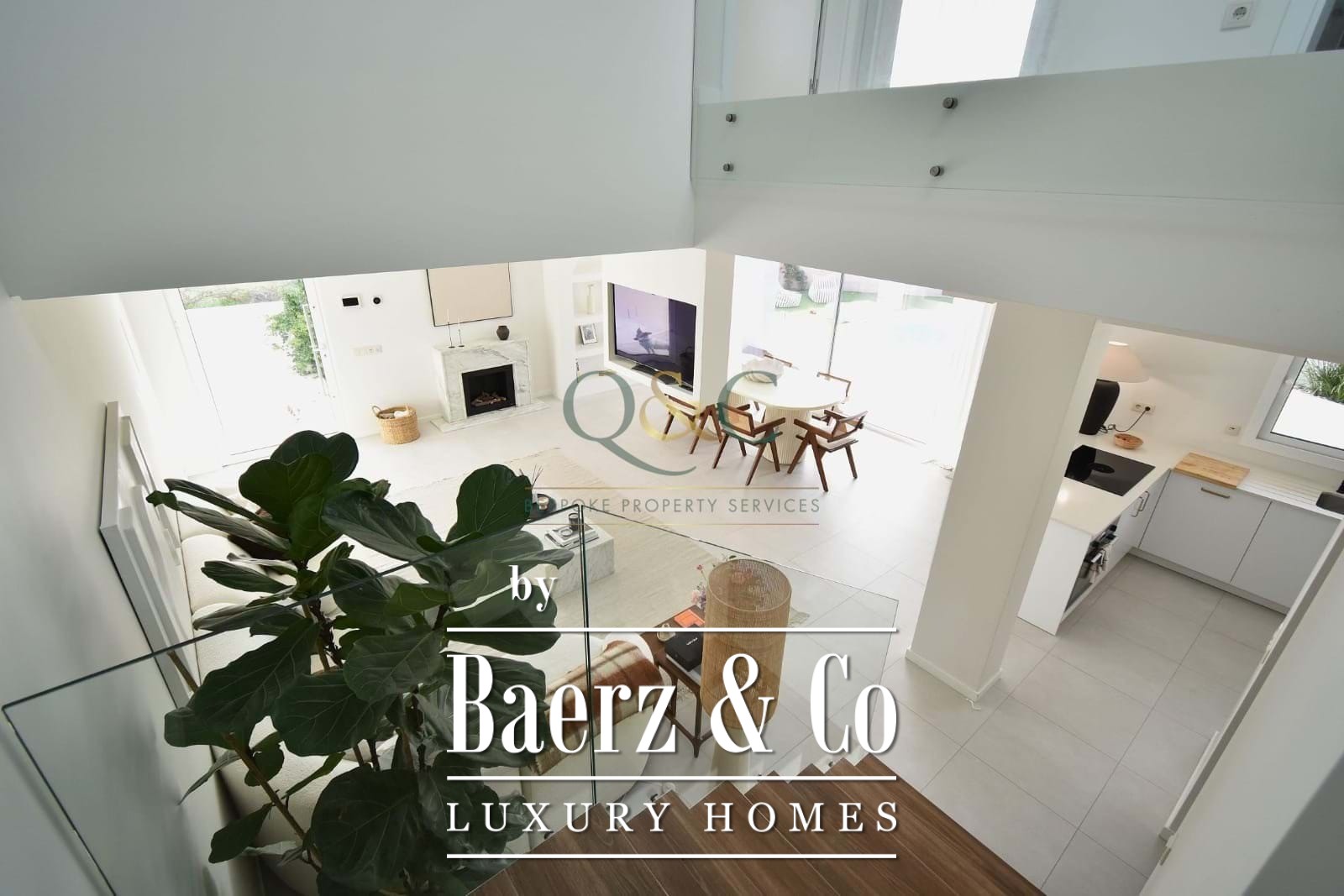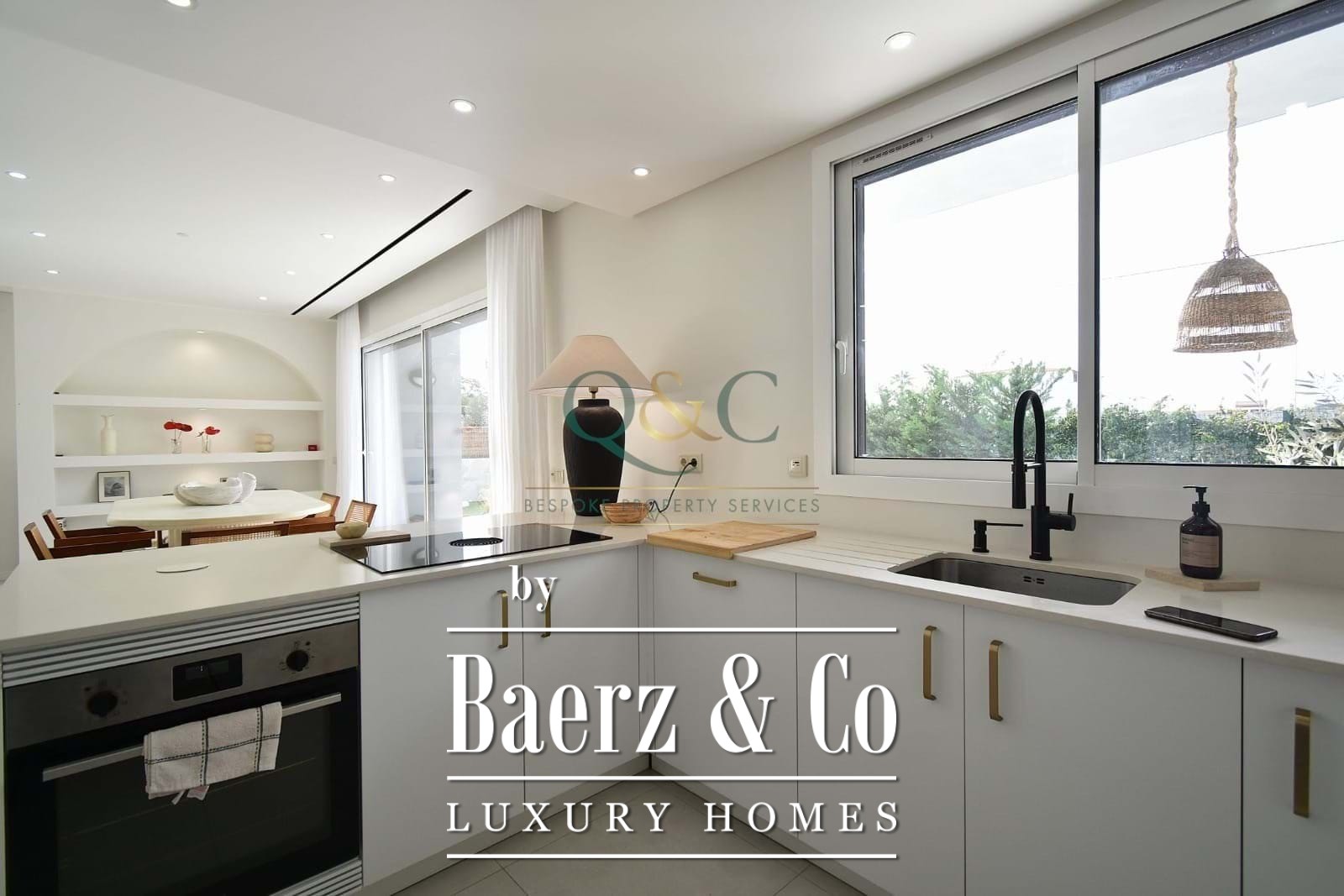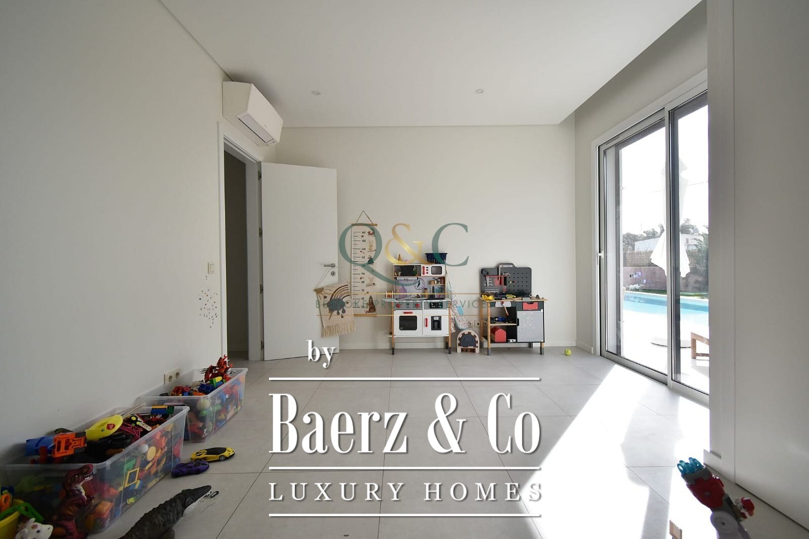 Op de begane grond zorgen de open woon- en eetkamer met marmeren ethanolhaard voor een subtiele balans tussen het binnenleven en zonlicht, ondersteund door centrale airconditioning. De open keuken, wasruimte en bijkeuken ondersteunen het dagelijks comfort, terwijl het terras uitnodigt tot ontspanning aan het chloorzwembad en de tuin, ontworpen voor stilte en rust. Vrijwel elke kamer is op het zuiden georiënteerd en baadt in overvloedig natuurlijk licht.
