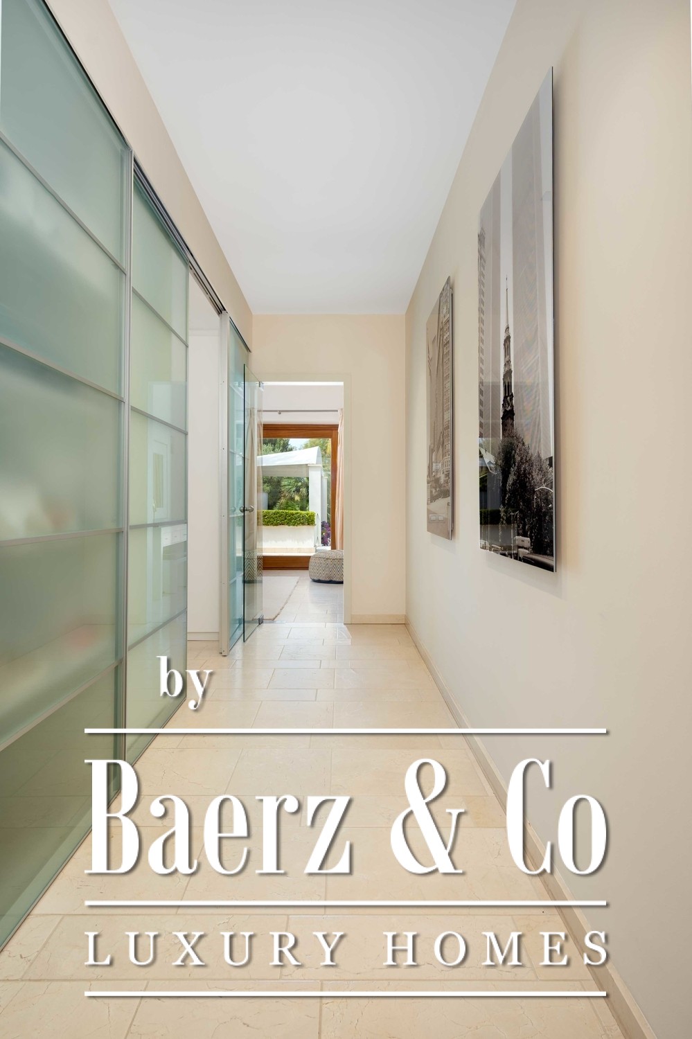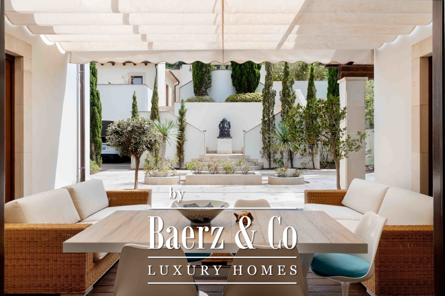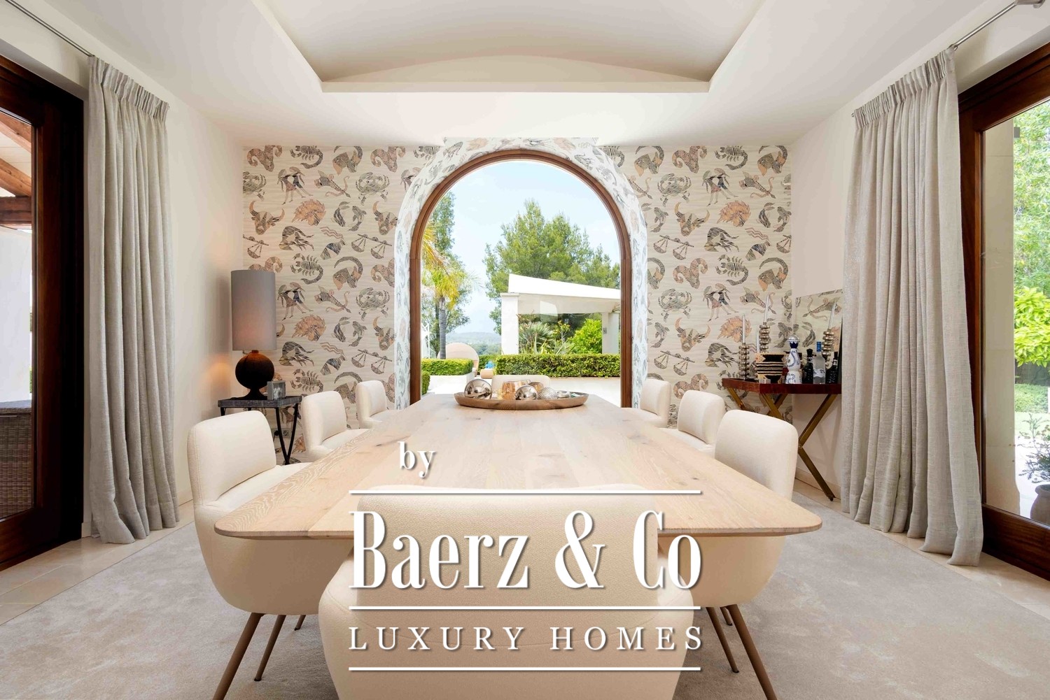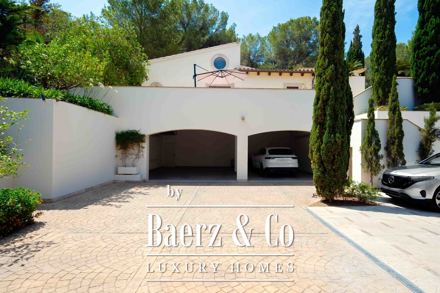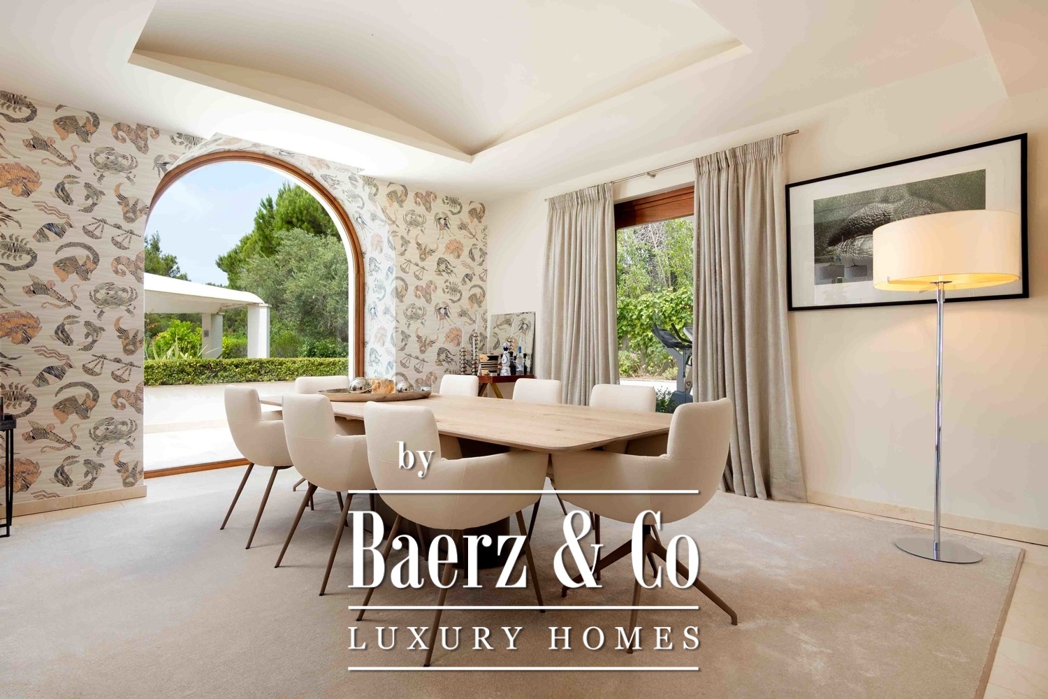 Deze luxe villa in Santa Ponça is een toonbeeld van verfijnd wonen binnen een exclusieve, beveiligde gemeenschap op Mallorca. Bij aankomst voert een eigen oprijlaan u door weelderige mediterrane tuinen, met ruimte voor zeven auto's en een geïntegreerd laadpunt voor elektrische voertuigen. De entree ademt serene rust en ingetogen grandeur, en verwelkomt u in een interieur van 851 m², zorgvuldig ingericht zodat licht en ruimte de sfeer bepalen.