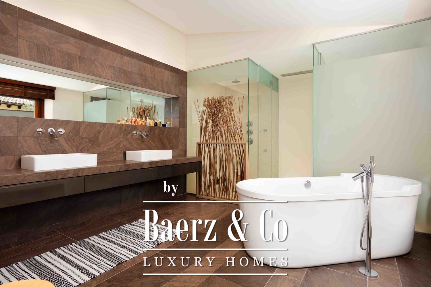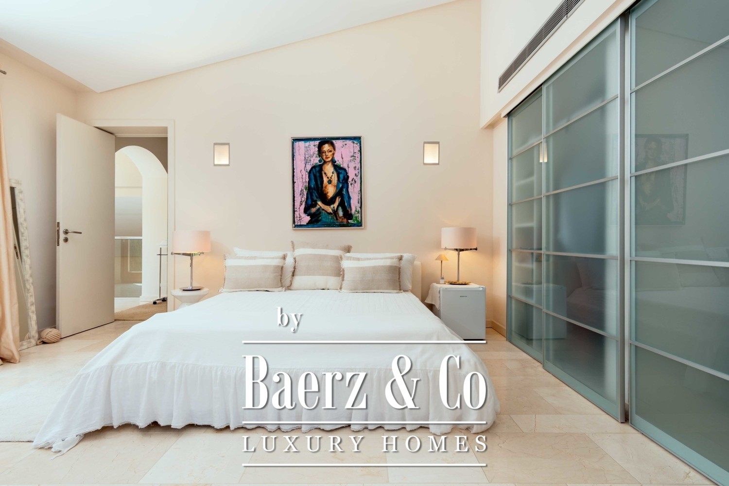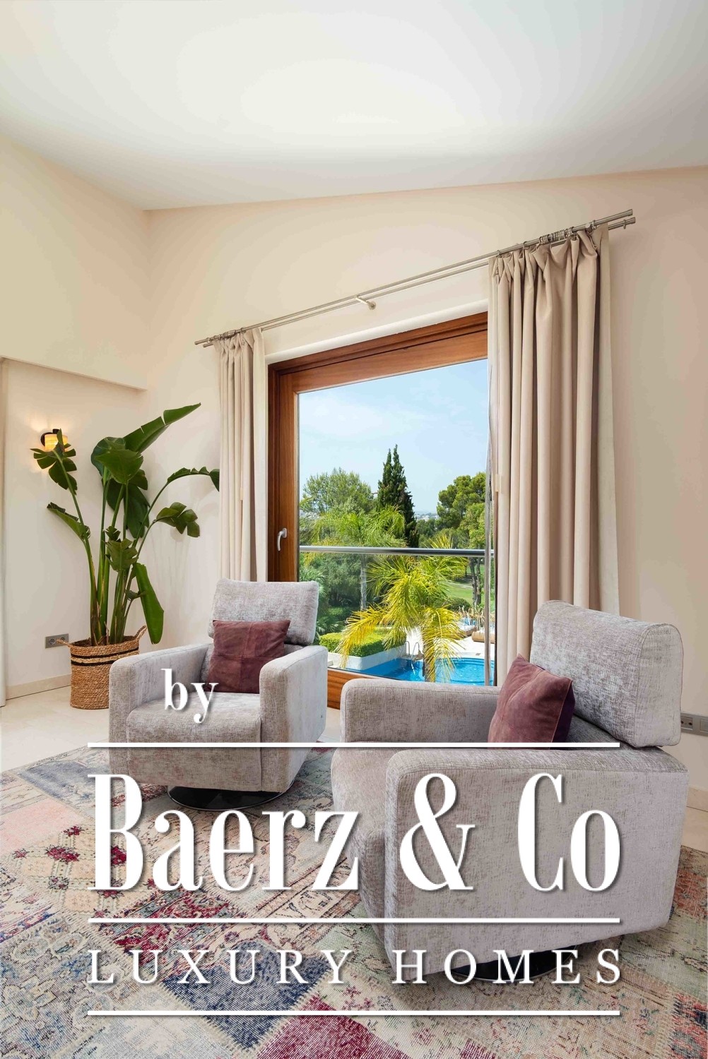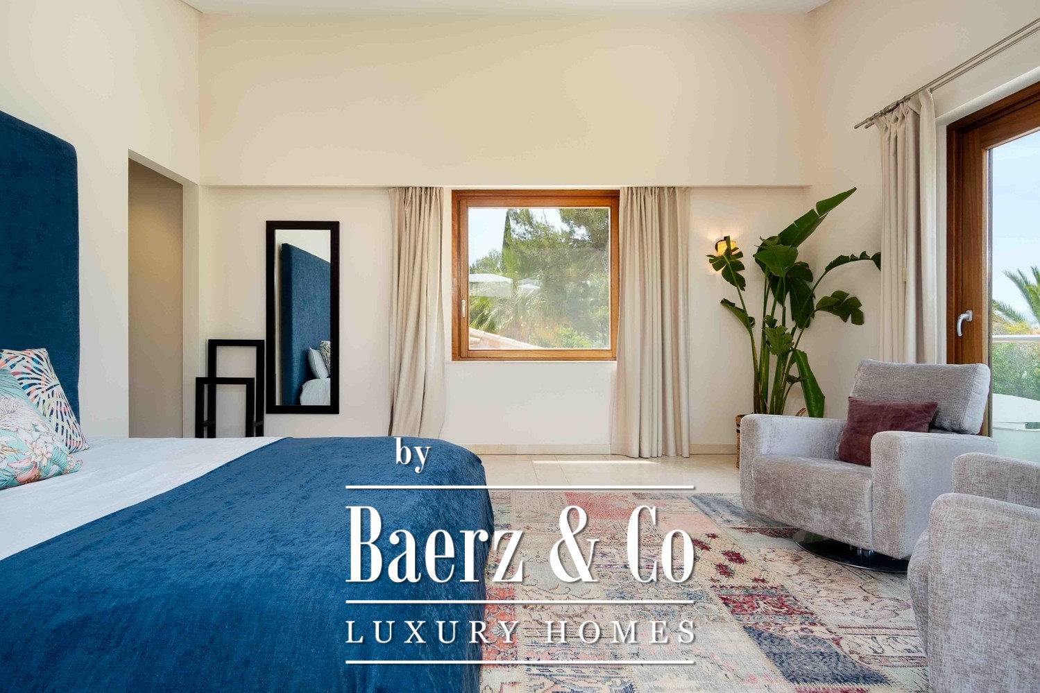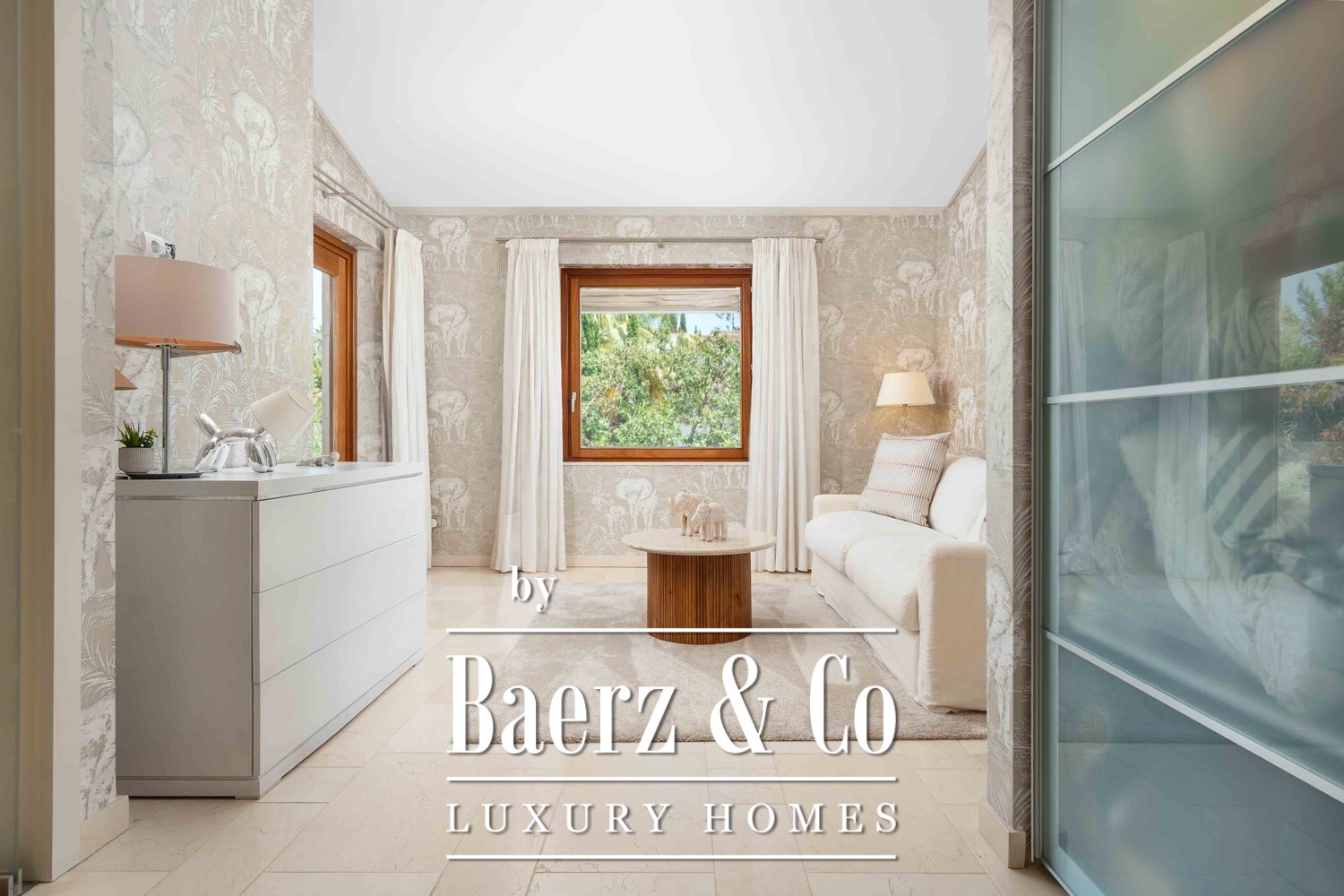 Deze luxe villa in Santa Ponça is een toonbeeld van verfijnd wonen binnen een exclusieve, beveiligde gemeenschap op Mallorca. Bij aankomst voert een eigen oprijlaan u door weelderige mediterrane tuinen, met ruimte voor zeven auto's en een geïntegreerd laadpunt voor elektrische voertuigen. De entree ademt serene rust en ingetogen grandeur, en verwelkomt u in een interieur van 851 m², zorgvuldig ingericht zodat licht en ruimte de sfeer bepalen.