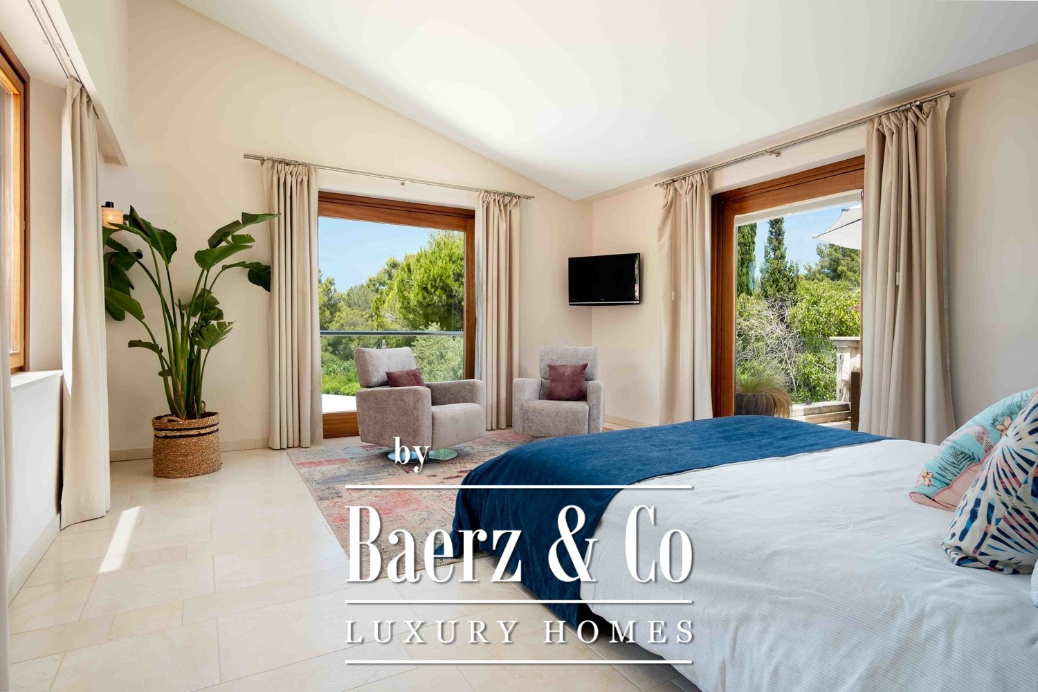 Een volledig onafhankelijk gastenverblijf met twee slaapkamers en twee badkamers biedt volledige privacy en comfort, perfect voor het ontvangen van vrienden of familie. Bouwplannen maken verdere maatwerkopties mogelijk, met ruimte voor een bioscoop, fitnessruimte, spa of exclusief wellnessverblijf. Acht badkamers en voorzieningen als airconditioning dragen bij aan optimaal wooncomfort. Deze luxe villa te koop in Santa Ponça staat voor privacy, kwaliteit en tijdloos design in elk detail.