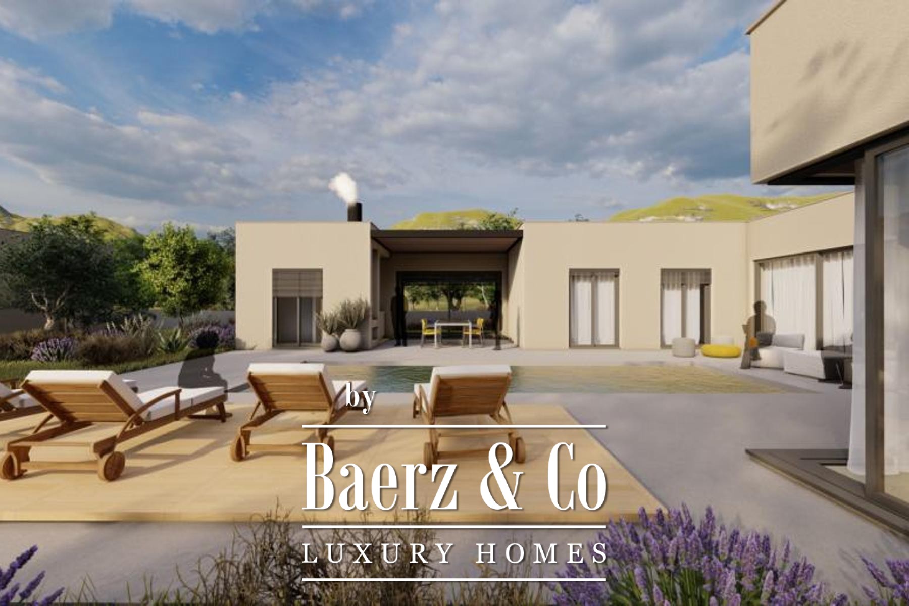 Šibenik, Dubrava, a beautiful villa in the Šibenik hinterland, available on a "turnkey" basis.On the spacious plot there is a possibility of building two identical villas, each of which would contain a large living room with kitchen, three bedrooms and two bathrooms. The property would be further enriched by a private sauna and shower area.The large garden provides additional