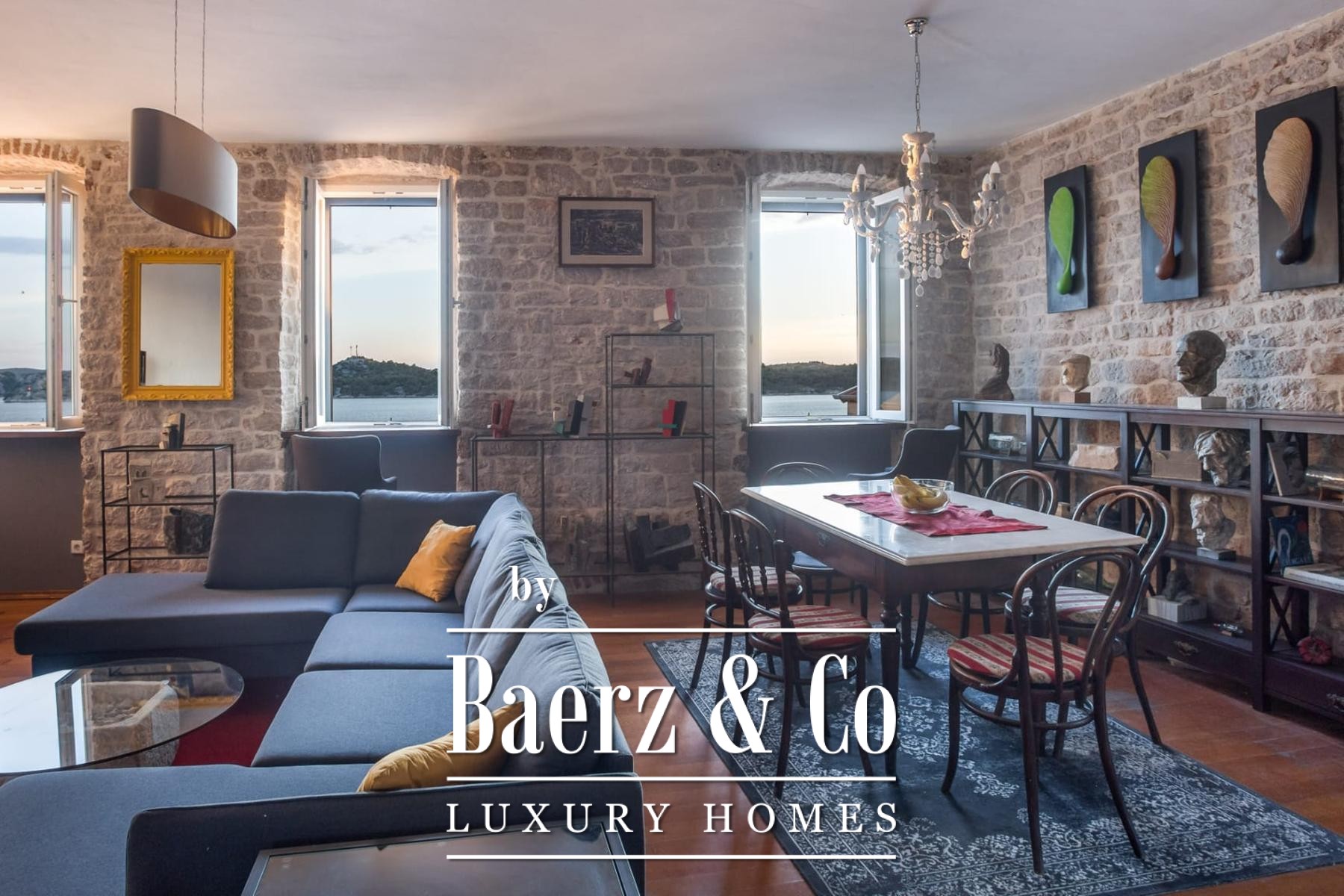 Šibenik, old town - a historic palace from the 12th century in one of the oldest streets, just a few steps from the sea and the Cathedral of St. James.With a total area of 202 m², it spreads over three floors and an attic. Completely renovated, it is a combination of historical architecture and a modern way of life.On the ground floor there is an authentic wine cellar. On the first floor there is a kitchen with a dining room and living room, a toilet and a pantry. The second floor consists of three bedrooms and a bathroom. The attic is arranged as a separate unit with its own kitchen, living room, bedroom and bathroom - ideal