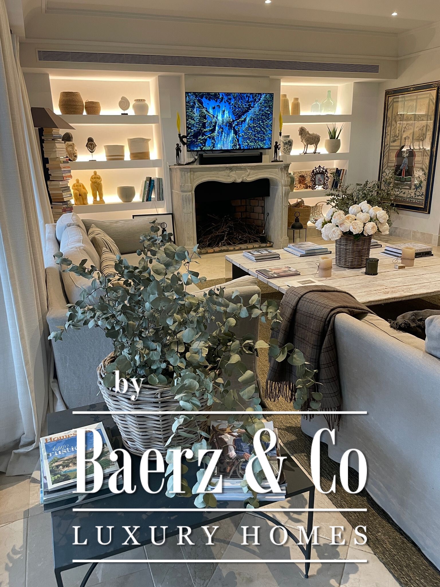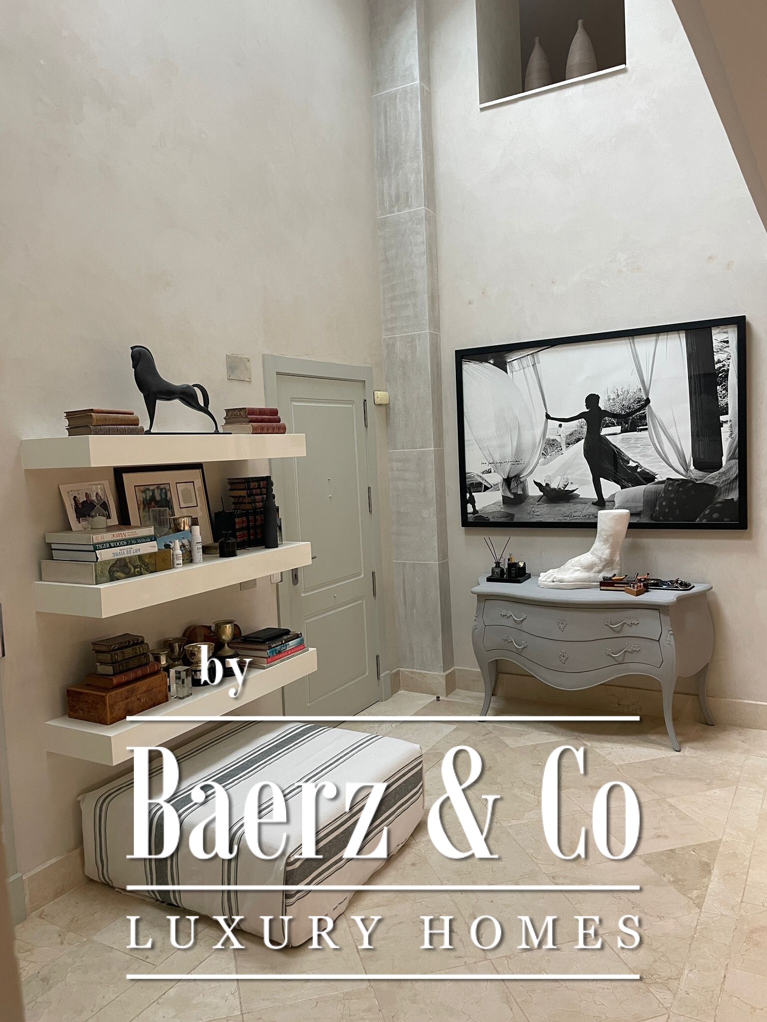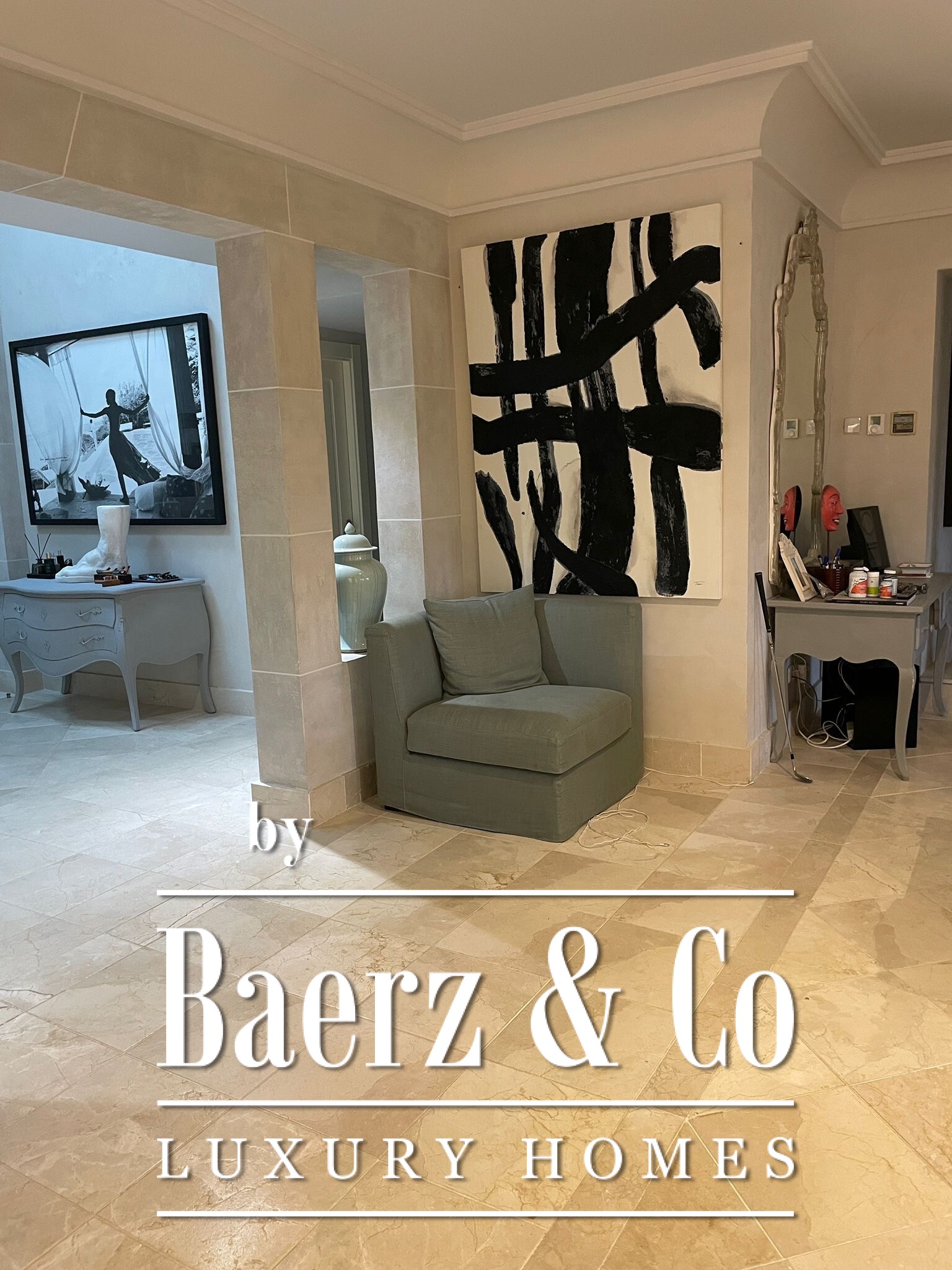 Binnen vindt u royale woon- en eetkamers, gekenmerkt door ingetogen elegantie en een vloeiende aansluiting op de terrassen buiten. Marmeren vloeren, volledige vloerverwarming en geïntegreerde airconditioning bieden het hele jaar door comfort; voorzieningen als een open haard en glasvezelinternet brengen traditie en moderniteit samen. De woning beschikt tevens over twee parkeerplaatsen onder het gebouw en een privéberging.