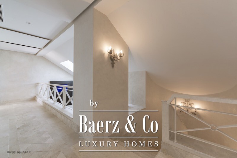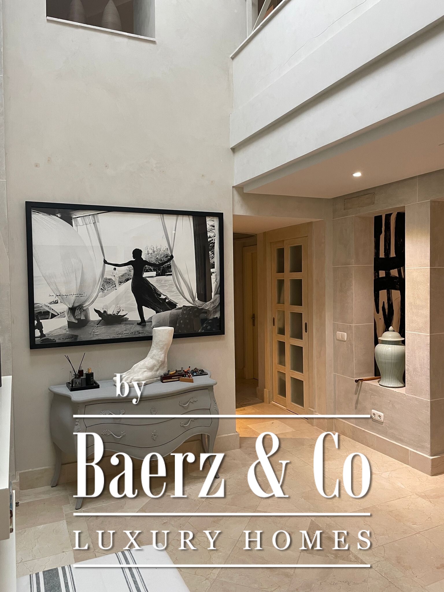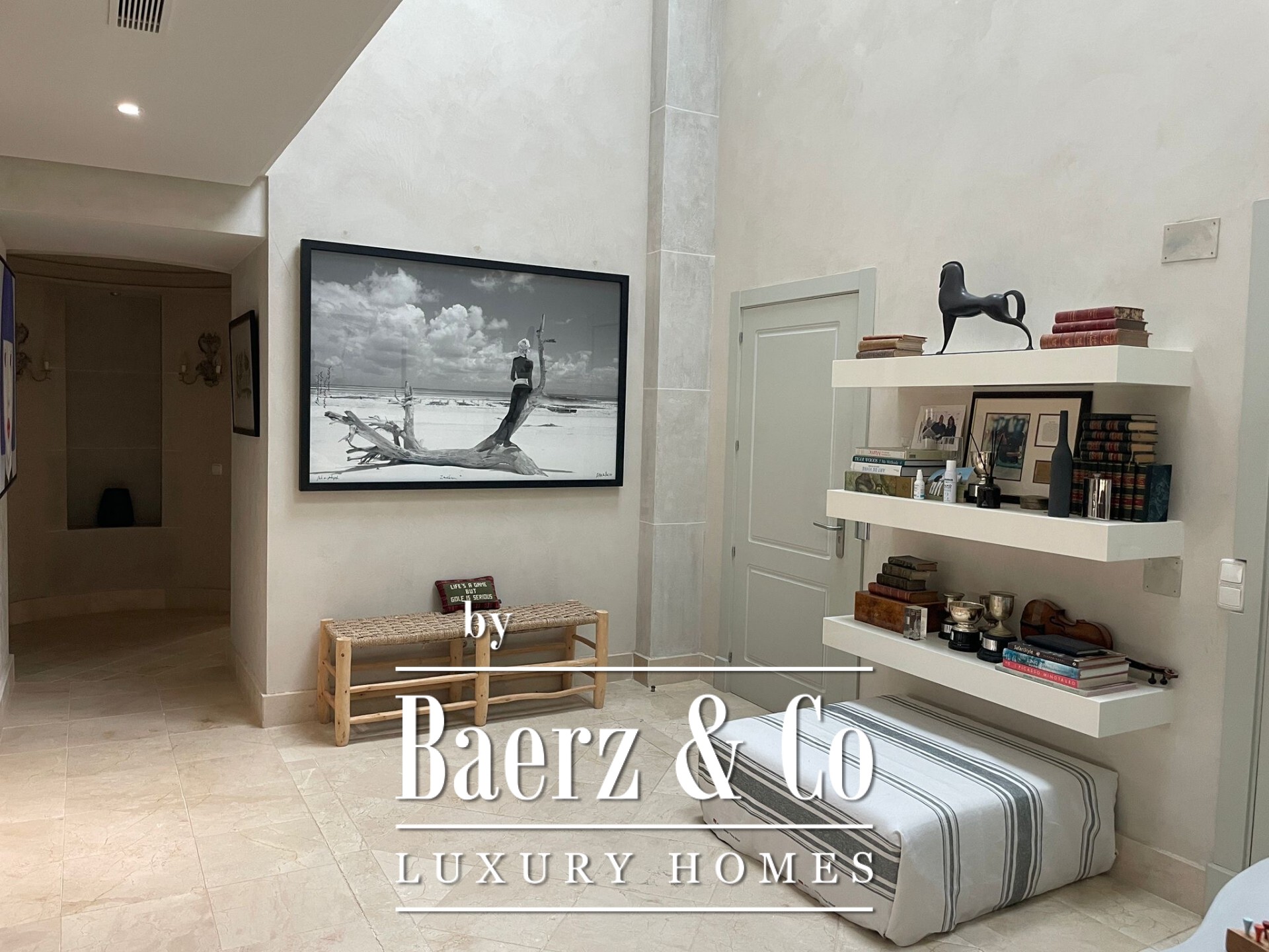 Binnen vindt u royale woon- en eetkamers, gekenmerkt door ingetogen elegantie en een vloeiende aansluiting op de terrassen buiten. Marmeren vloeren, volledige vloerverwarming en geïntegreerde airconditioning bieden het hele jaar door comfort; voorzieningen als een open haard en glasvezelinternet brengen traditie en moderniteit samen. De woning beschikt tevens over twee parkeerplaatsen onder het gebouw en een privéberging.