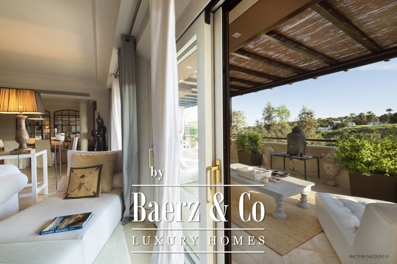 Dit penthouse in Sotogrande, gesitueerd binnen de vooraanstaande gemeenschap Valgrande, geniet van een ligging direct naast de Real Club Valderrama en biedt verfijnde privacy in een gerenommeerde enclave. De woning beslaat 533 m² en is ontworpen met vier riante slaapkamers met eigen badkamer, zodat zowel familieleden als gasten van optimaal comfort genieten. Zuidgerichte terrassen van 193 m² halen het natuurlijke licht naar binnen en omlijsten het uitzicht op een rustige kloof en fraai aangelegde tuinen, waarbij de buitenruimten zich uitstekend lenen voor lange diners en ontspannen bijeenkomsten.