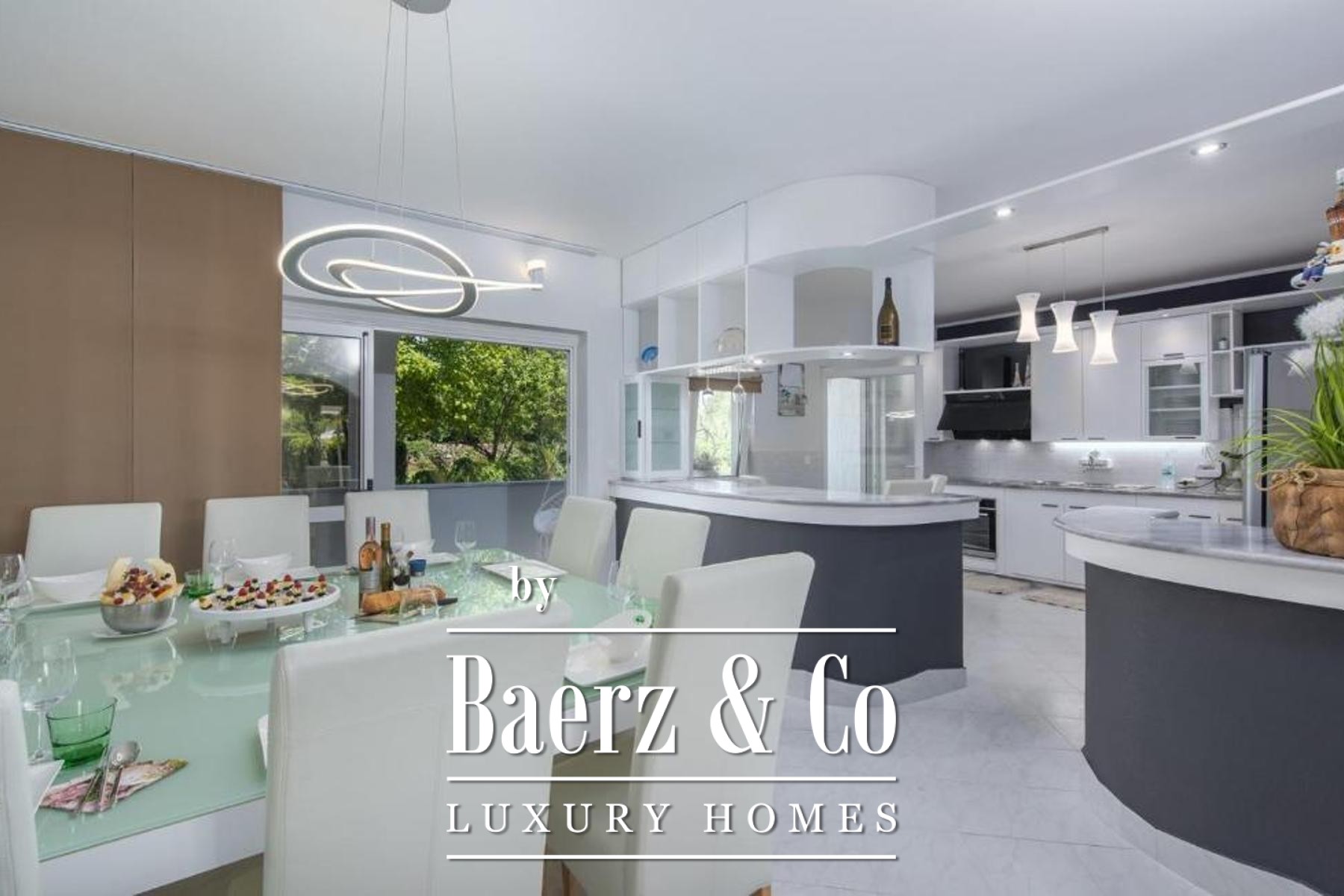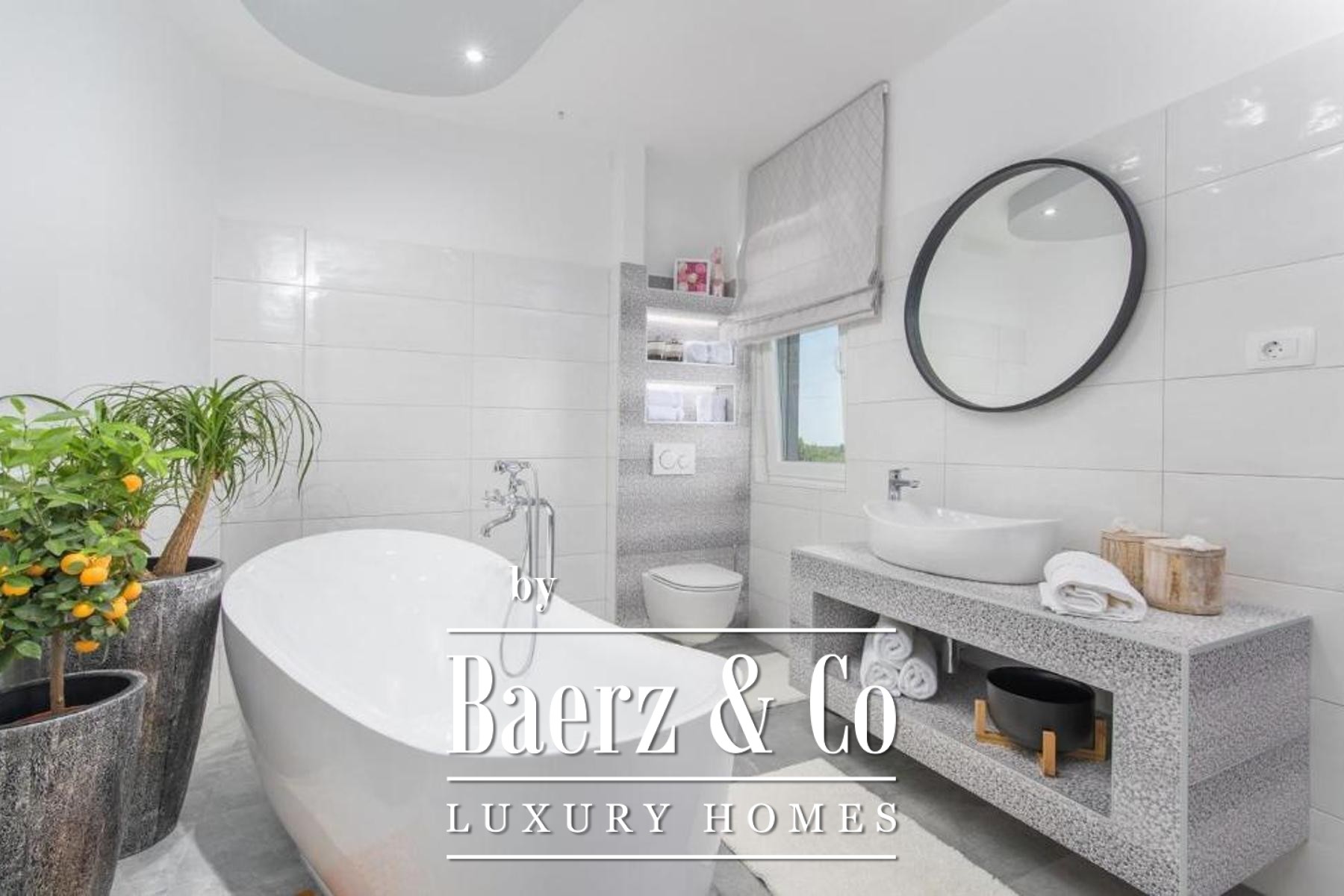 De begane grond verbindt royaal het interieur met het buitenleven en biedt een zwembad van 30 m², jacuzzi, twee overdekte terrassen en een woonkamer die naadloos overgaat in de tuin. De keuken en eetkamer hebben een eigen terras en nodigen uit tot samenzijn in zon of schaduw. In het souterrain bevinden zich een fitnessruimte en sauna voor ontspanning en welzijn. Op de eerste verdieping bieden drie slaapkamers en drie badkamers toegang tot het terras met rustgevend uitzicht op de omliggende natuur en de verre zee. De zolder beschikt over twee extra slaapkamers en twee badkamers, waardoor privacy voor gasten of familieleden is gegarandeerd. Een mezzanine heeft een slaapkamer met eigen badkamer voor extra comfort.
