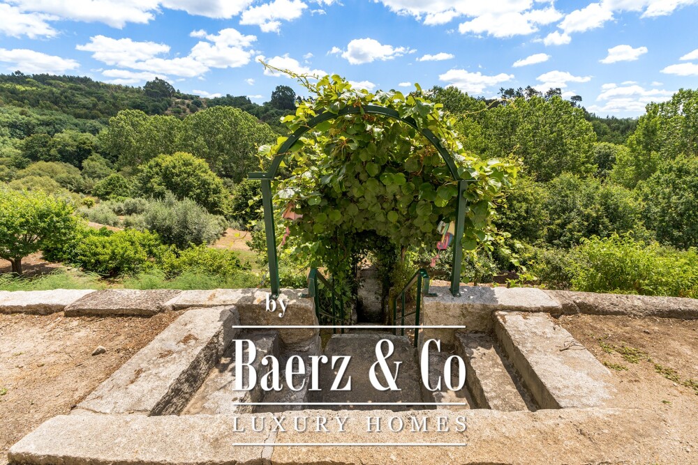 De wijngaarden beslaan 6.000 m² en omvatten vier klassieke Dão-druivensoorten, alle geënt op Amerikaanse onderstammen voor extra veerkracht. Te midden van olijfbomen en zorgvuldig aangelegde moestuinen ontvouwt zich een ritme van langzaam leven met zicht tot aan de watervallen van de Asnes-rivier.