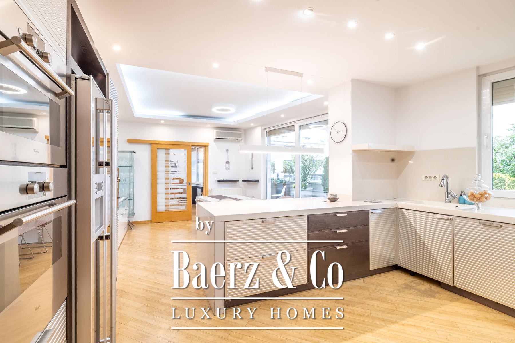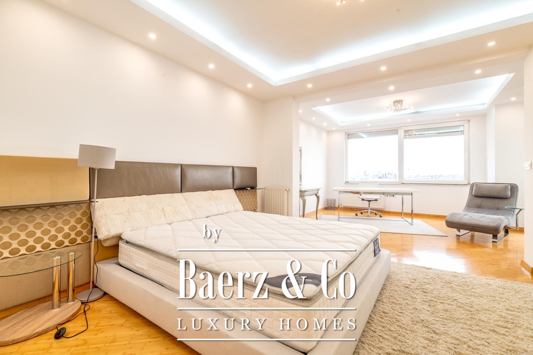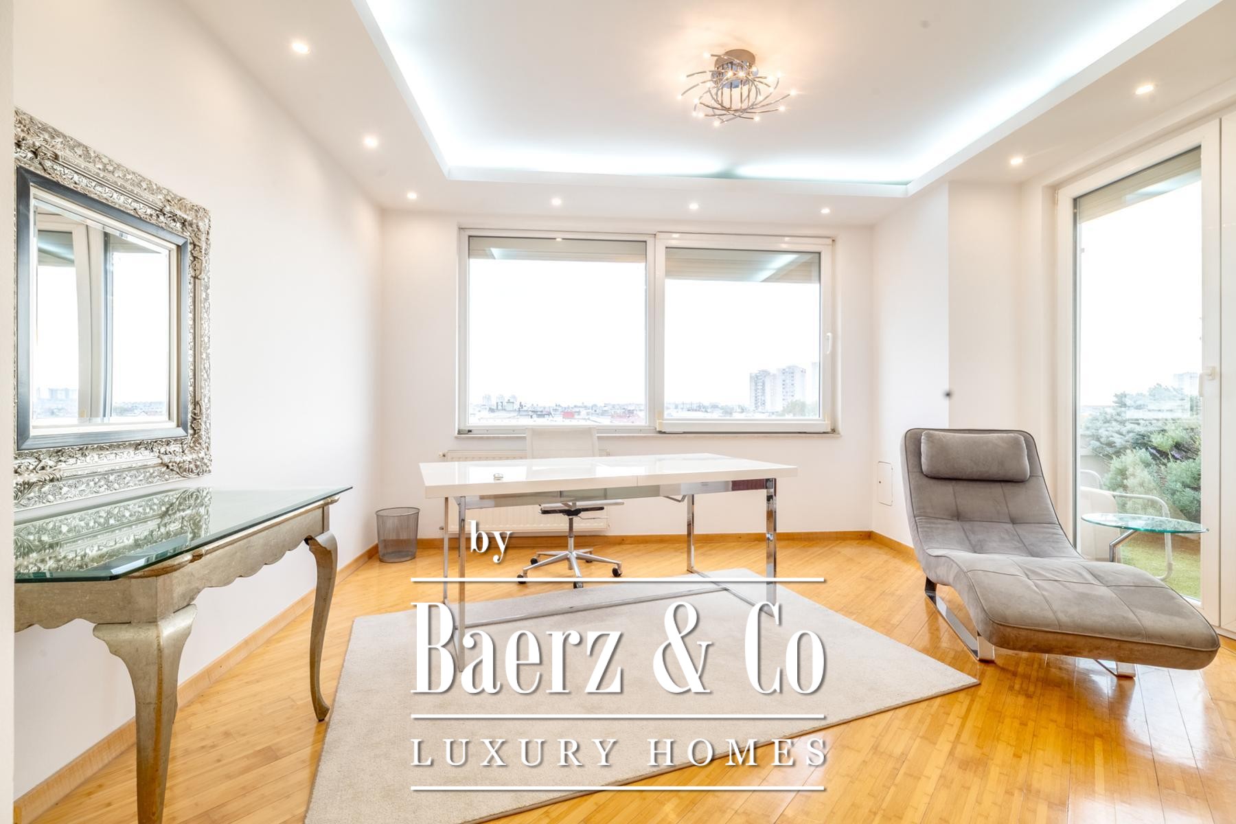 Penthouse Trešnjevka - Sjever is een zeldzaam aanbod in een van de meest gewilde woonwijken van Zagreb. Dit penthouse van 356 m² beslaat de volledige zesde verdieping van een modern gebouw uit 2006. Met een lift die direct toegang biedt tot de woning en een privégarage van 40 m² voor twee auto's is aan comfort geen gebrek.
