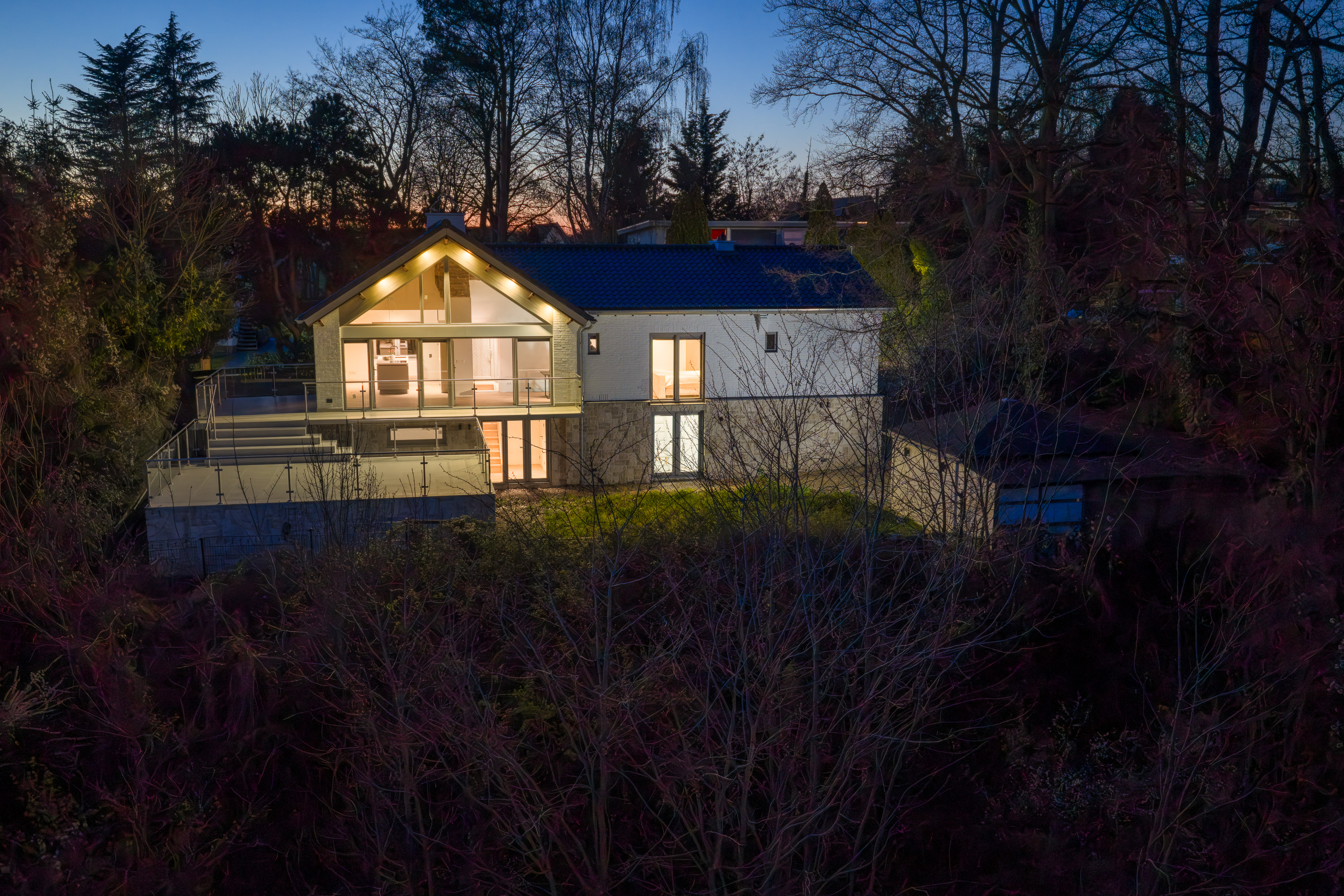 Het leefgedeelte bevindt zich aan de achterzijde en is volledig gericht op het panoramische uitzicht. Dankzij de grote raampartijen stroomt het daglicht rijkelijk naar binnen en lopen binnen en buiten moeiteloos in elkaar over. Met een XL garage, een praktische indeling en alle belangrijke woonvoorzieningen op de begane grond, combineert deze woning luxe met levensloopbestendig wonen. De woning beschikt over een ruim multifunctioneel souterrain en een praktische vliering.