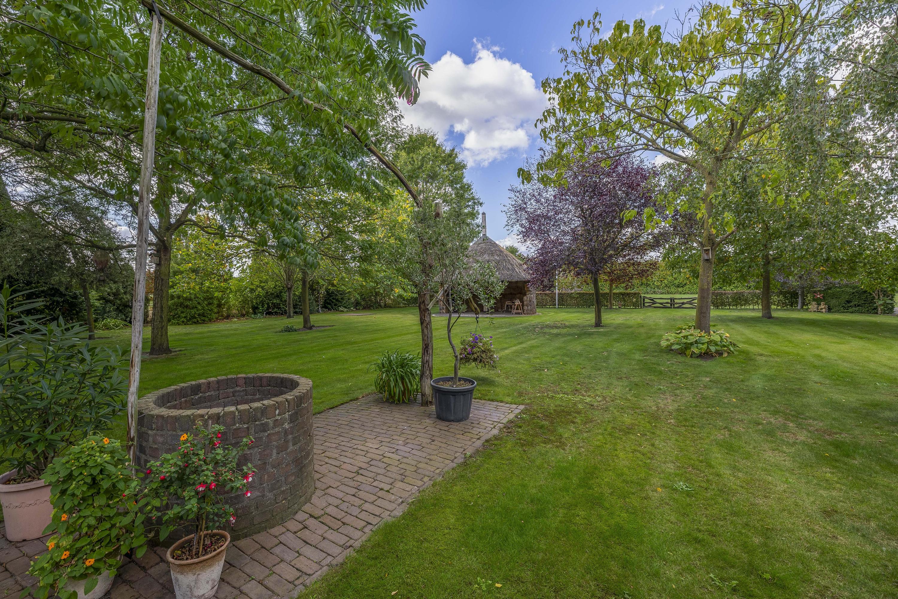 badkamer-en-suite. Daarnaast is er een praktische bijkeuken en een inpandige garage aanwezig. Buiten wacht een royale, verzorgde tuin op u: met o.a. een groot gazon, volwassen bomen die karakter toevoegen, natuurlijke hagen, een terras aan de achtergevel en een overdekt terras. De vrijstaande schuur en de naastgelegen tuinbouwkas bieden volop mogelijkheden voor het vestigen van een (agrarisch) bedrijf. Daarnaast kan ook het aangrenzende perceel cultuurgrond bedrjifsmatig worden ingezet, maar dit is uiteraard ook uitermate geschikt voor het hobbymatig houden van paarden.