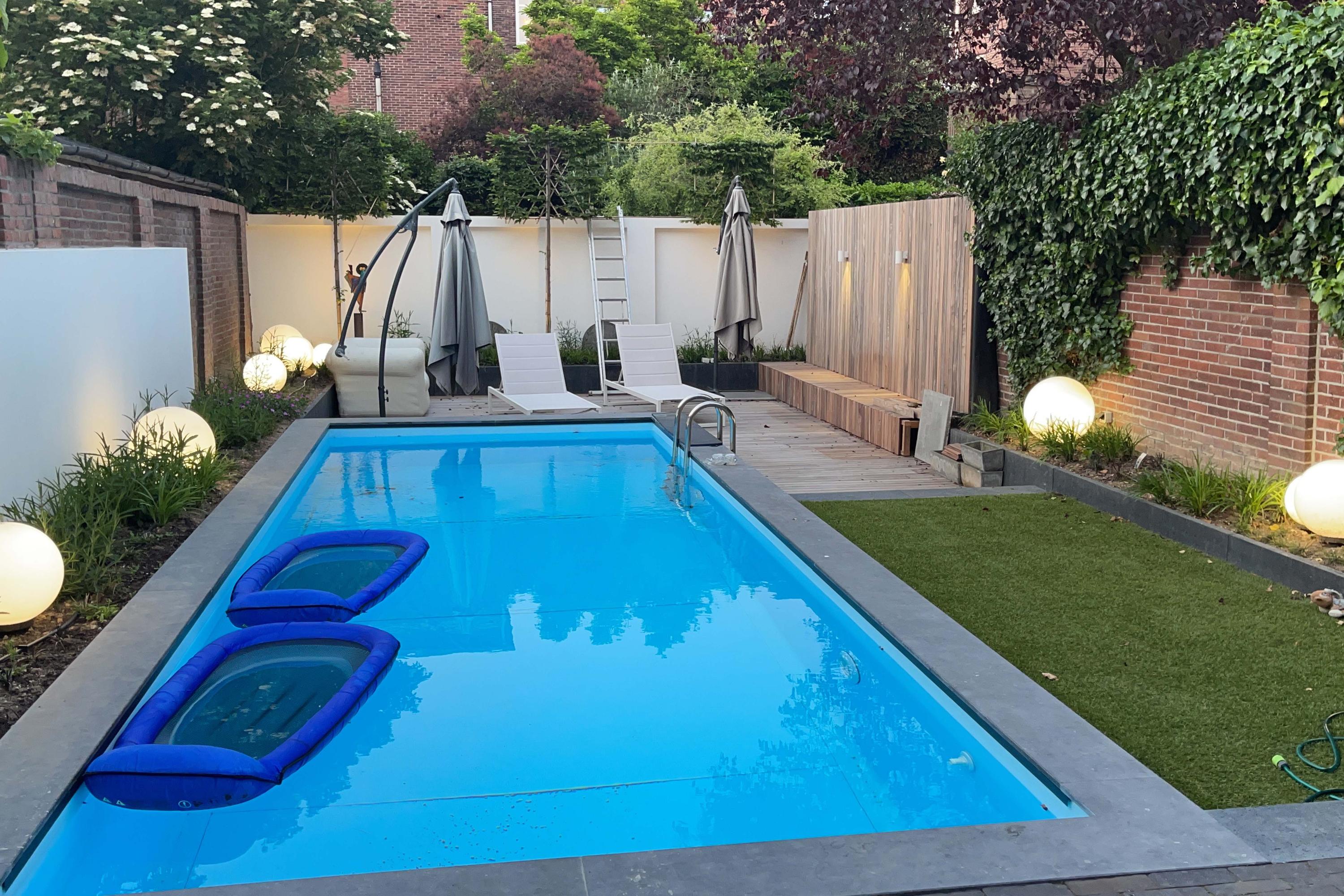 De onder architectuur aangelegde achtertuin is heerlijk diep en biedt door verschillende niveaus extra privacy. De tuin is o.a. voorzien van een bestraat terras, kunstgras en padouk houten vlonders. De tuin is volledig ommuurd. Je geniet hier van veel rust ondanks dat je je op steenworp afstand van het centrum van Venlo bevindt. Het is een grote tuin met zwembad (met warmtepomp), elektra en buitenverlichting.