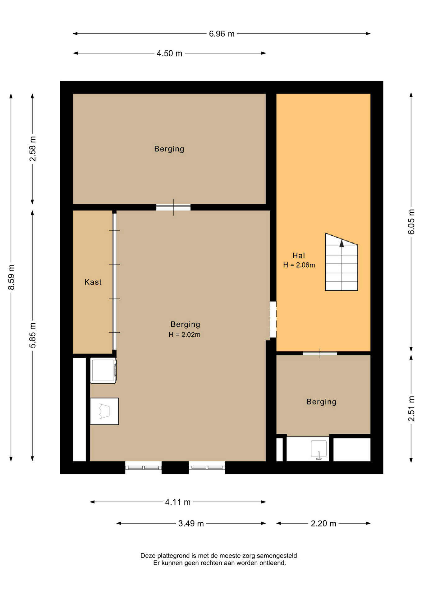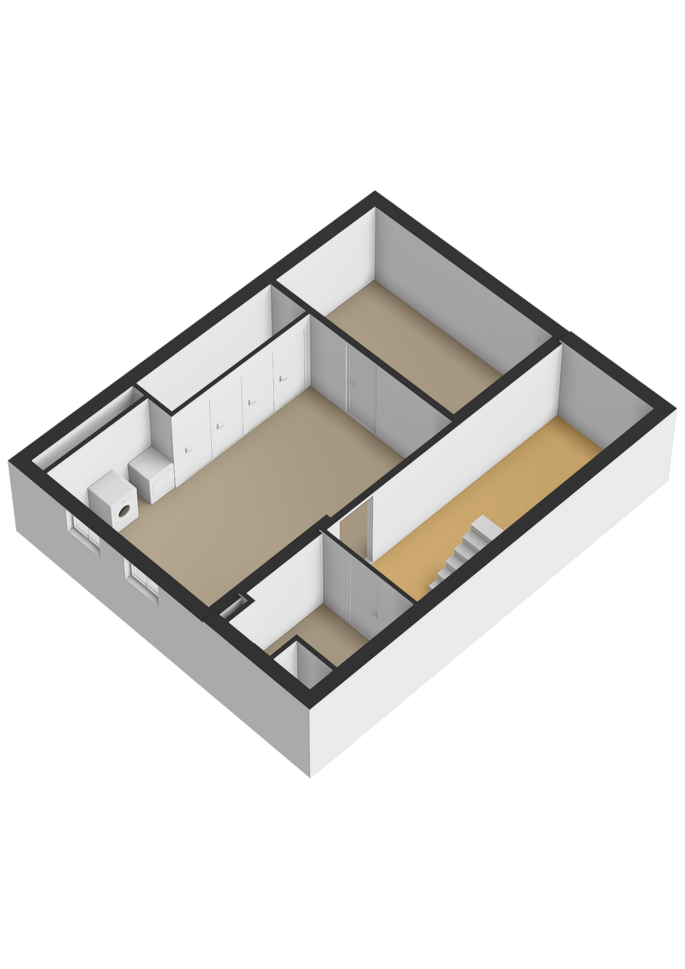Het souterrain bestaat uit meerdere ruimtes. Hier zijn de meterkast, omvormer van de zonnepanelen, witgoedaansluiting, waterontharder en diverse vaste kasten aanwezig.
